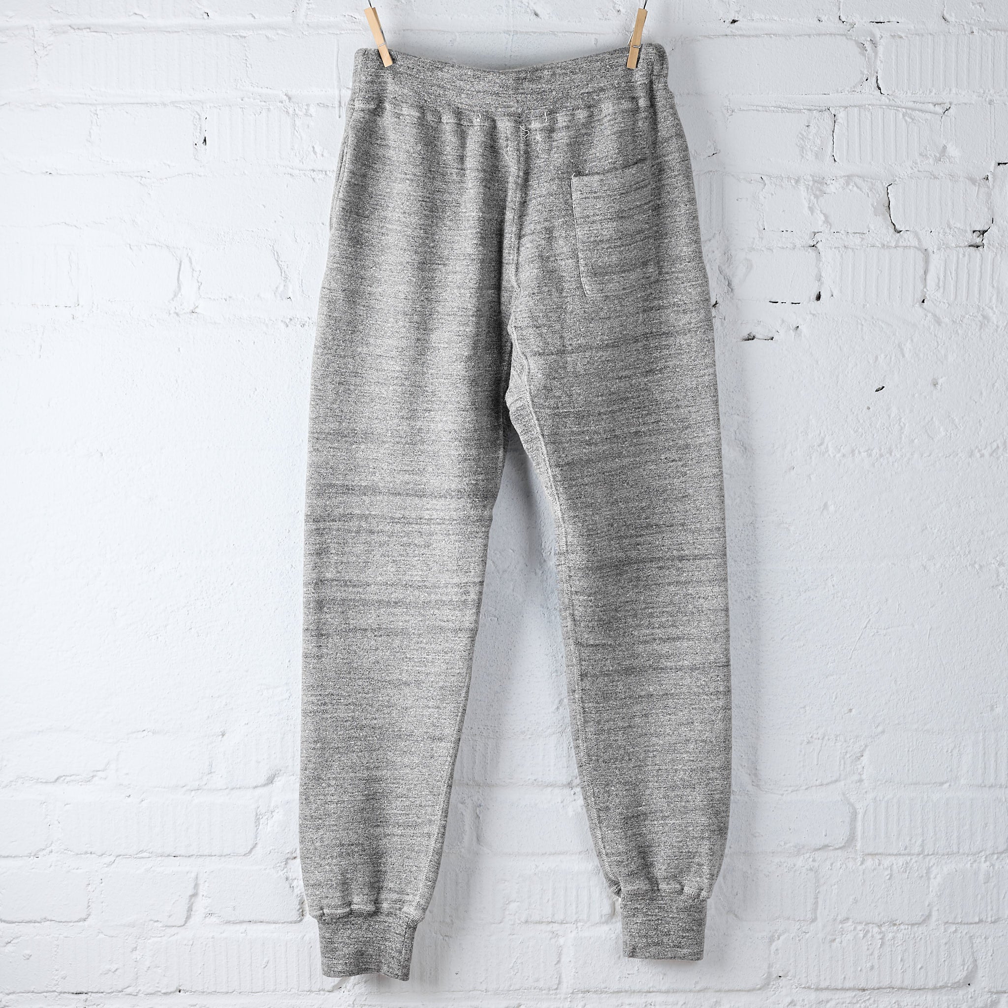 die easy sweatpants von allevol basieren auf den klassischen trainingshosen der 1950er jahre und sind in japan aus dem gleichen loopwheel-stoff gefertigt wie das easy sweatshirt. die hose hat einen elastischen bund mit kordelzug, zwei eingrifftaschen, eine einzelne gesäßtasche sowie einen beinabschluss mit rippbündchen.