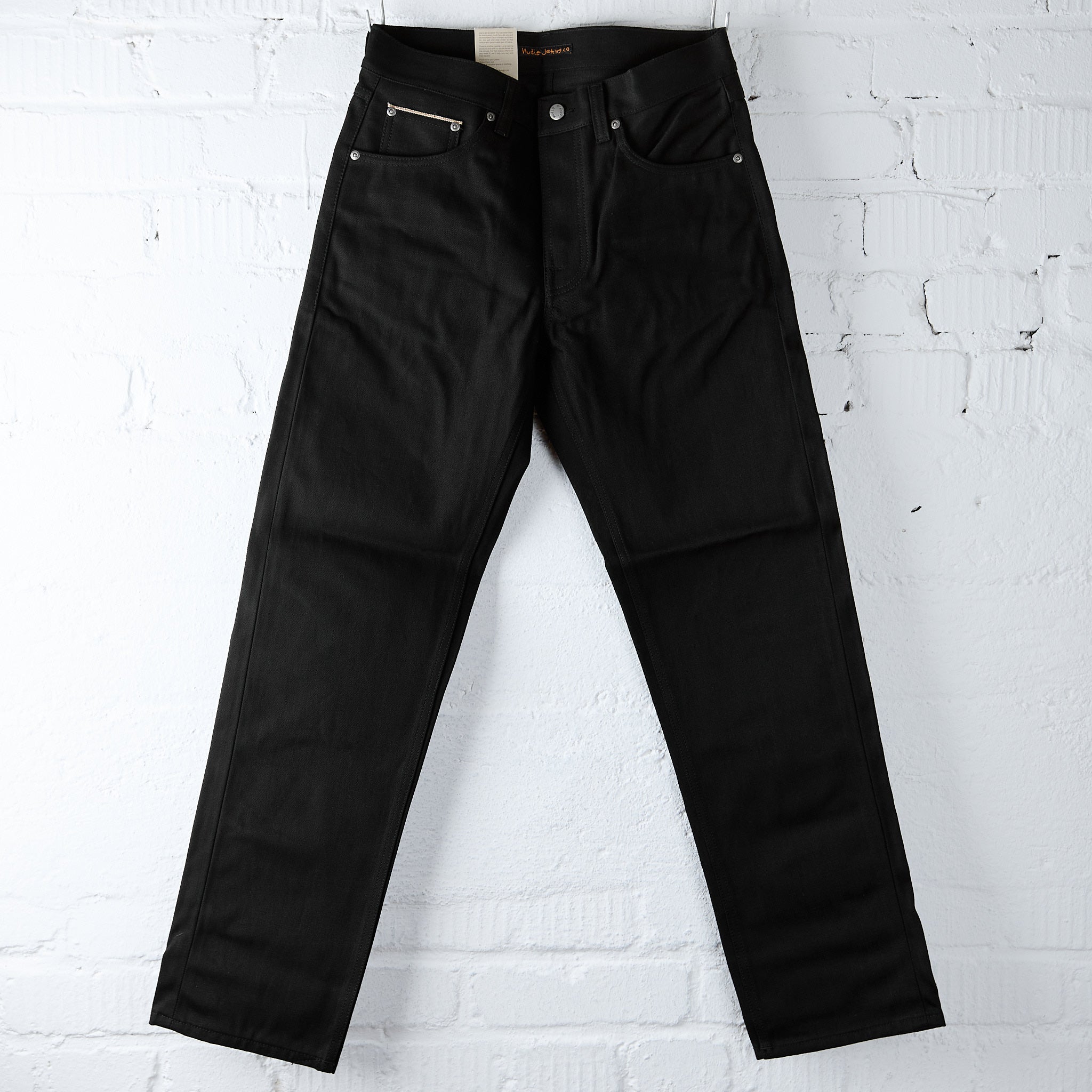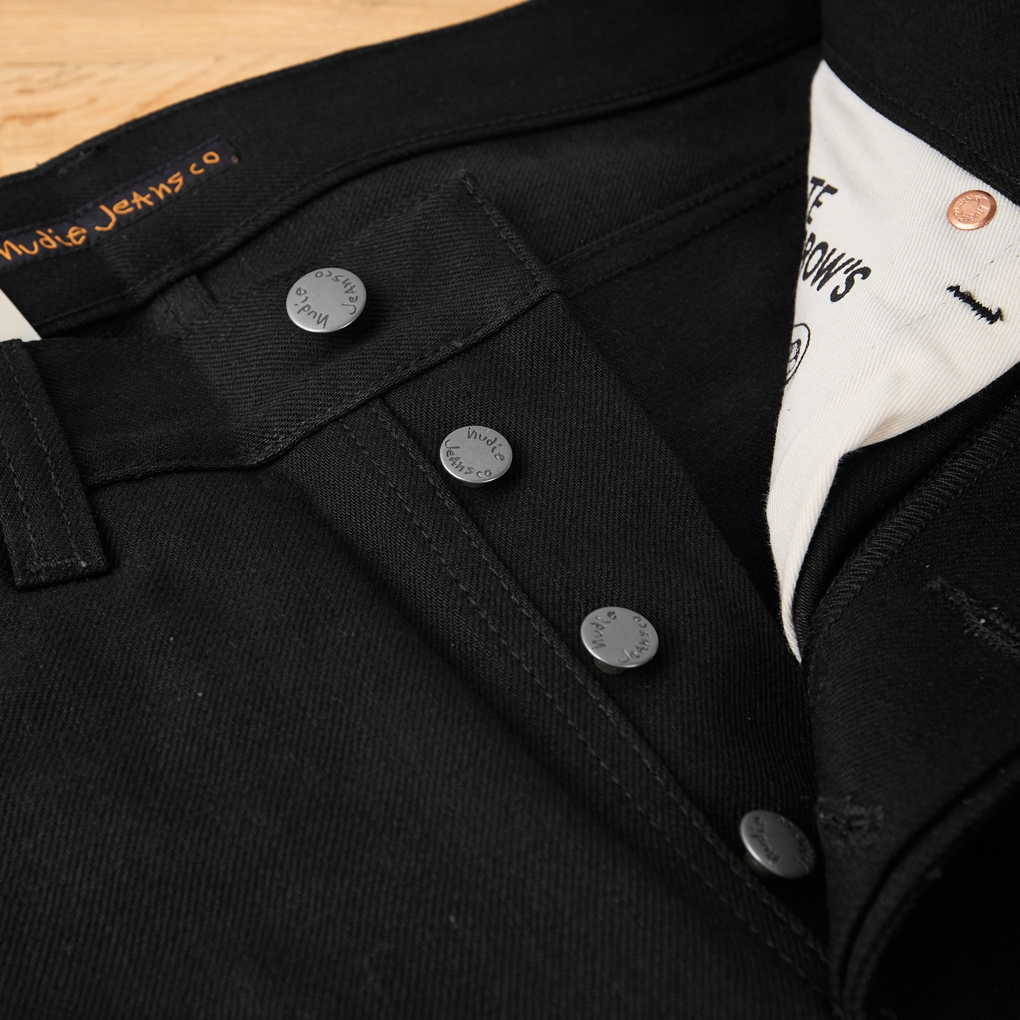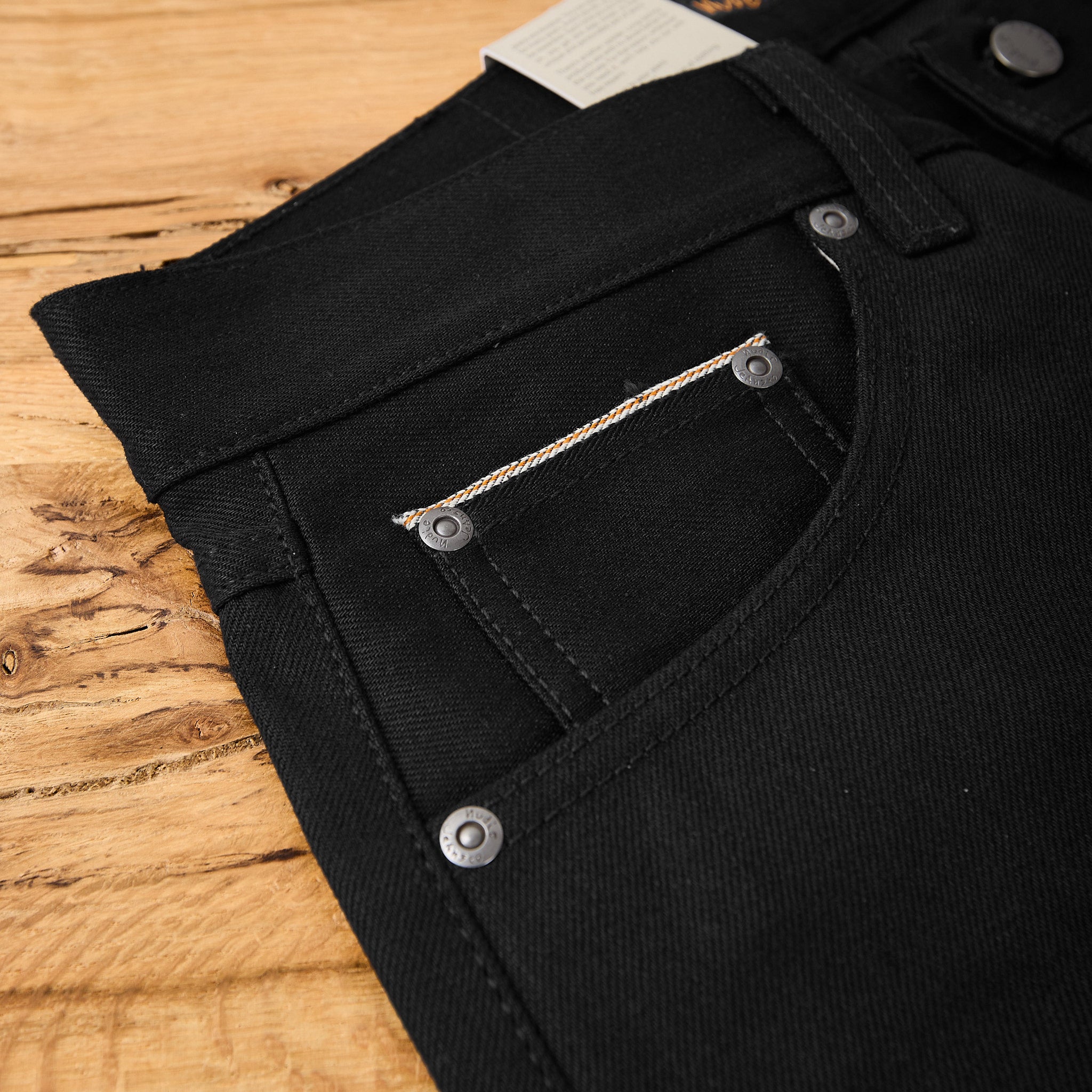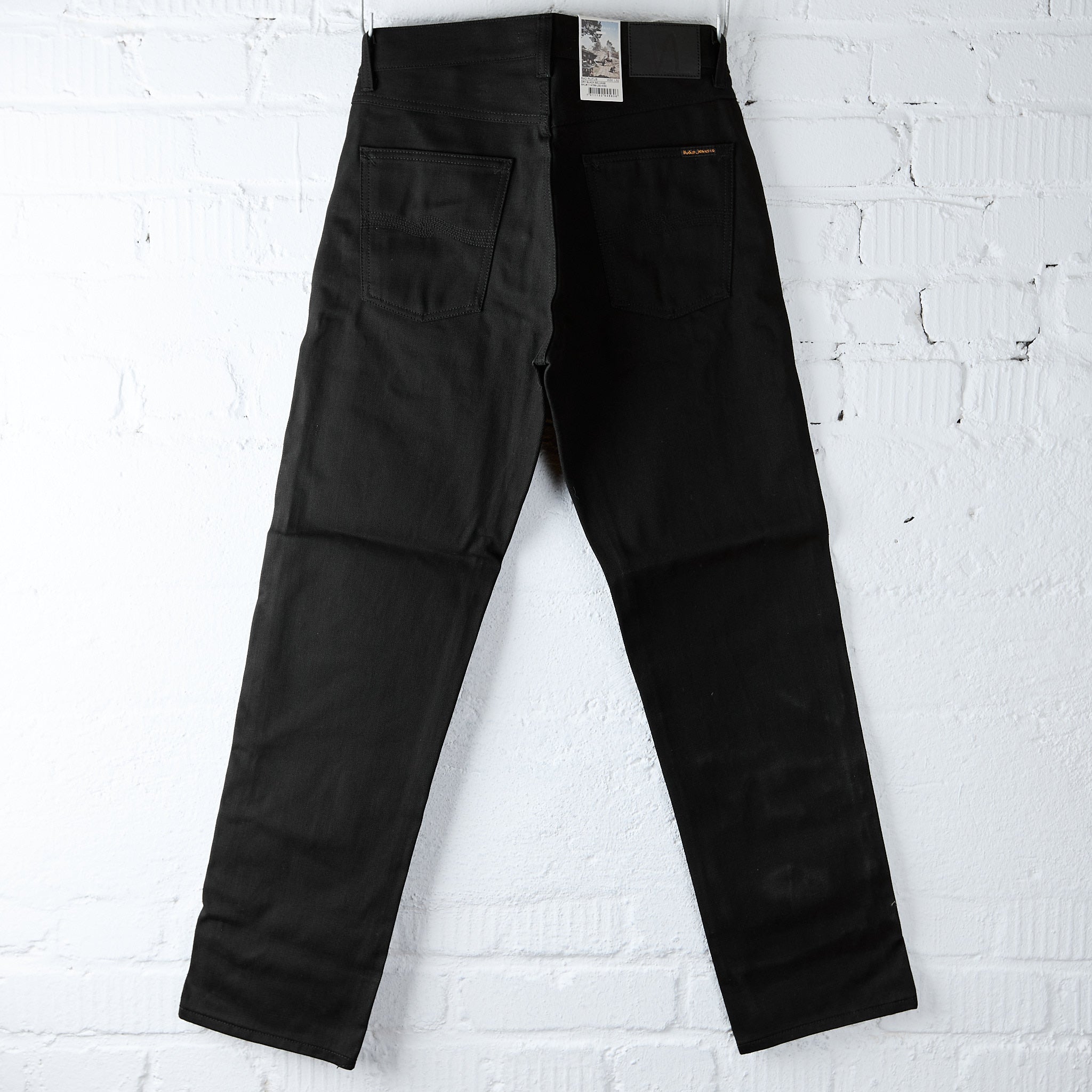 die rad rufus von nudie jeans ist eine klassische regular straight jeans, mit hoher leibhöhe und einem entspannten, nicht zu weiten, geraden bein. sie ist in italien aus 14.5oz schwerem black x black selvage denim von kurabo mills gefertigt. der tiefschwarze denim aus bio-baumwolle zeichnet sich durch eine enge webdichte und einen schön festen griff aus und wird mit zunehemder tragedauer einzigartig und wunderschön altern*.