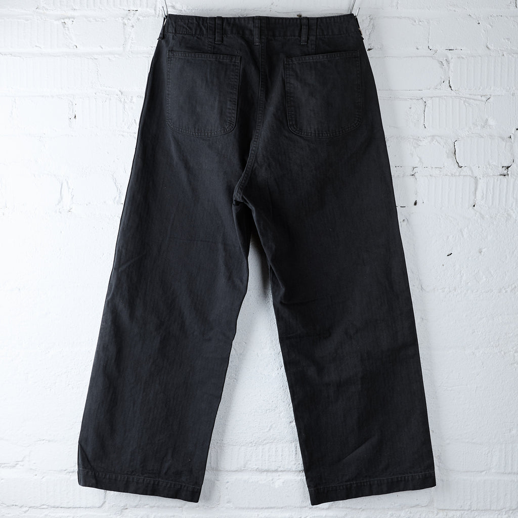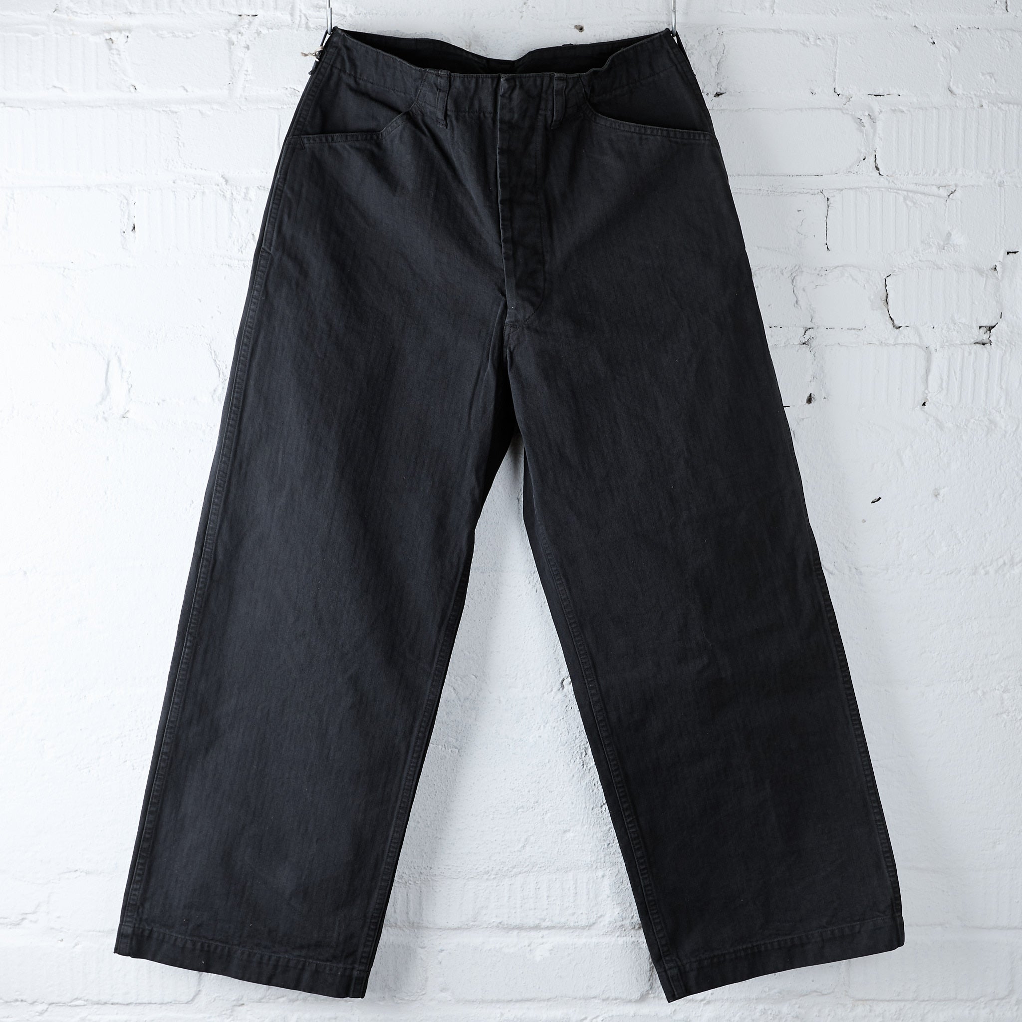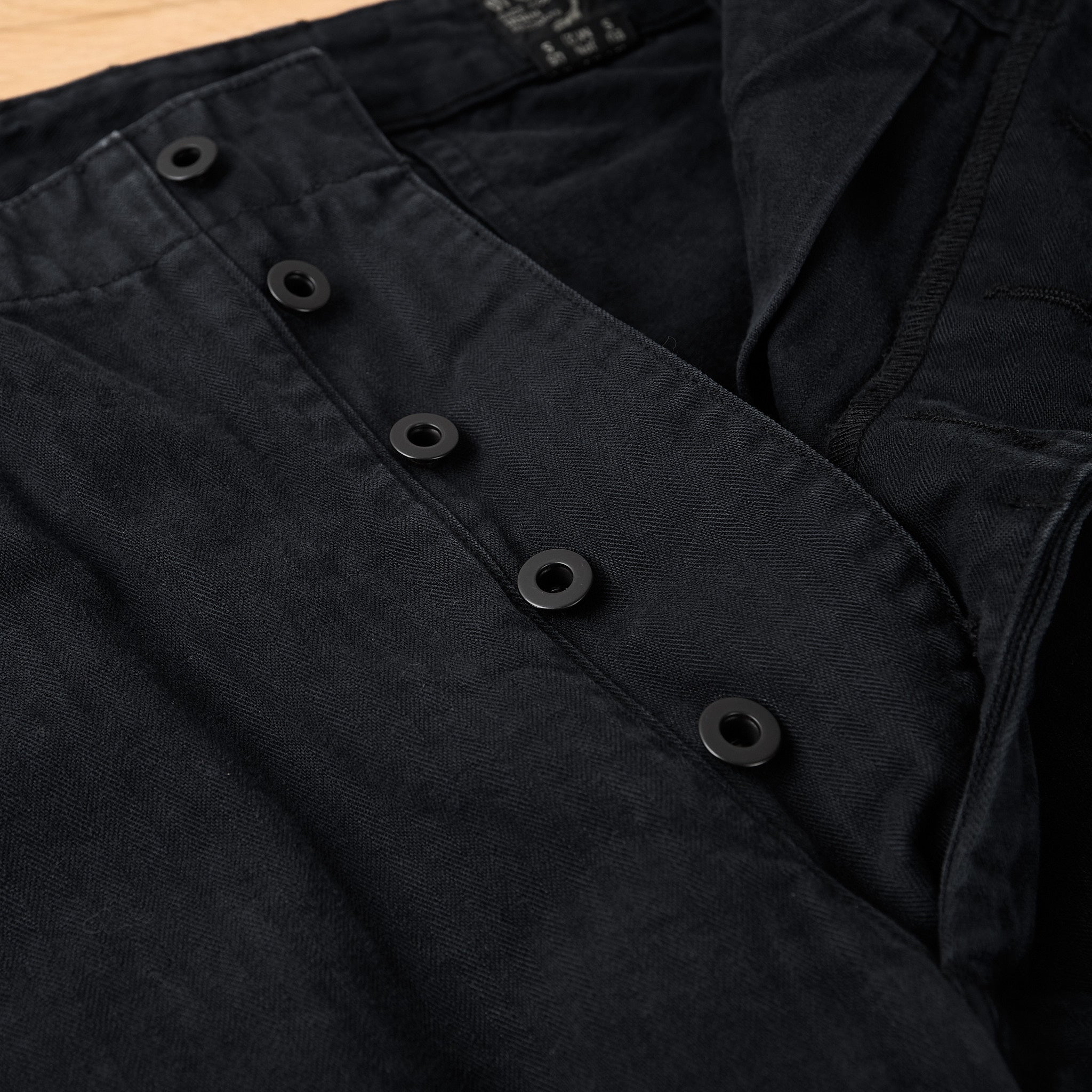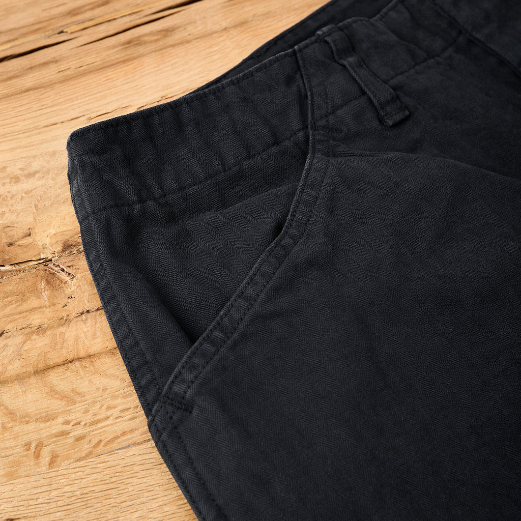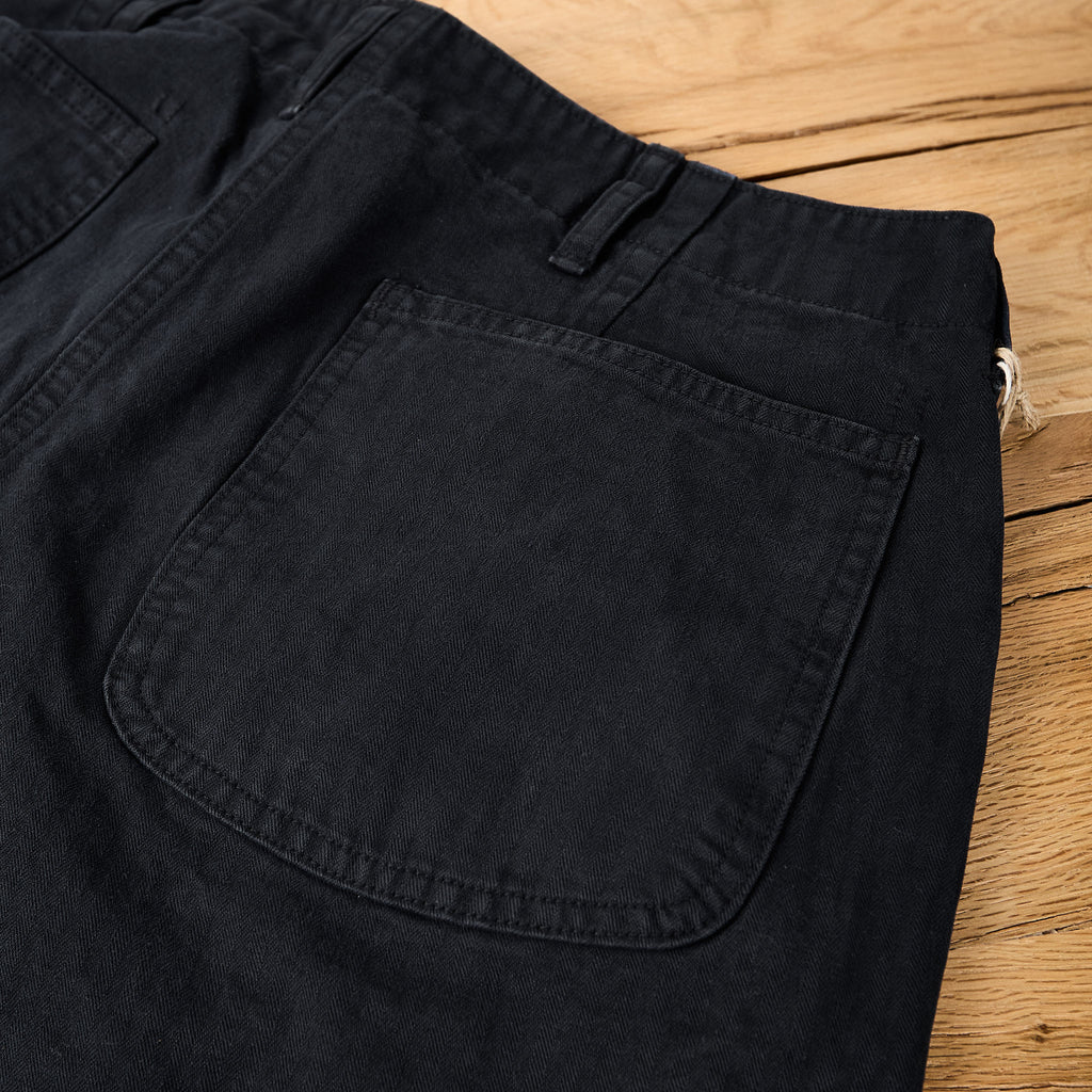 die usmc herringbone utility trousers von orslow orientieren sich an den work pants des u.s. marine corps aus den 1940er-jahren. die weit geschnittene silhouette wurde originalgetreu übernommen, während der markante herringbone-twill mit seiner authentischen, robusten haptik für ein authentisches vintage gefühl sorgt.