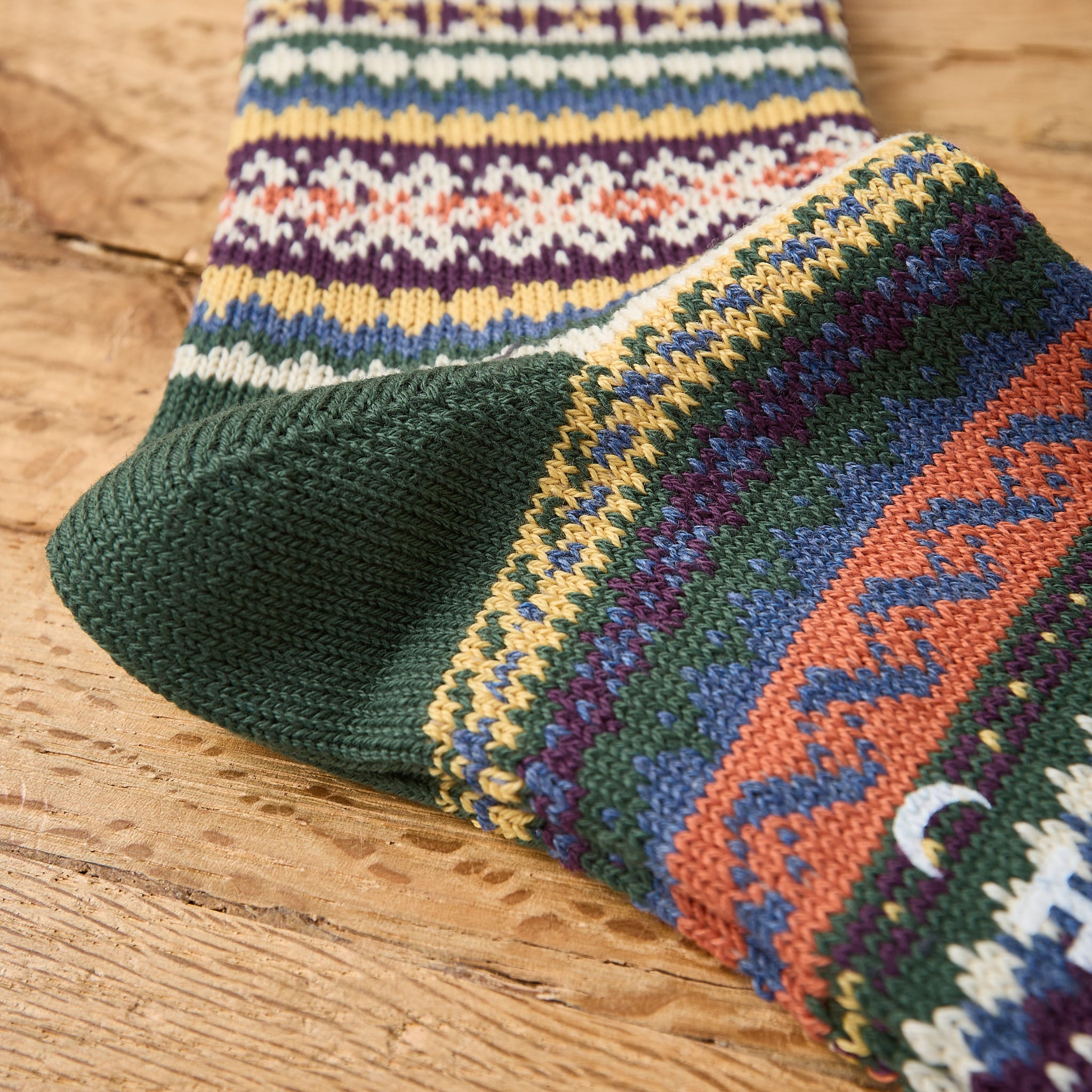 das japanische label chup by glen clyde fertigt farbenfrohe, von ethnischen mustern aus der ganzen welt inspirierte socken von höchster qualität. jede einzelne socke wird in japan auf alten speziellen socken-strickmaschinen mit begrenzter produktionskapazität gefertigt.