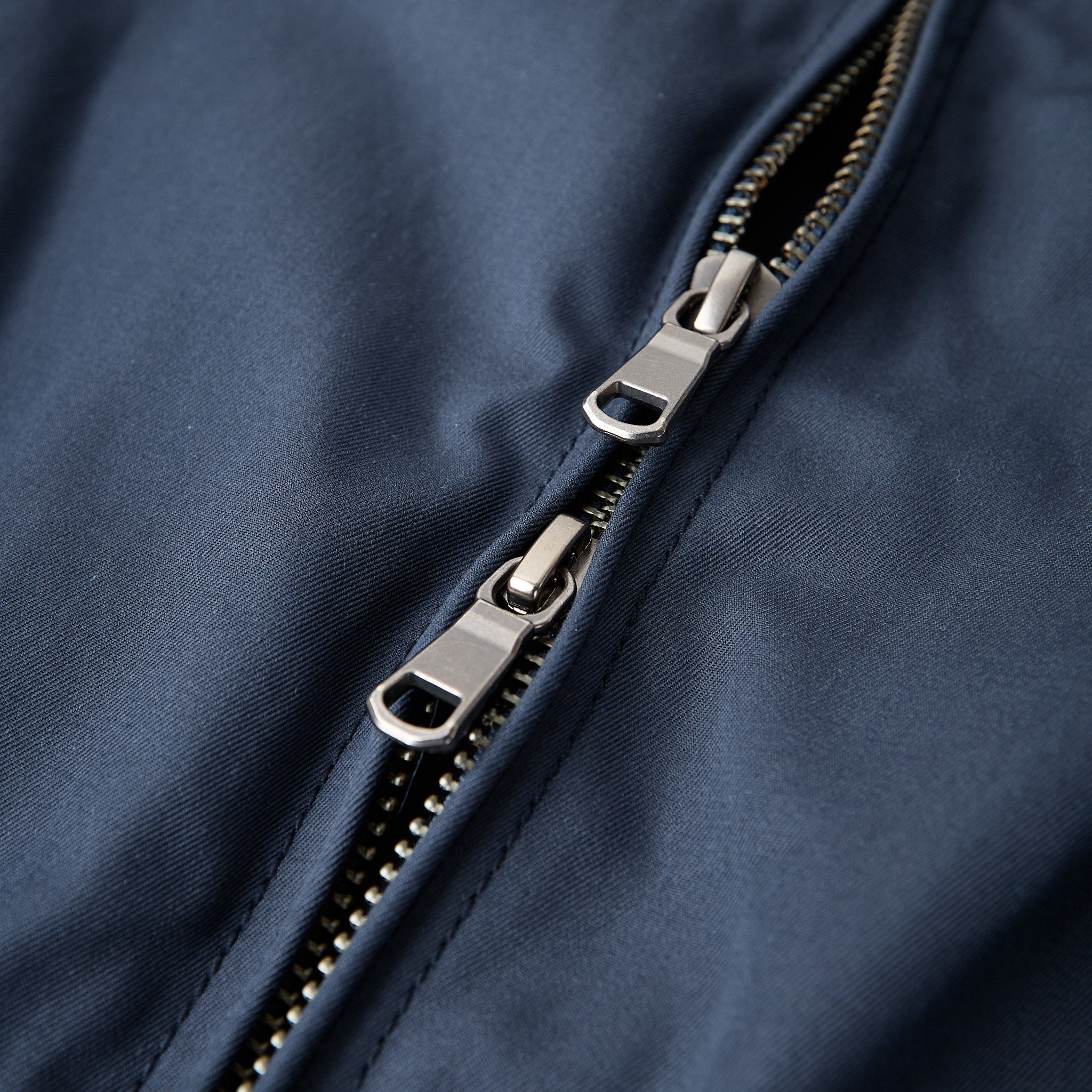 das golf jacket ist ciotas interpretation des klassischen harrington jackets, das trotz james dean und rebellenimage seine wurzeln im grün der elitären golf-plätze hat. ciotas version ist in japan aus fester und doch außerordentlich weicher chambray-gabardine aus suvin-baumwolle gefertigt. die tiefblaue jacke ist entspannt geschnitten, hat einen dezenten glanz und lässt sich sportlich wie elegant gleichermaßen gut kombinieren.