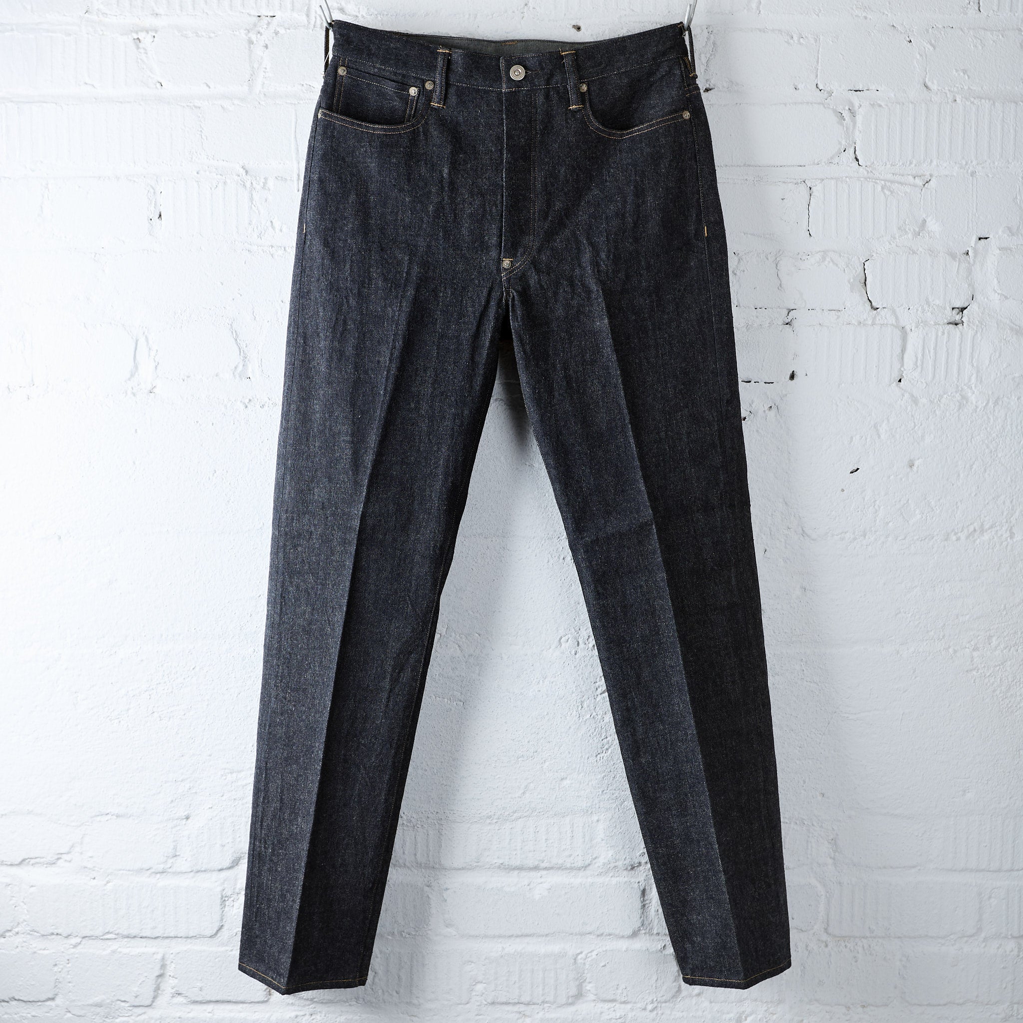 bei der five pocket jean trouser von old joe trifft workman auf gentleman. die jeans hat details einer arbeiterjeans aus den 1940er jahren - wie cinch back und crotch rivet - ist aber insgesamt minimalistisch elegant im old joe style umgesetzt, und erinnert mit den bügelfalten eher an tailoring als an engineering. die jeans hat ein gerades, etwas entspannter geschnittenes bein mit einem leichten taper und ist in japan aus old joe’s berühmtem 12.4oz original denim gefertigt. der außergewöhnliche jeansstoff wurde in ibara, japans führender denim-pronduktionsregion, aus einem mit hochwertigem indigo gefärbten kett- und einem sorgfältig ausgewählten beigen schussgarn gewebt und hat eine tolle, unregelmäßige "nep“ textur mit viel tiefe und charakter.
