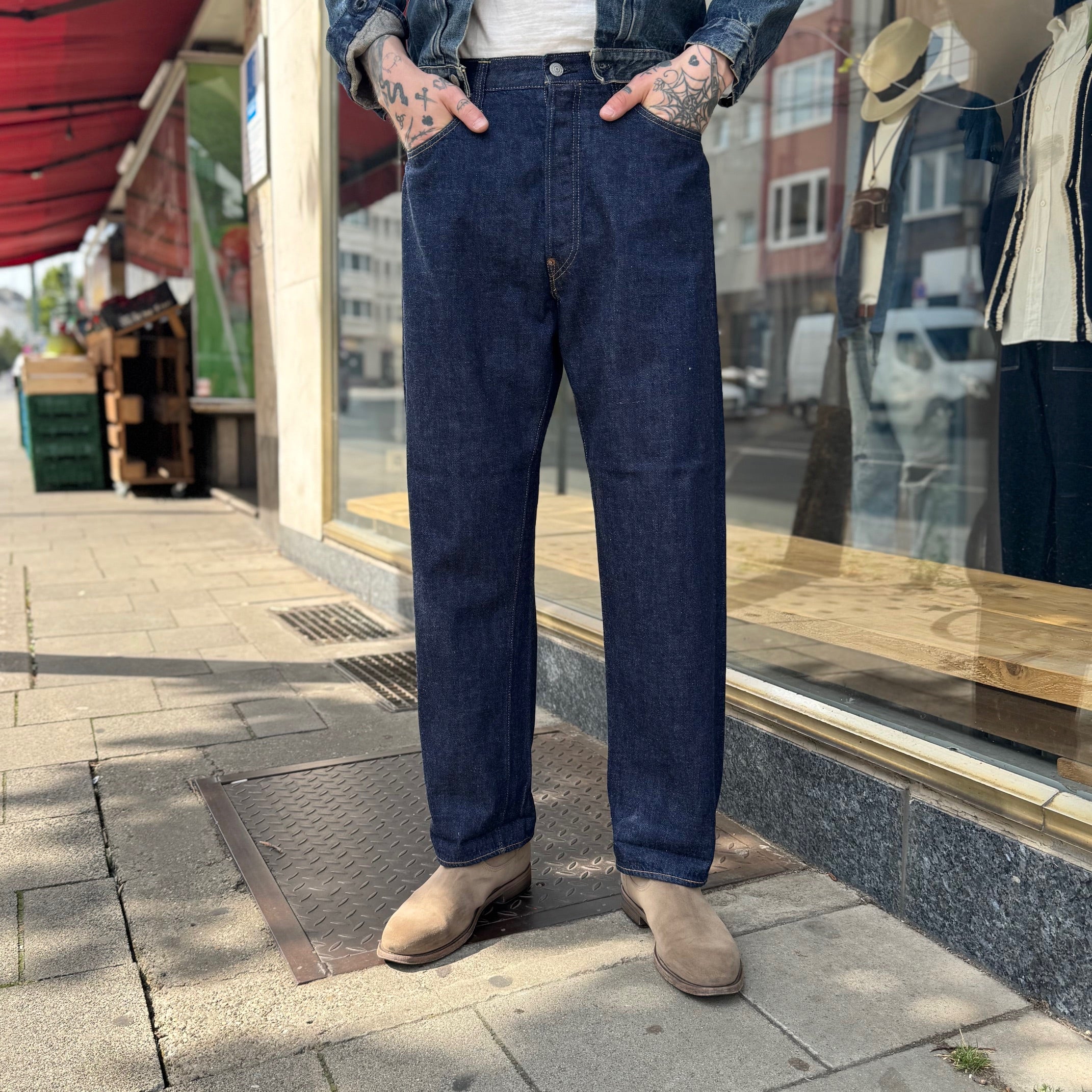 die grand dad jeans von orslow orientiert sich an der arbeitskleidung der 1930er jahre und besticht durch eine lässige, weit geschnittene silhouette. gefertigt aus leichtem 12oz selvedge denim aus japan, überzeugt der stoff mit weichem griff und gebürsteter textur – inspiriert von vintage-jeans aus dem archiv von designer ichiro nakasu. abgerundet wird das design durch oxidierte nieten im retro-stil, einen lederpatch sowie einen verstellbaren cinch back.