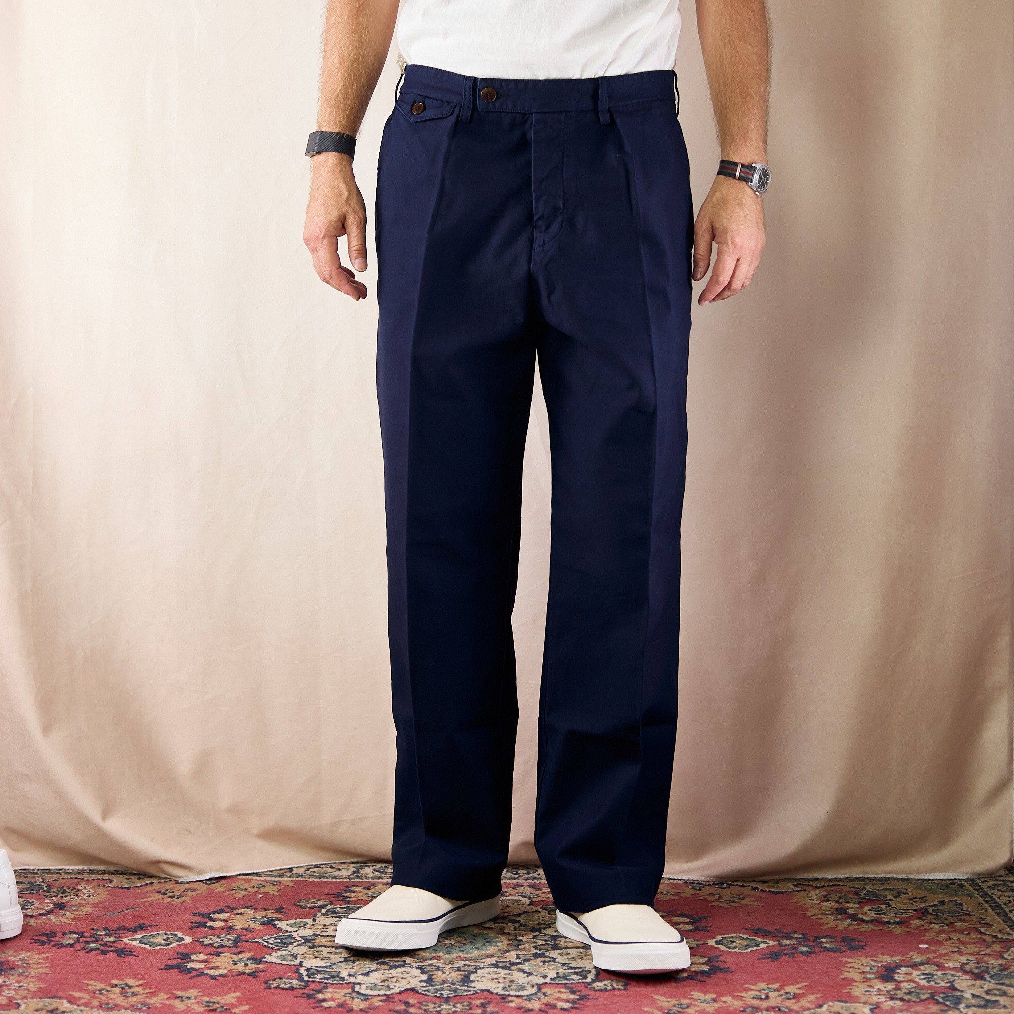 die riviera von fortela überzeugt mit einer hohen leibhöhe und einer entspannten silhouette. die hose ist in italien aus herrlich weichem baumwoll-canvas gefertigt und hat tolle, subtile details wie wie die münztasche oder die geknöpften gesäßtaschen. ein unkompliziertes, stilvolles essential für einen lässig-eleganten look.