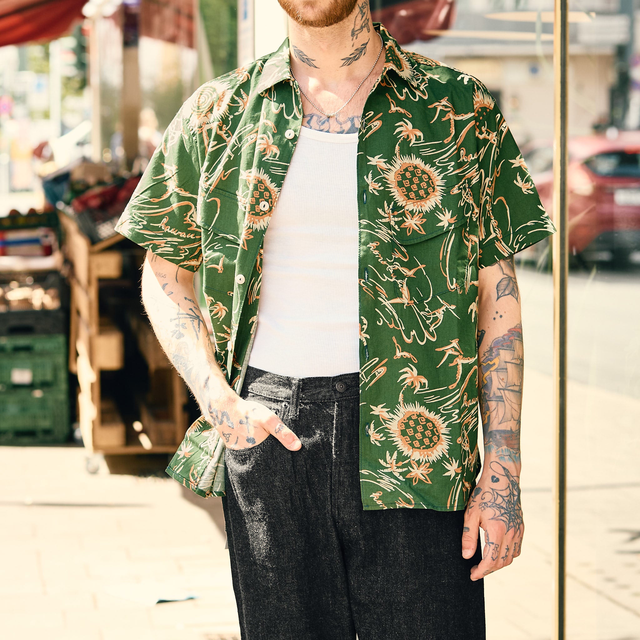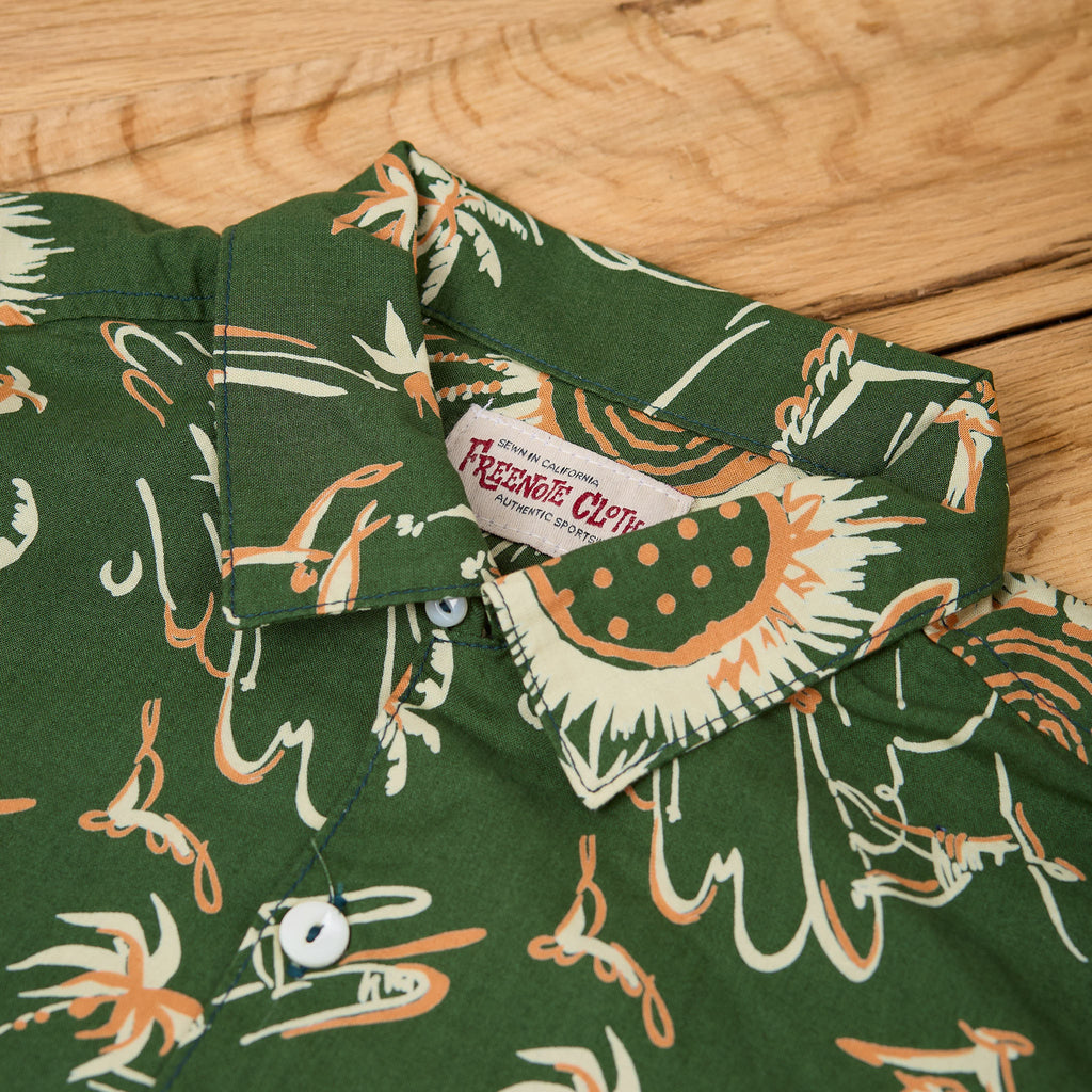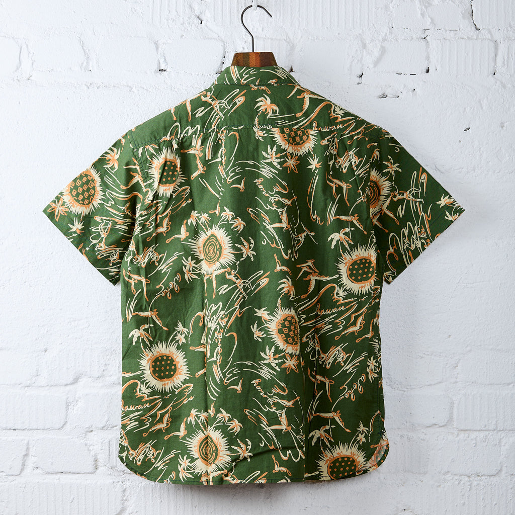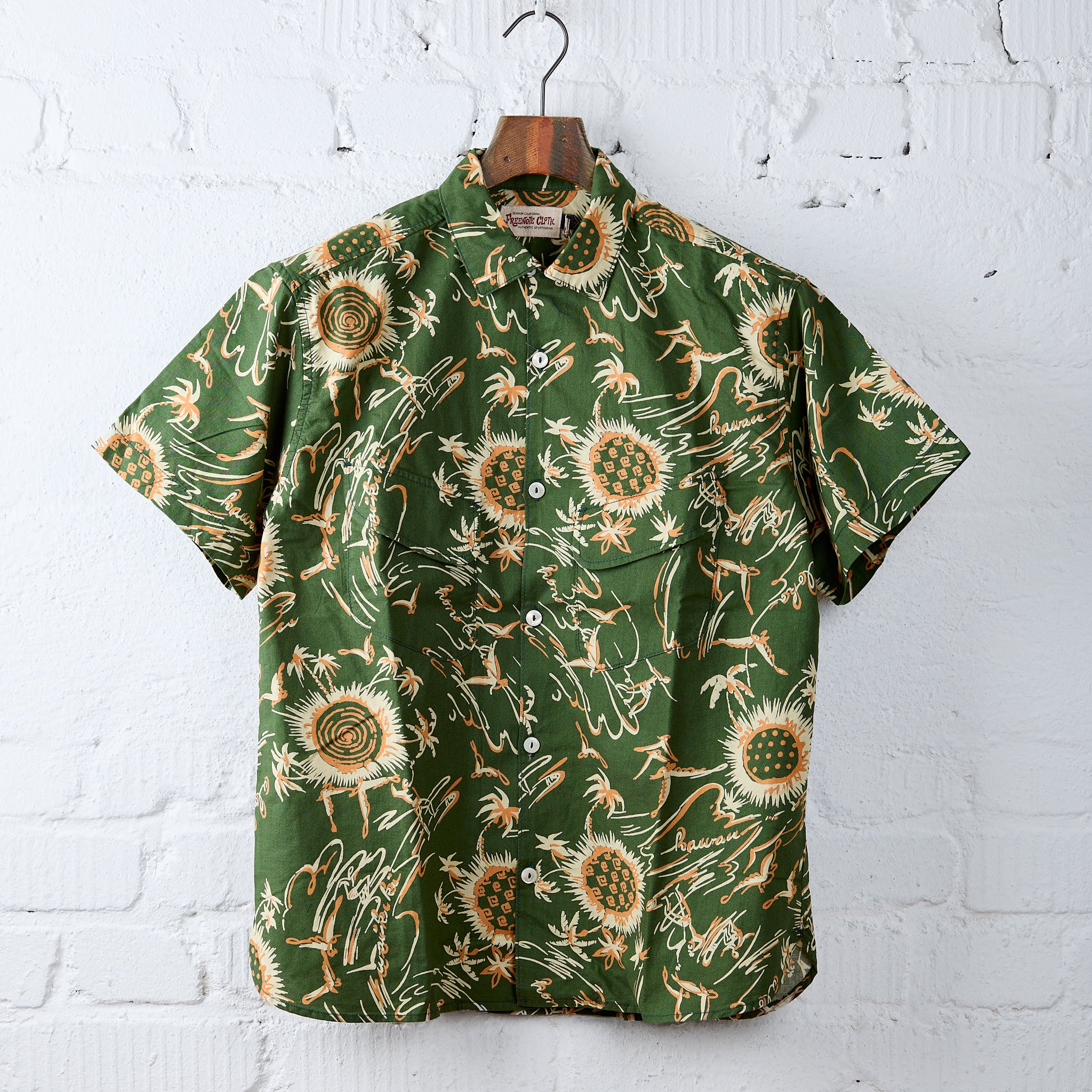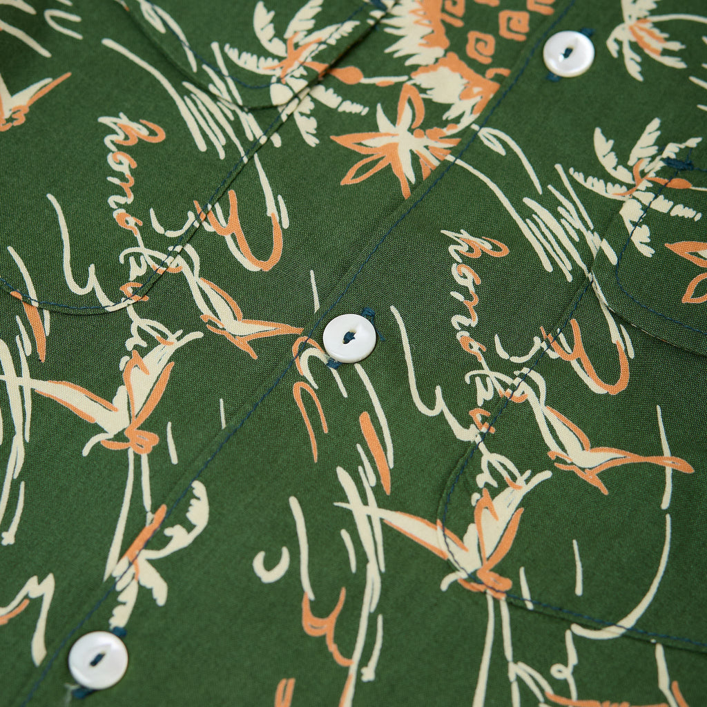 freenote's interpretationen des klassischen hawaiihemds sind jedes jahr ein absolutes highlight in ihrer frühjahr/sommer-kollektion, und das dean aloha shirt ist da keine ausnahme. es ist in den usa aus japanischer bedruckter baumwollpopeline gefertigt und verfügt über den klassischen camp-kragen, 2 praktische brusttaschen und eine gefaltete schulternaht.