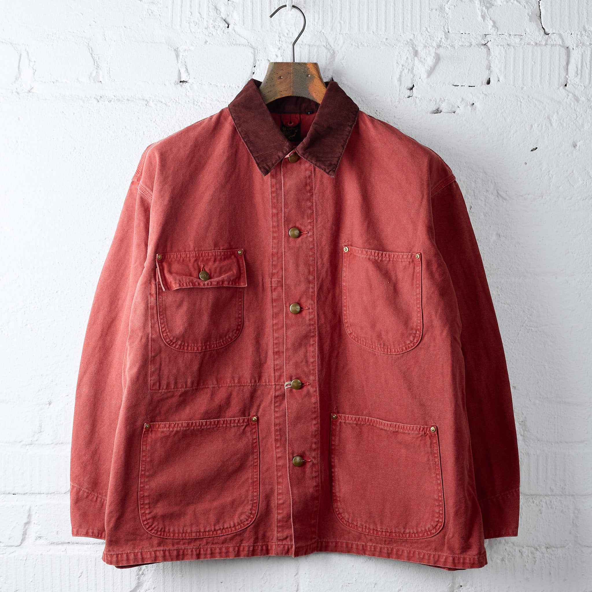 das orslow coverall jacket verbindet gekonnt das klassische design von workwear der 1950er jahre mit einem neuen eleganten, luxuriösen touch. die jacke ist in japan aus hochwertigem baumwollstoff gefertigt, hat vier fronttaschen, einen kontrastierenden cordkragen sowie ein gewaschenes, vintage-ähnliches finish.