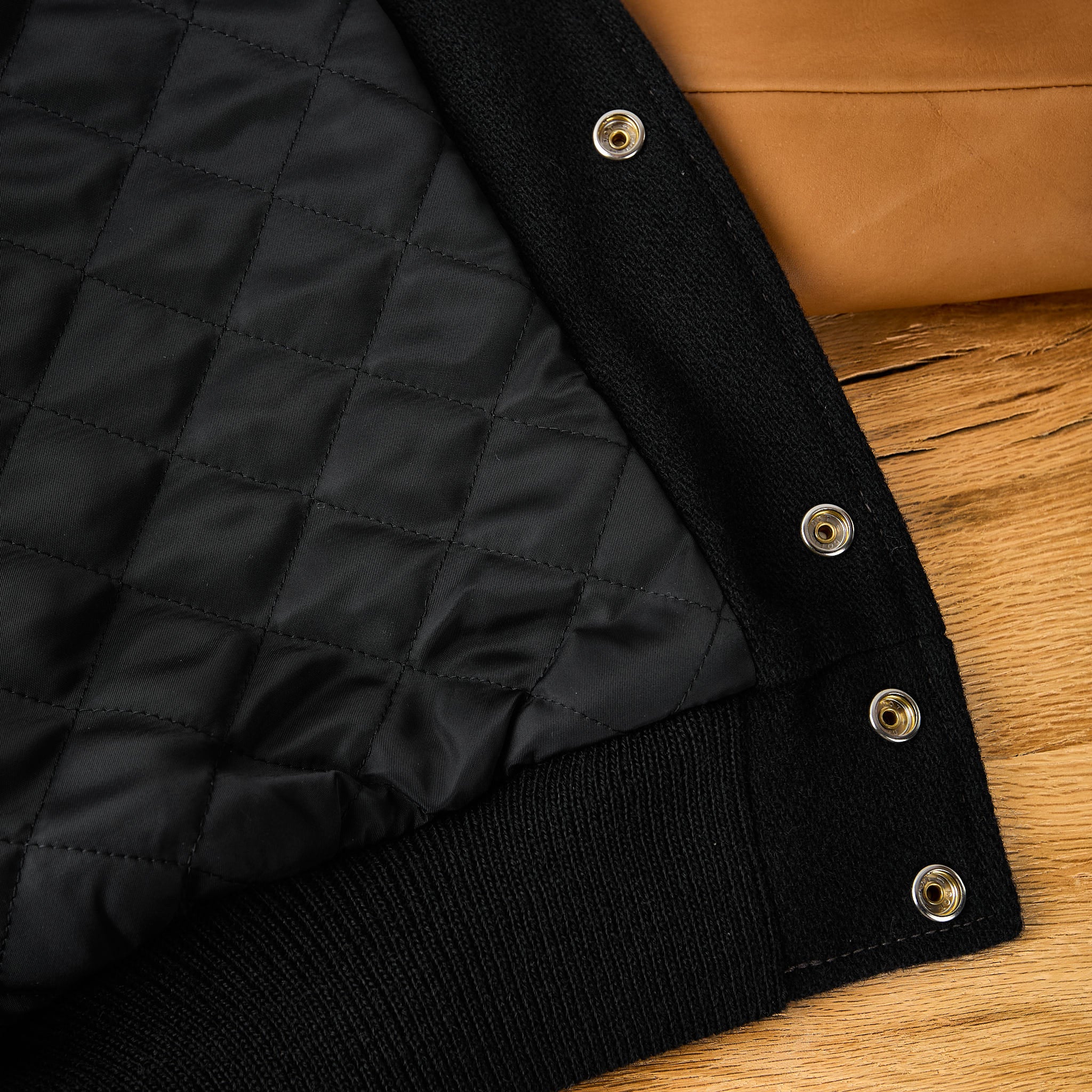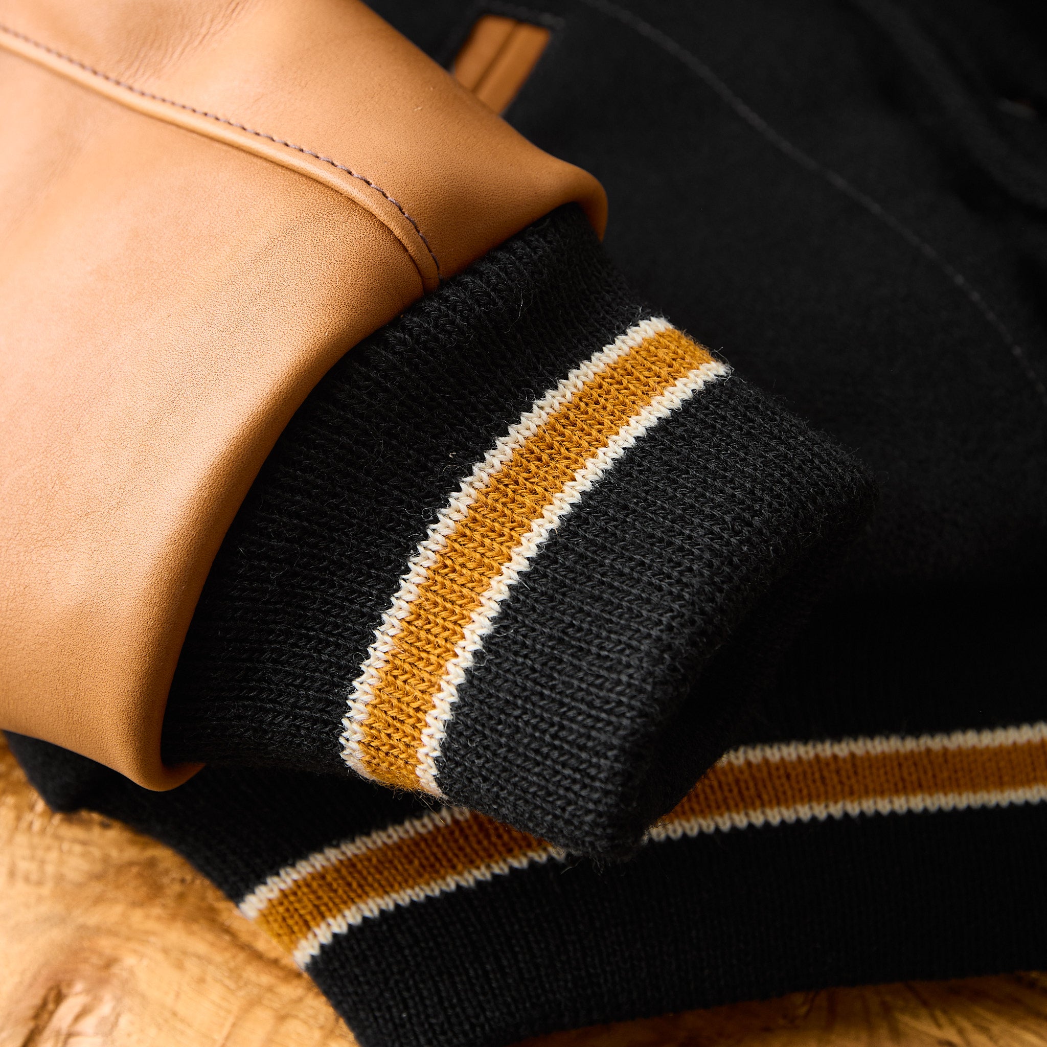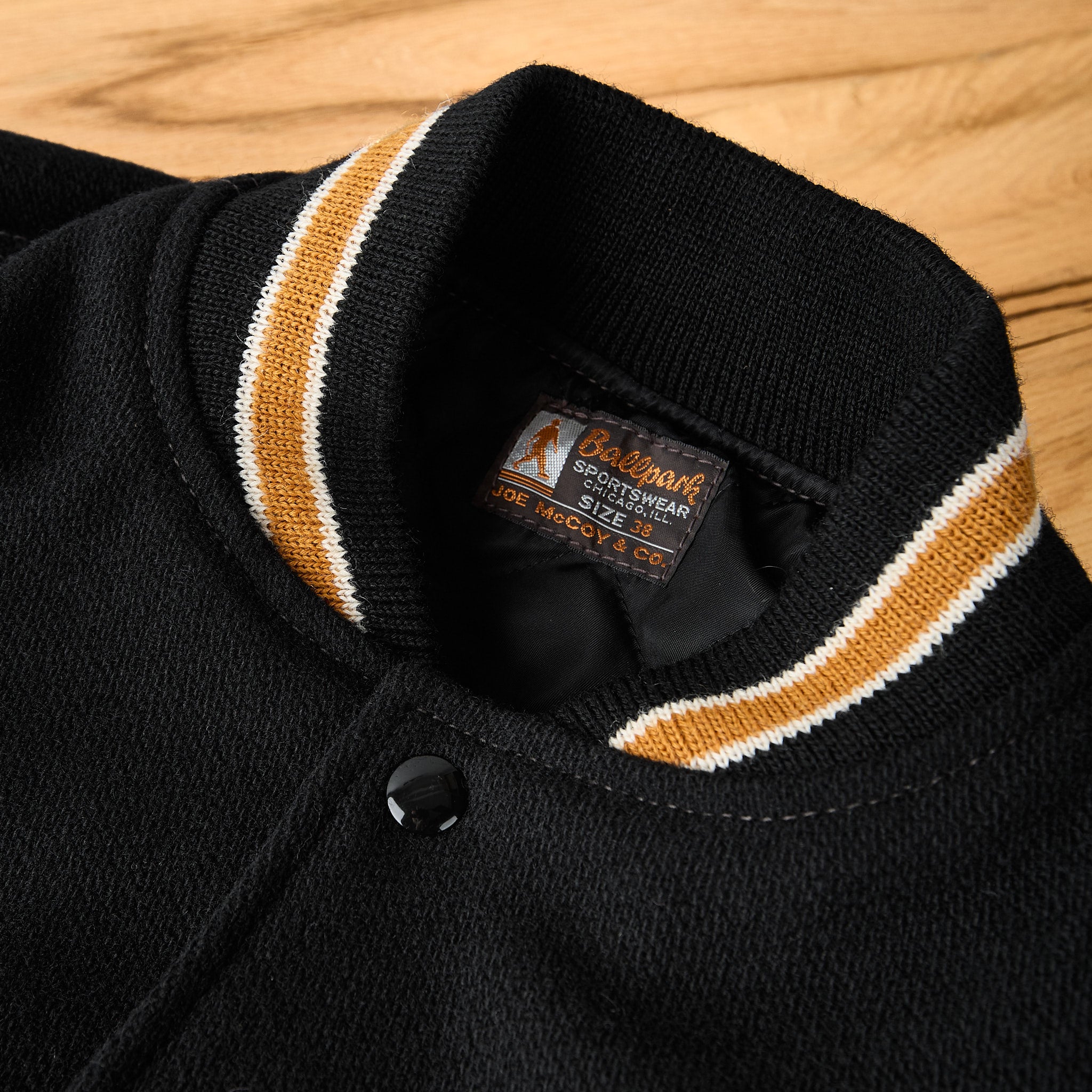 das wool varsity jacket von the real mccoy's basiert auf den klassischen college-jacken der 1960er jahre und ist in japan in sorgfältiger handarbeit aus einem schweren, inhouse entwickelten melton-wollstoff und robustem rindsleder gefertigt. auch ohne studium oder jenseits der studienjahre eine traumjacke.