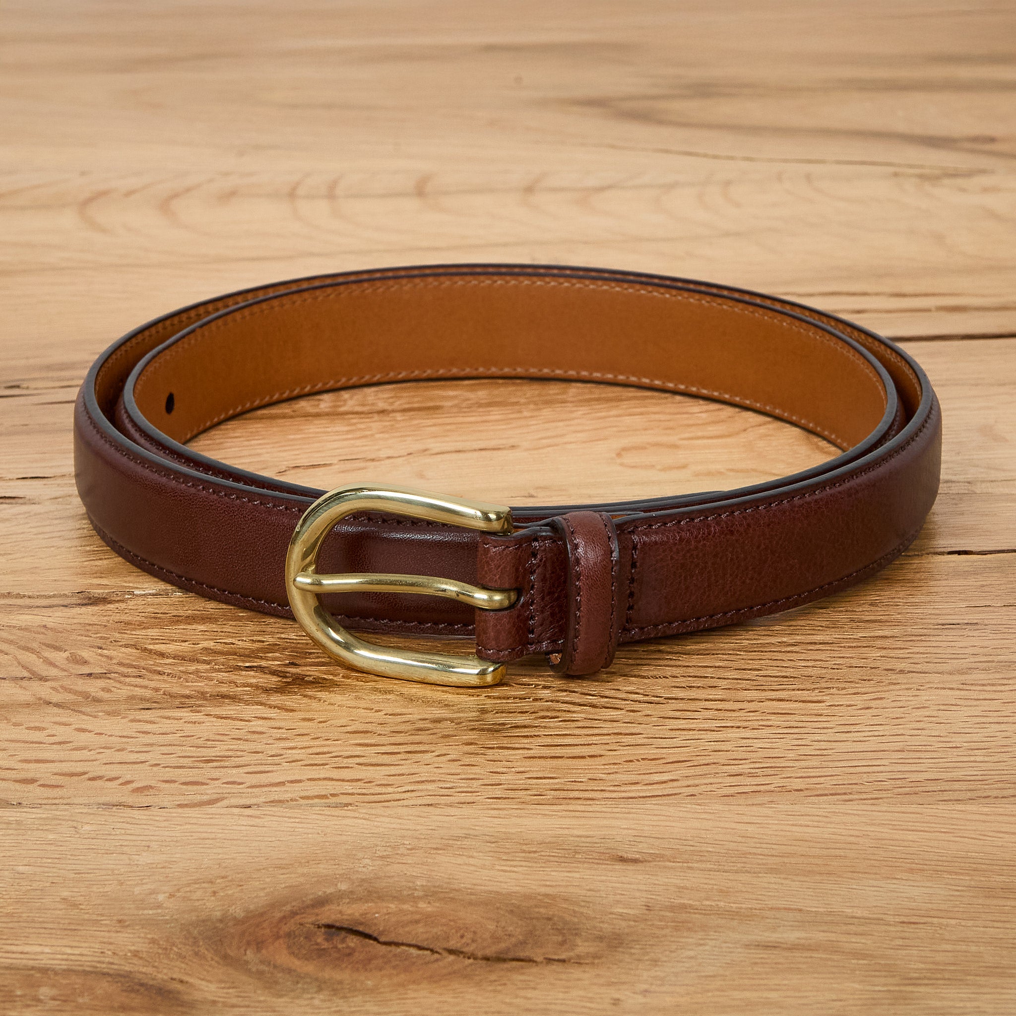 kamakura shirts | horseshoe buckle slim leather belt - brown