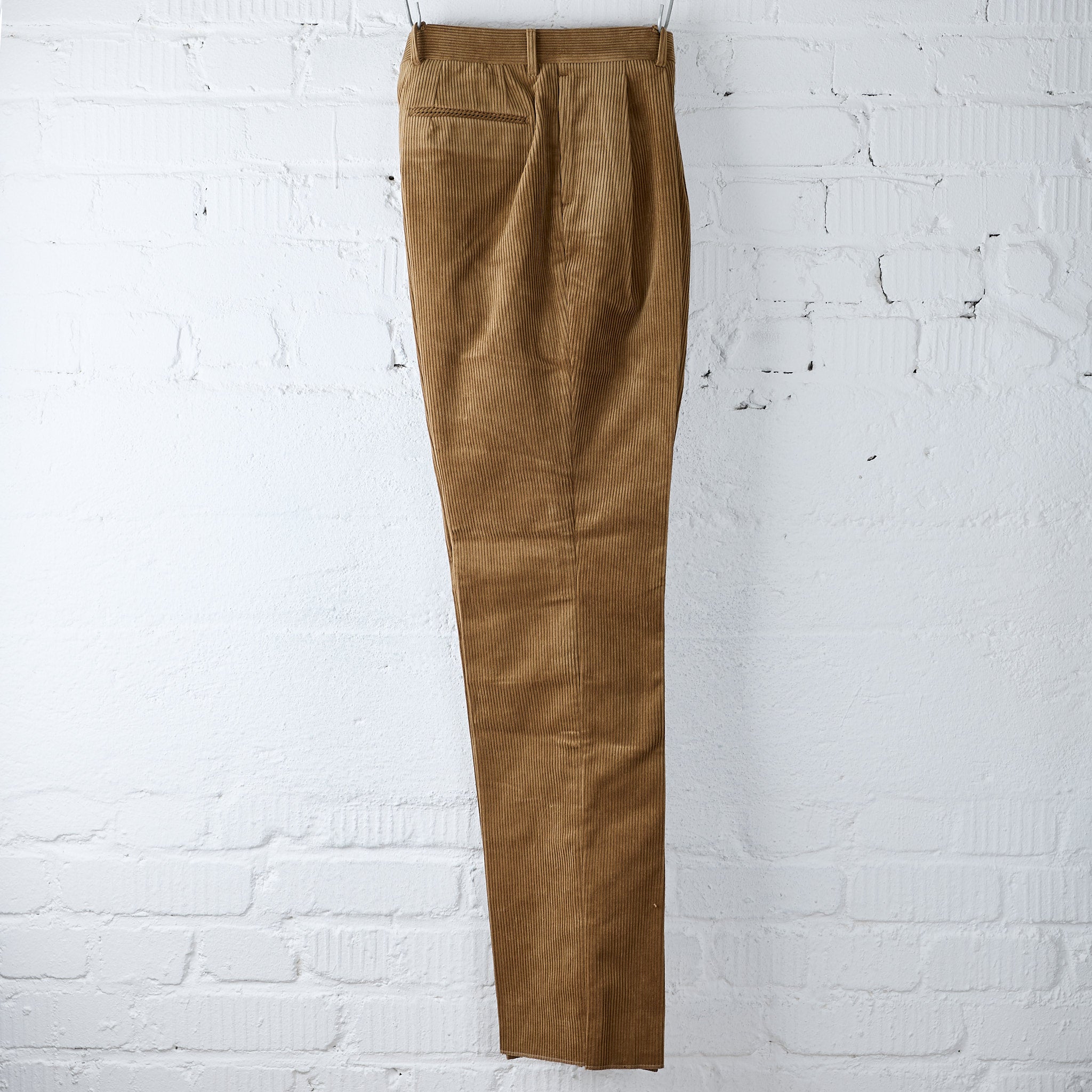 diese lässig geschnittene bundfalten-chino ist ist in japan aus einem 8-wale baumwollcord gefertigt, hat eine etwas höhere leibhöhe und ein entspanntes bein mit einem leichten taper. der saum (die länge) der hose ist unbehandelt und kann nach eigenen wünschen umgenäht werden.