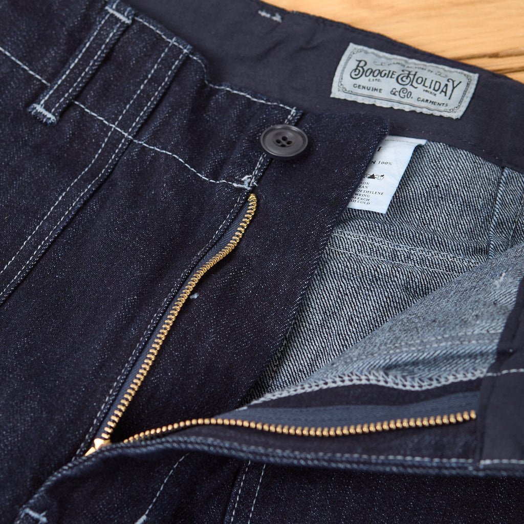 fatique pants oder auch baker pants genannt sind absolute style-klassiker und gehören in jeden männerkleiderschrank. die militärhose war teil der og-107 uniform der us army, die in den 1950er jahren eingeführt und zu beginn des vietnamkriegs zur standarduniform wurde. boogie holiday's interpretation dieses klassikers ist in südkorea aus feinstem denim gefertigt und überzeugt mit vielen authentischen details.