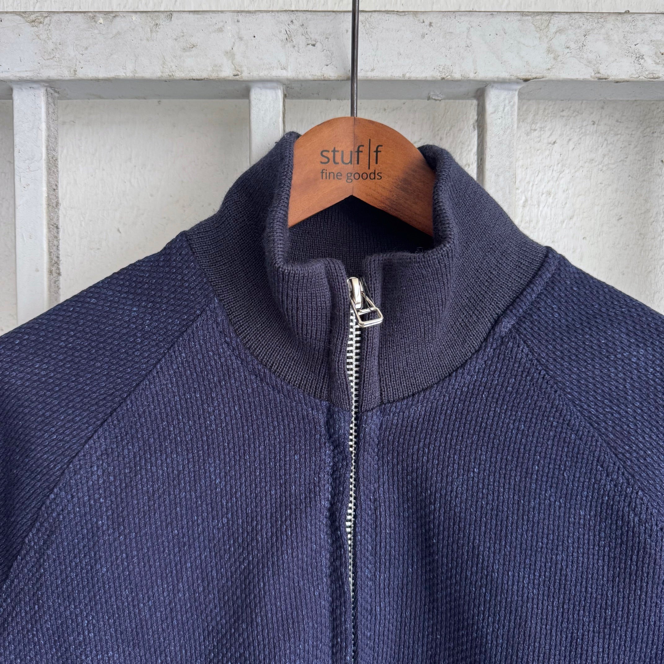 das pilot jacket von dehen 1920 basiert auf alten fliegerjacken und ist in gewissem maße auch eine hommage an den militärienst des verstorbenen bill dehen im zweiten weltkrieg. die jacke ist in portland aus einem 12oz schweren, indigo überfärbten, japanischen sashiko-baumwollstoff gefertigt und wird wunderschön altern. tonale details wie der gerippte kragen, saum und die manschetten aus navyfarbener kammwolle, die auf dehens originalen rundstrickmaschinen aus den 1940er jahren hergestellt werden, unterstreichen das zeitlose design. ein navyfarbenes satinfutter sowie eine praktische innentasche runden die jacke funktional und stilvoll ab.