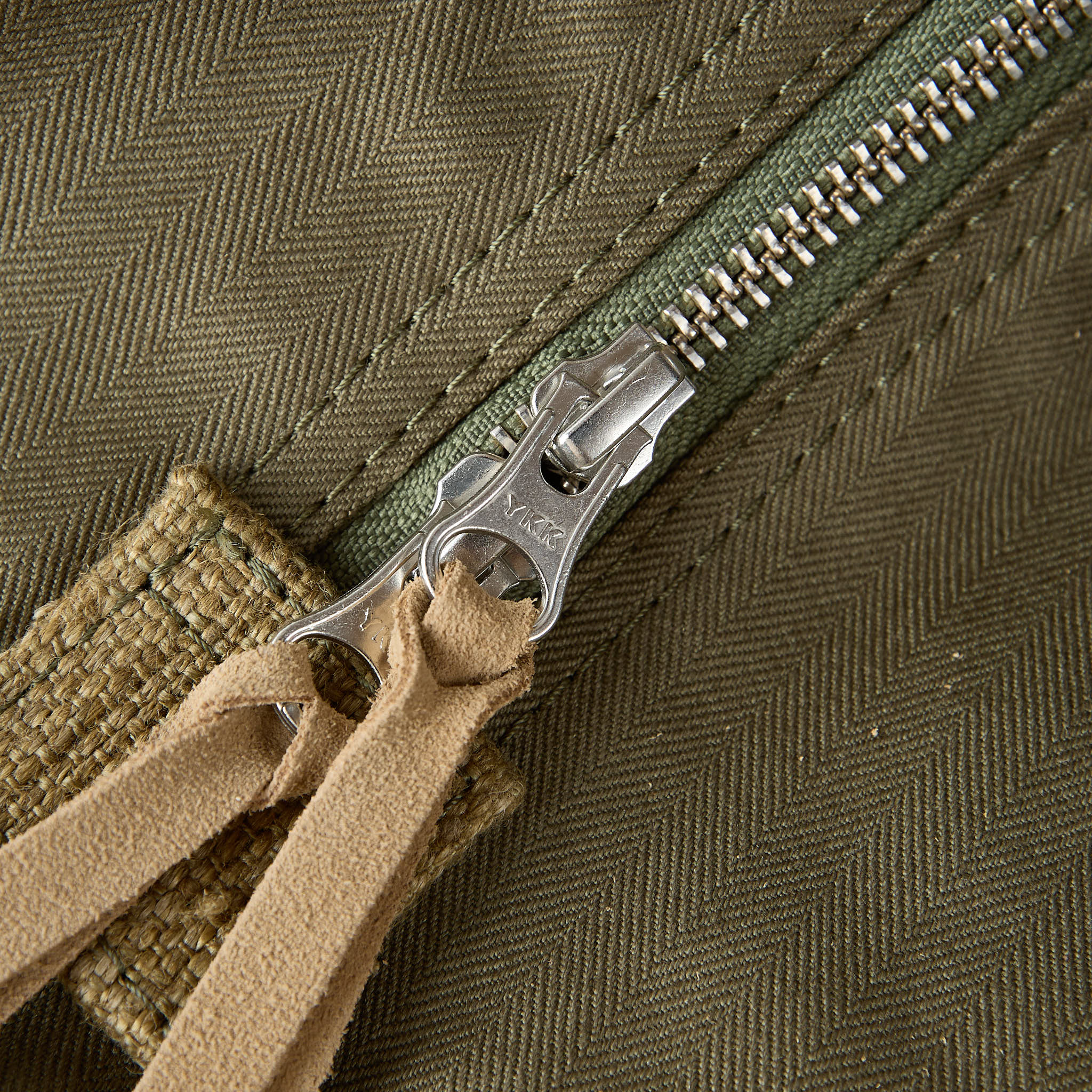die aviator bag von fortela basiert auf einer alten militärtasche und ist in italien aus einem herringbone-baumwollstoff gefertigt. der perfekte begleiter für jeden tag, ob ins büro, beim shoppen, zum sport oder sogar für einen kurztrip.