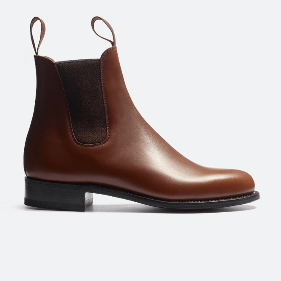 der chelsea boot von j.m. weston wurde in den 1970er jahren entworfen und gehört zu den absoluten klassikern der marke. er wird heute noch in limoges, frankreich in mehr als 150 aufwendigen arbeitsschritten gefertigt. das obermaterial besteht zum beispiel aus einem einzigen stück leder und wird vollständig von hand auf einem hölzernen leisten geformt. dieser chelsea boot ist eine wahre meisterleistung der schuhmacherkunst und besticht durch seine kräftigen und dabei sehr eleganten linien.