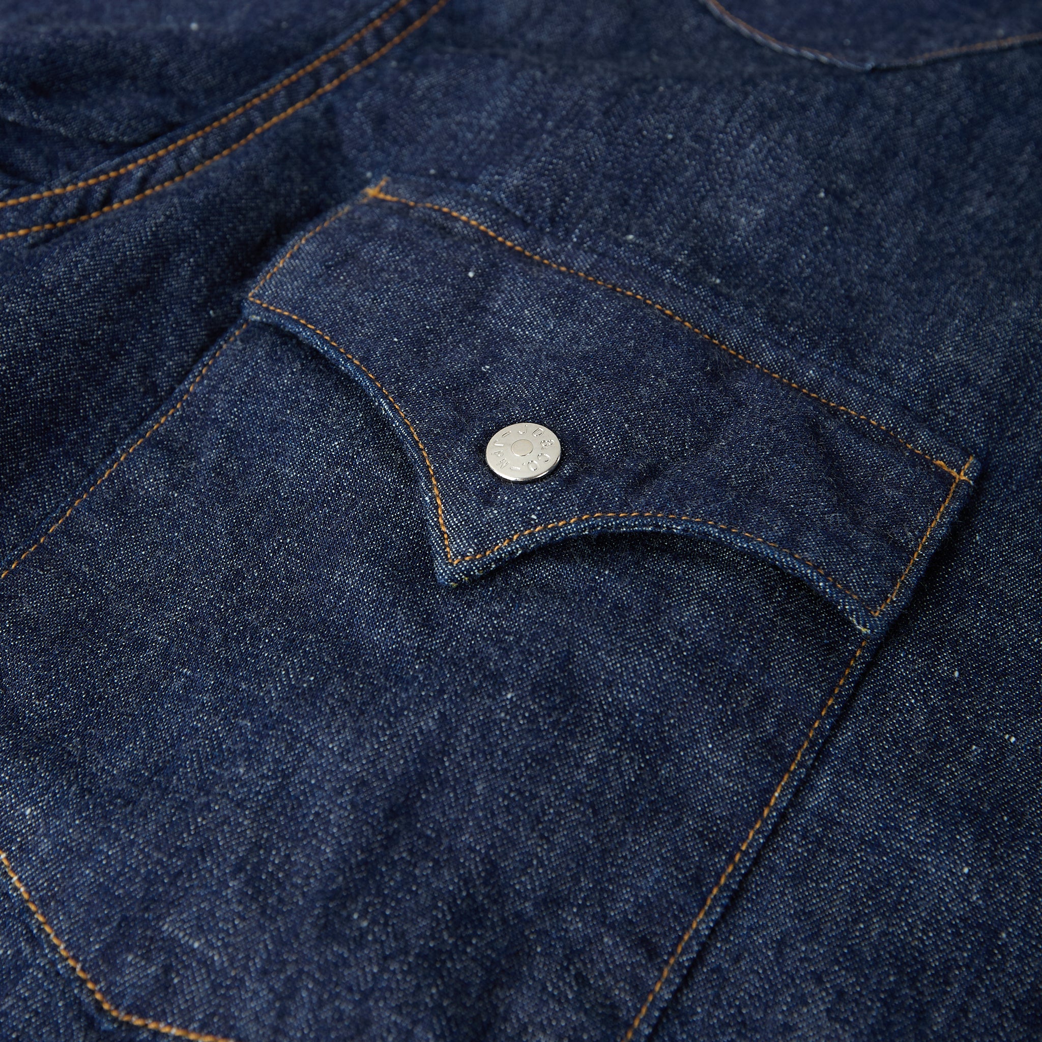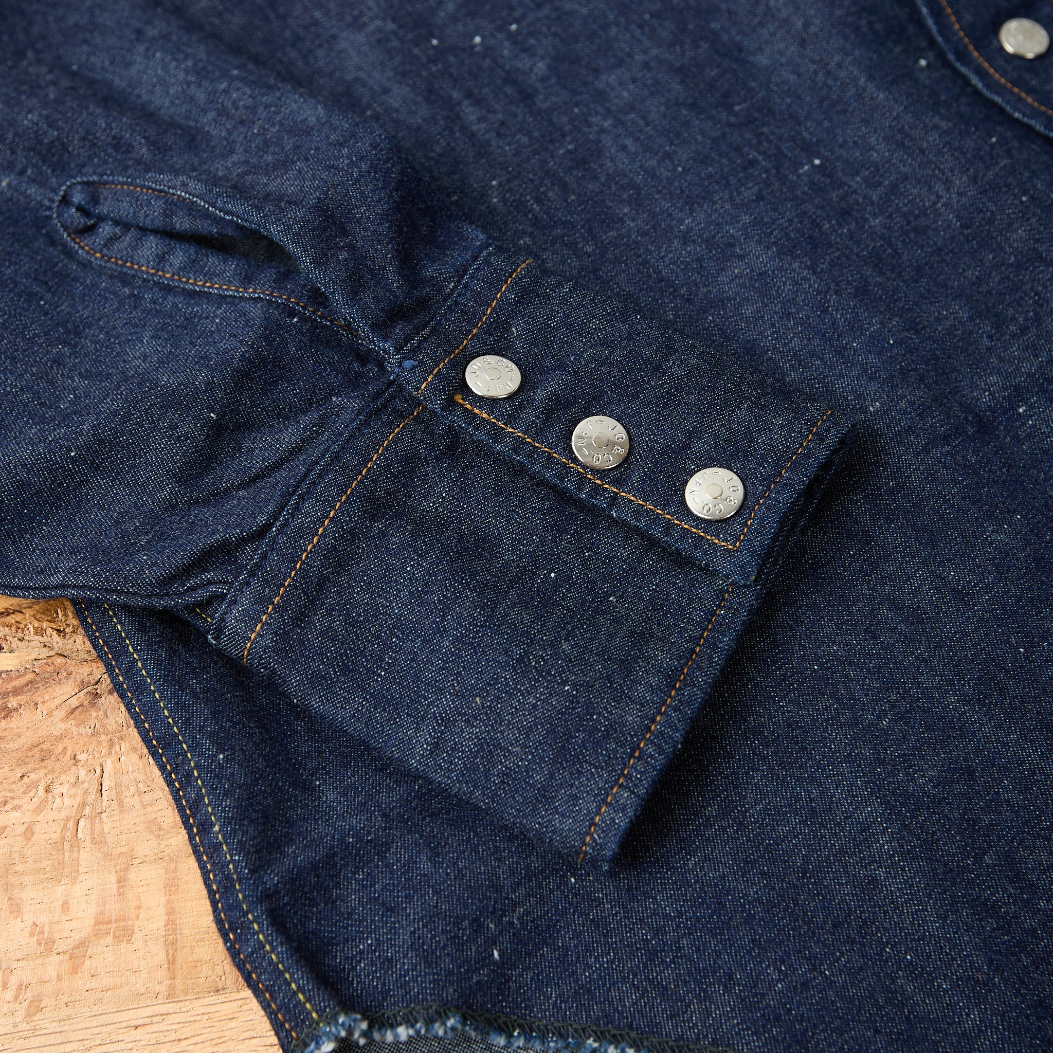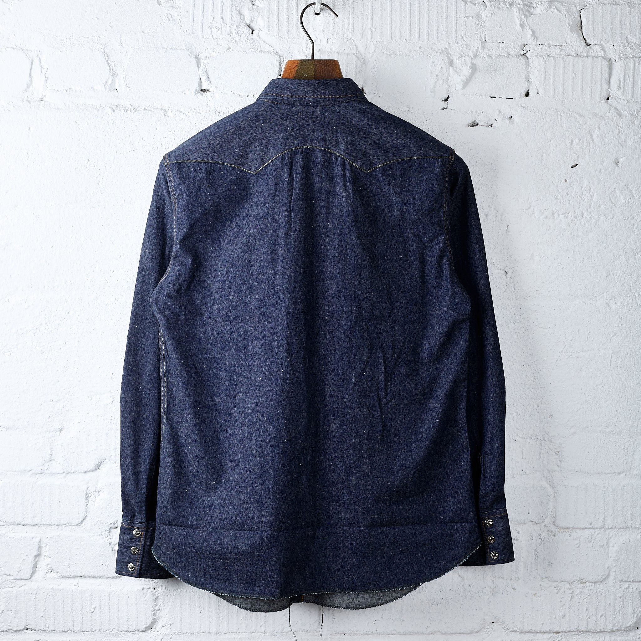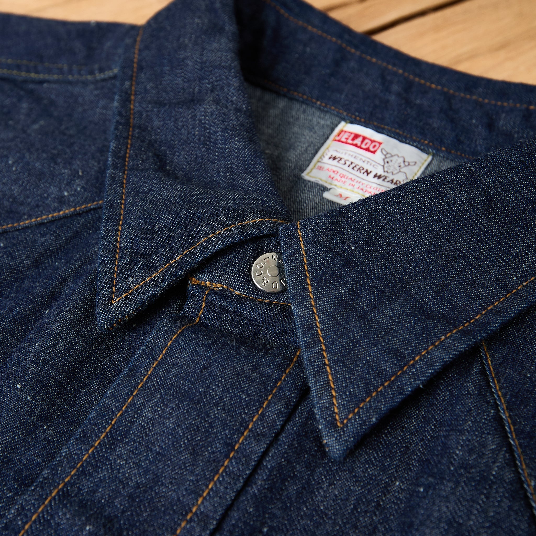das vaquero shirt von jelado basiert auf einem vintage denim western shirt und kombiniert gekonnt originalgetreu reproduzierte details - wie garnfarbe oder druckknöpfe - mit einer etwas moderneren passform. das hemd ist in japan aus einem wunderschönen 5oz leichten denim gefertigt und entwickelt mit zunehmender tragedauer- trotz leichtgewicht - eine einzigartige patina.