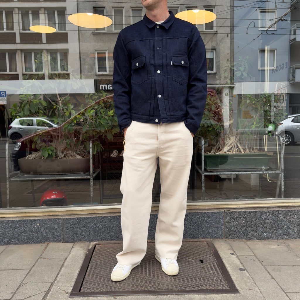 das 3220 type 2 jacket von omoto denim ist eine moderne interpretation der ikonischen type 2 jeansjacken aus den 1950er jahren. die jacke ist in japan aus 12oz schwerem cube sashiko-stoff gefertigt, der durch seine charakterstarke, würfelförmige struktur fast dreidimensional wirkt. unnötig extra zu erwähnen, dass die jacke atemberaubend schön altern wird.
