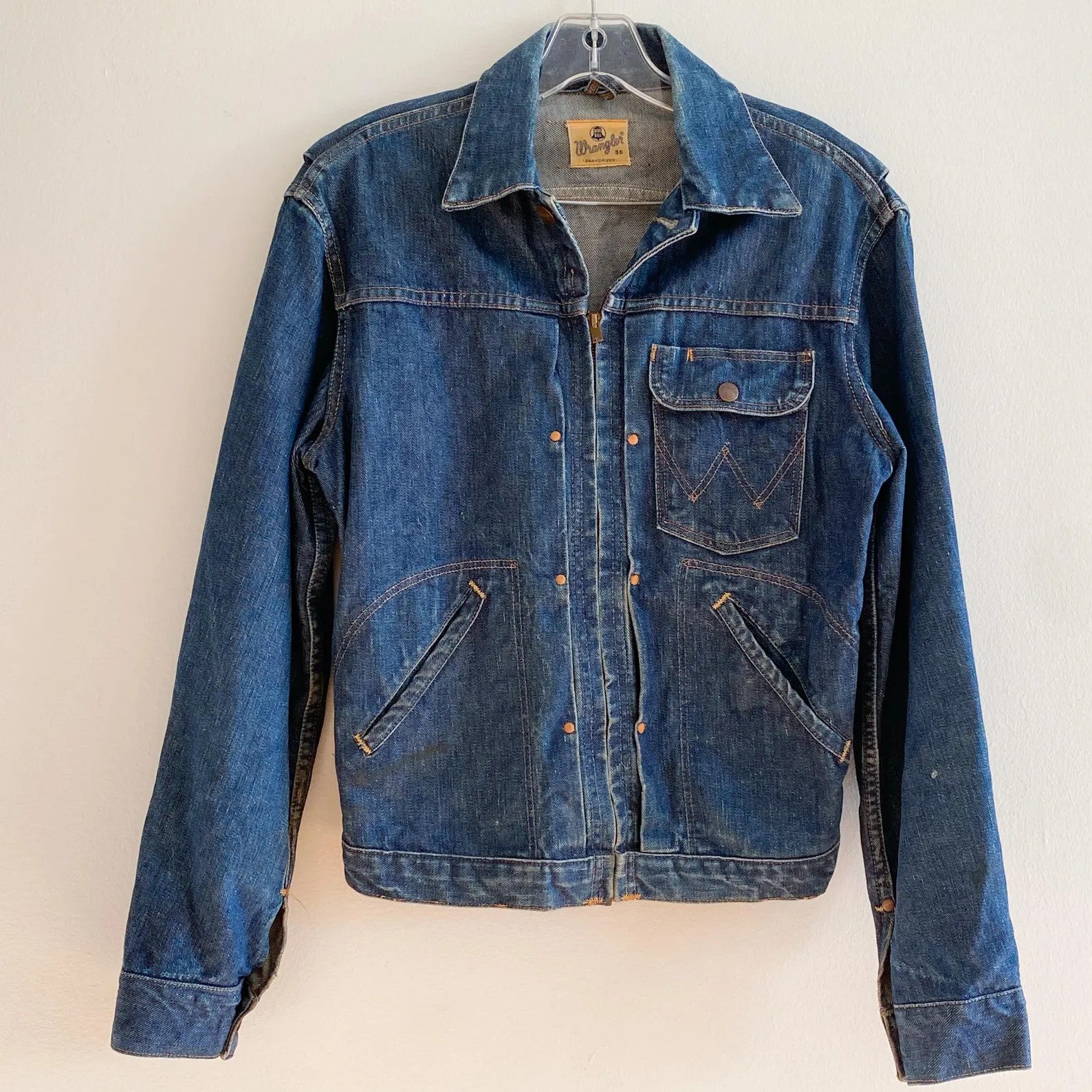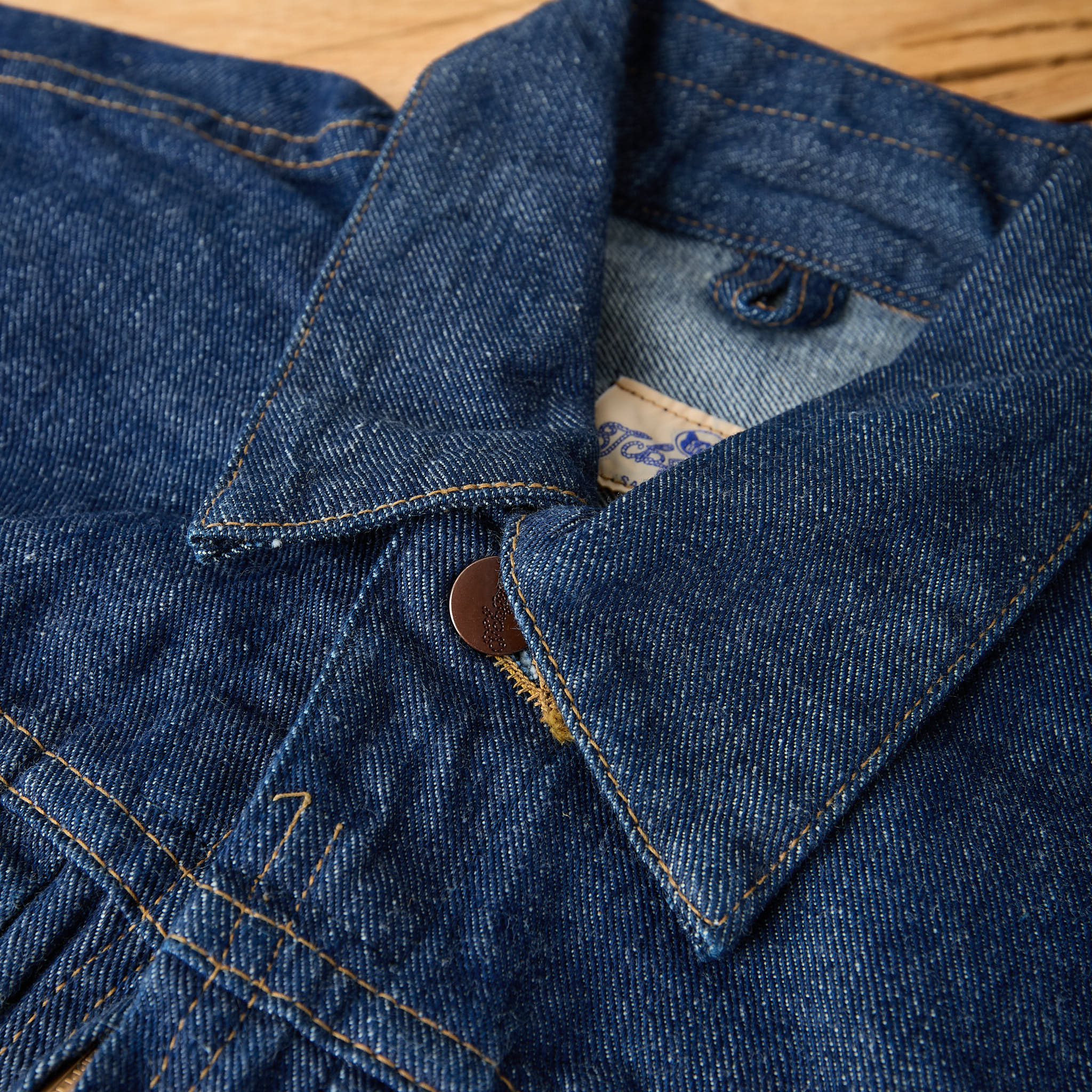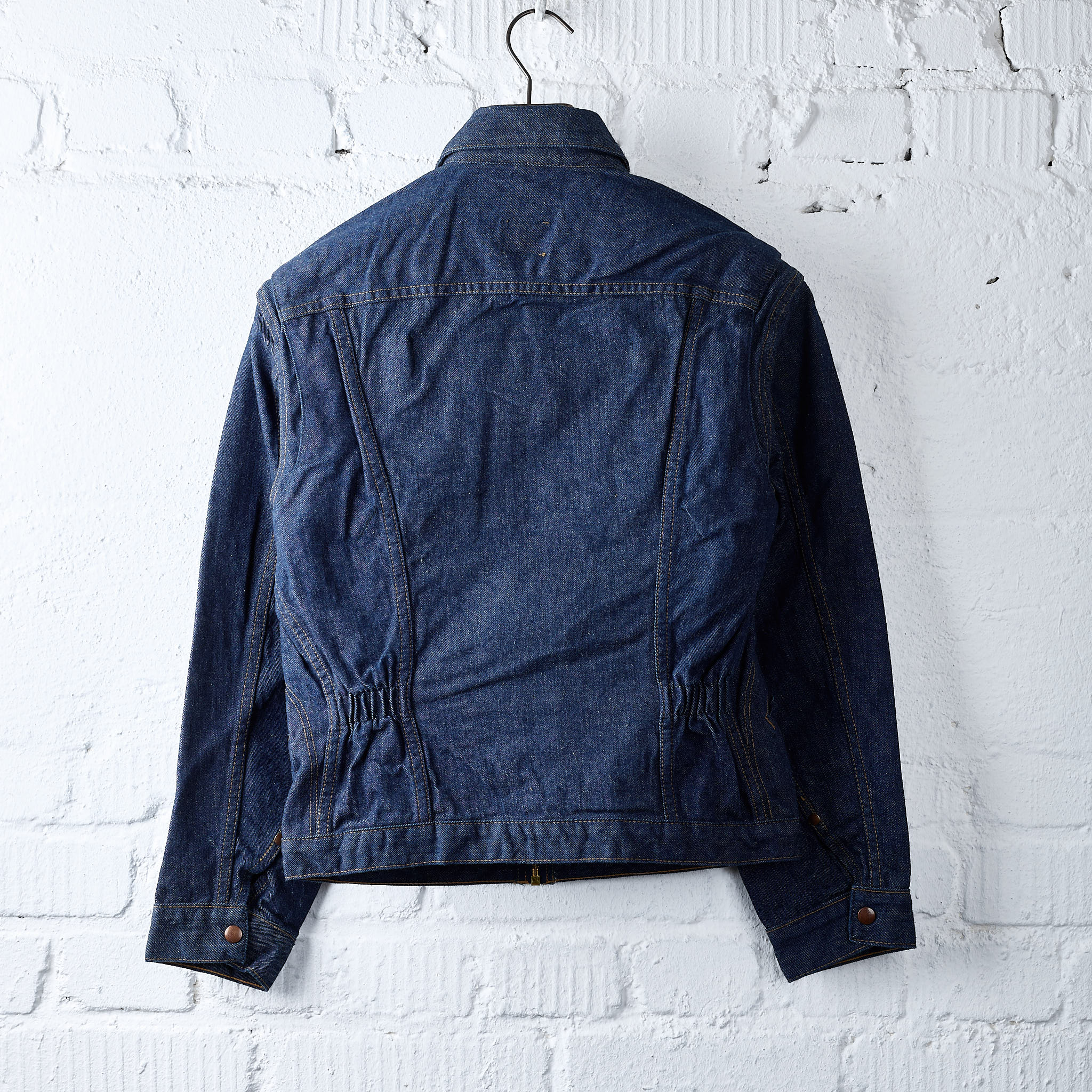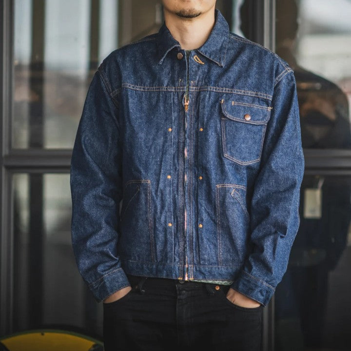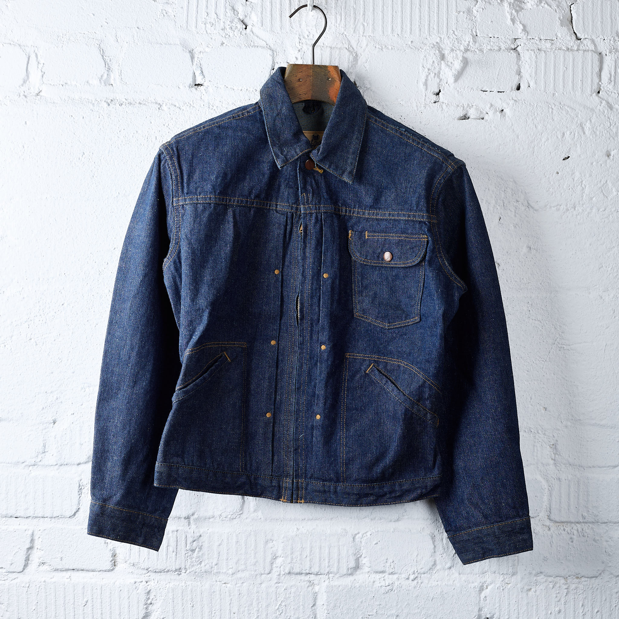 das wch rancher'z jacket ist tcbs interpretation einer wrangler jeansjacke mit reißverschluss und gerafftem gummizug am rücken aus den 1950er jahren. die jacke ist in japan aus einem 11.6oz left hand twill gefertigt, der sich deutlich von dem right hand twill unterscheidet, den levi’s und lee zu jener zeit verwendeten. der denim ist weicher, hat eine offenere webart und neigt zudem zu einem etwas "unschärferen“ fading als right hand twill.