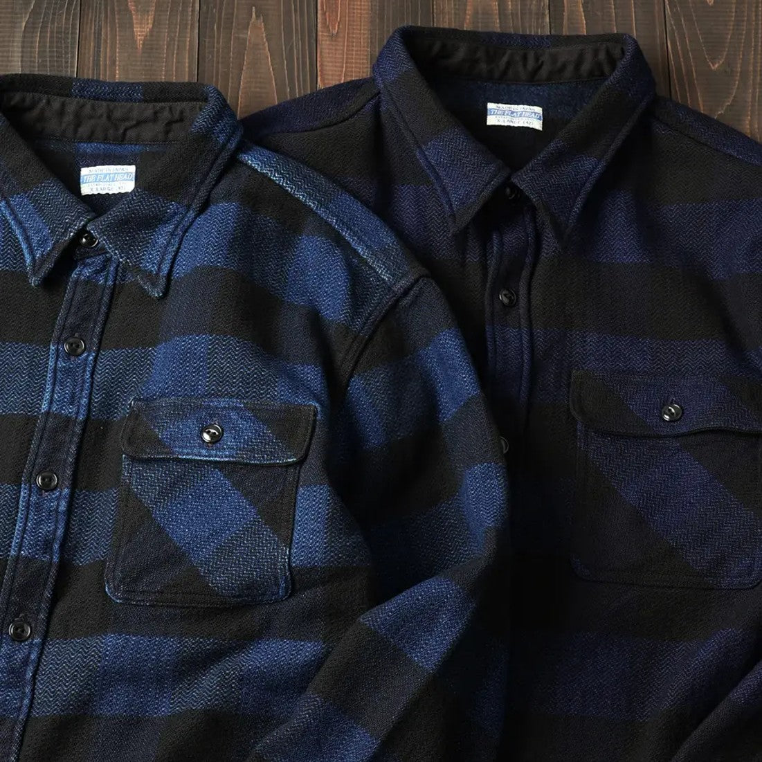 the flat head | fn-snr-101lsp indigo block check flannel work shirt