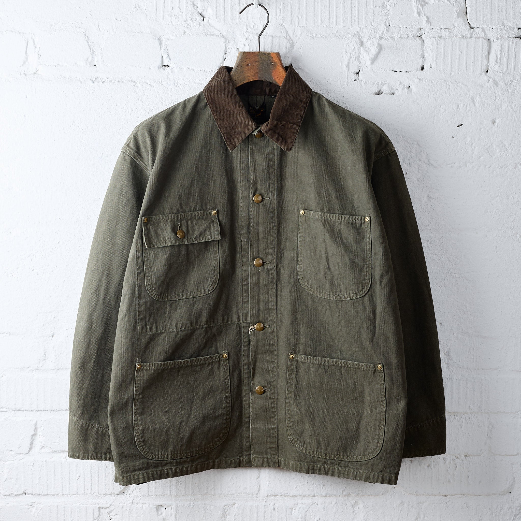 das orslow coverall jacket verbindet gekonnt das klassische design von workwear der 1950er jahre mit einem neuen eleganten, luxuriösen touch. die jacke ist in japan aus hochwertigem baumwollstoff gefertigt, hat vier fronttaschen, einen kontrastierenden cordkragen sowie ein gewaschenes, vintage-ähnliches finish.