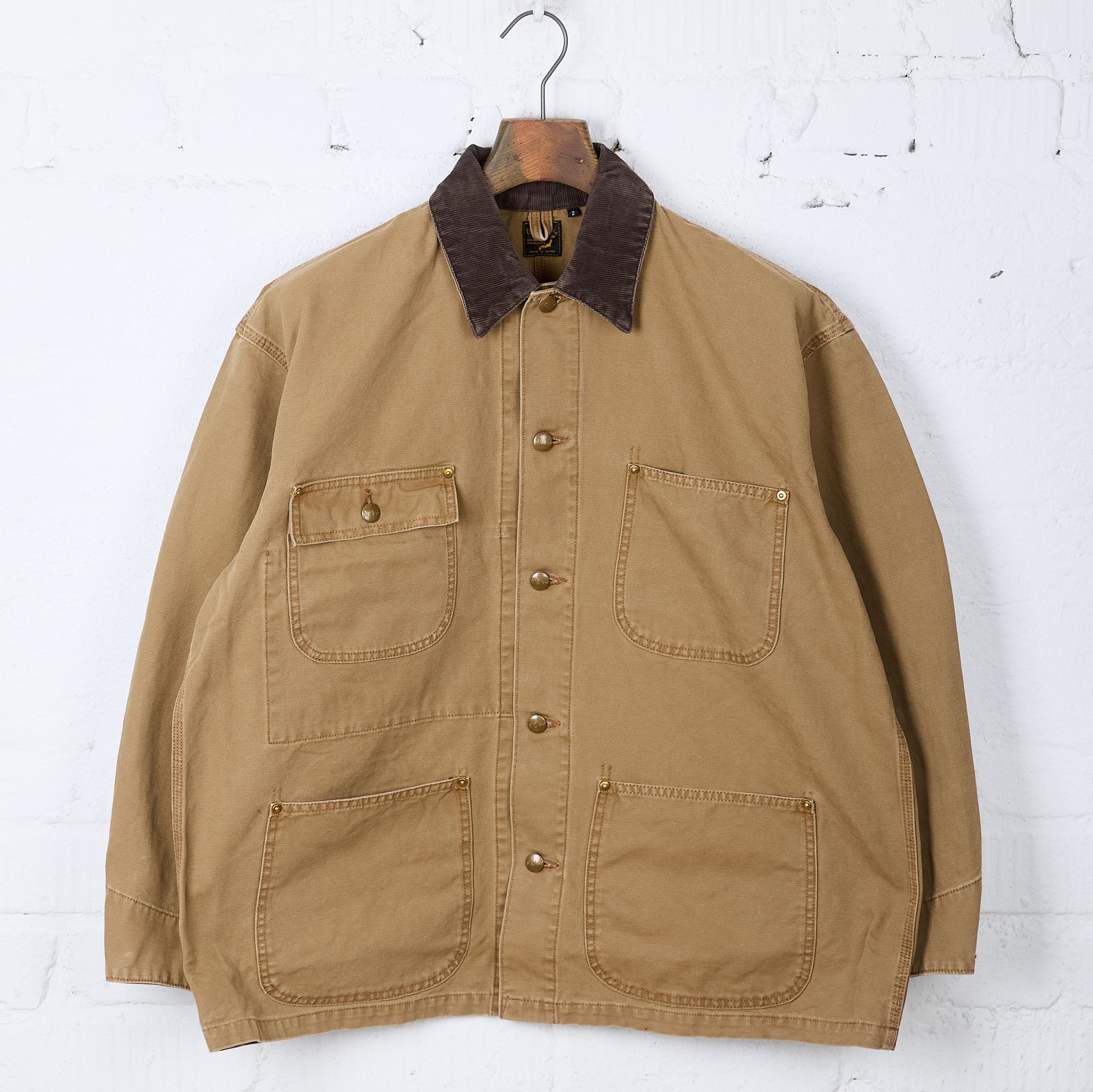 das orslow coverall jacket verbindet gekonnt das klassische design von workwear der 1950er jahre mit einem neuen eleganten, luxuriösen touch. die jacke ist in japan aus hochwertigem baumwollstoff gefertigt, hat vier fronttaschen, einen kontrastierenden cordkragen sowie ein gewaschenes, vintage-ähnliches finish.