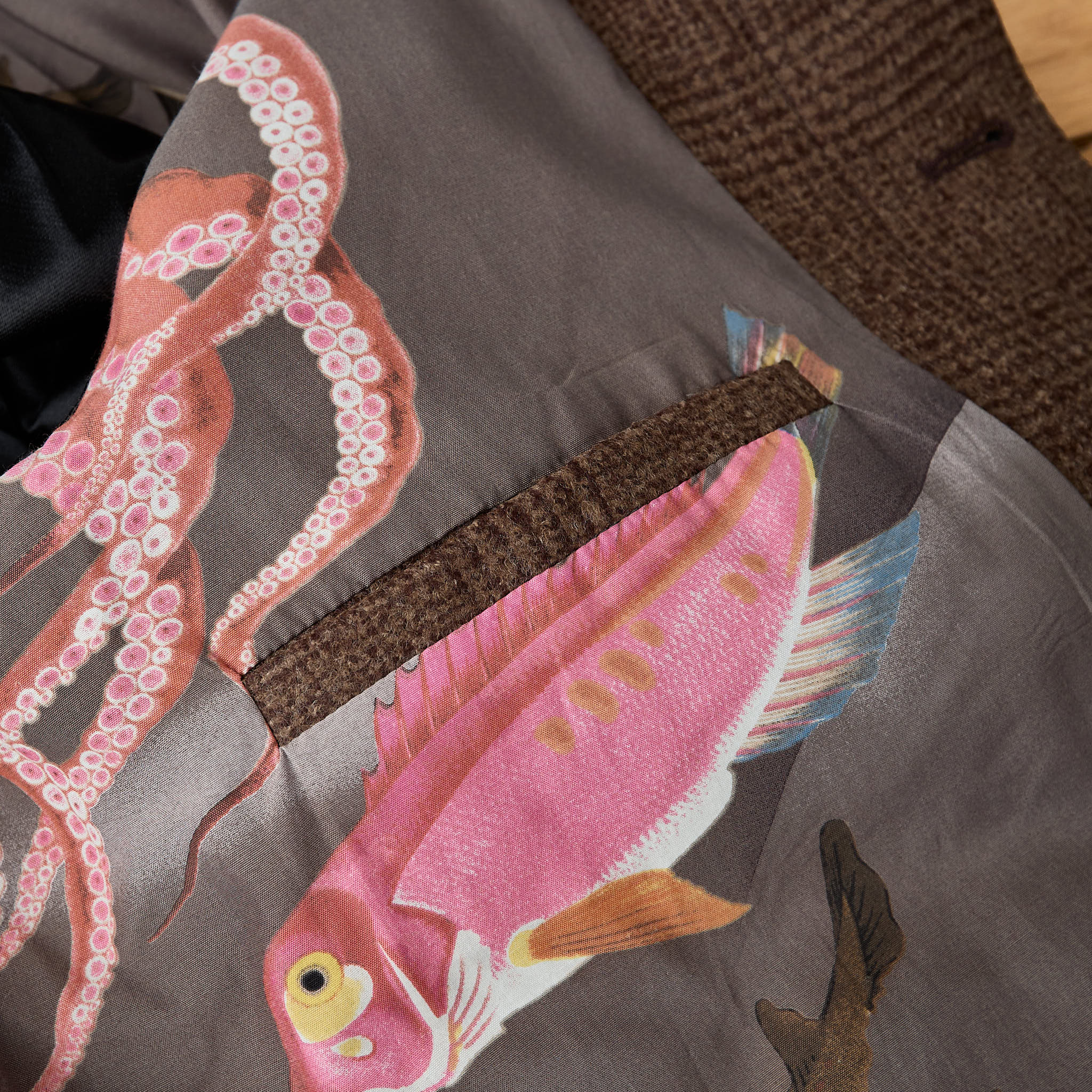 der elegant-lässige bouclé-plaid-mantel von outclass ist in kanada aus hochwertigem, italienischem wollstoff mit klassischem karomuster gefertigt. der schnitt ist leicht tailliert und die edlen details wie der kragen aus echtem lammfell, die doppelten leistentaschen mit lederbesatz sowie knöpfe aus steinnuss unterstreichen die liebe zum detail. innen überrascht ein weiches baumwoll-rayon-futter aus japan - verziert mit einem einzigartigen fischmotiv.