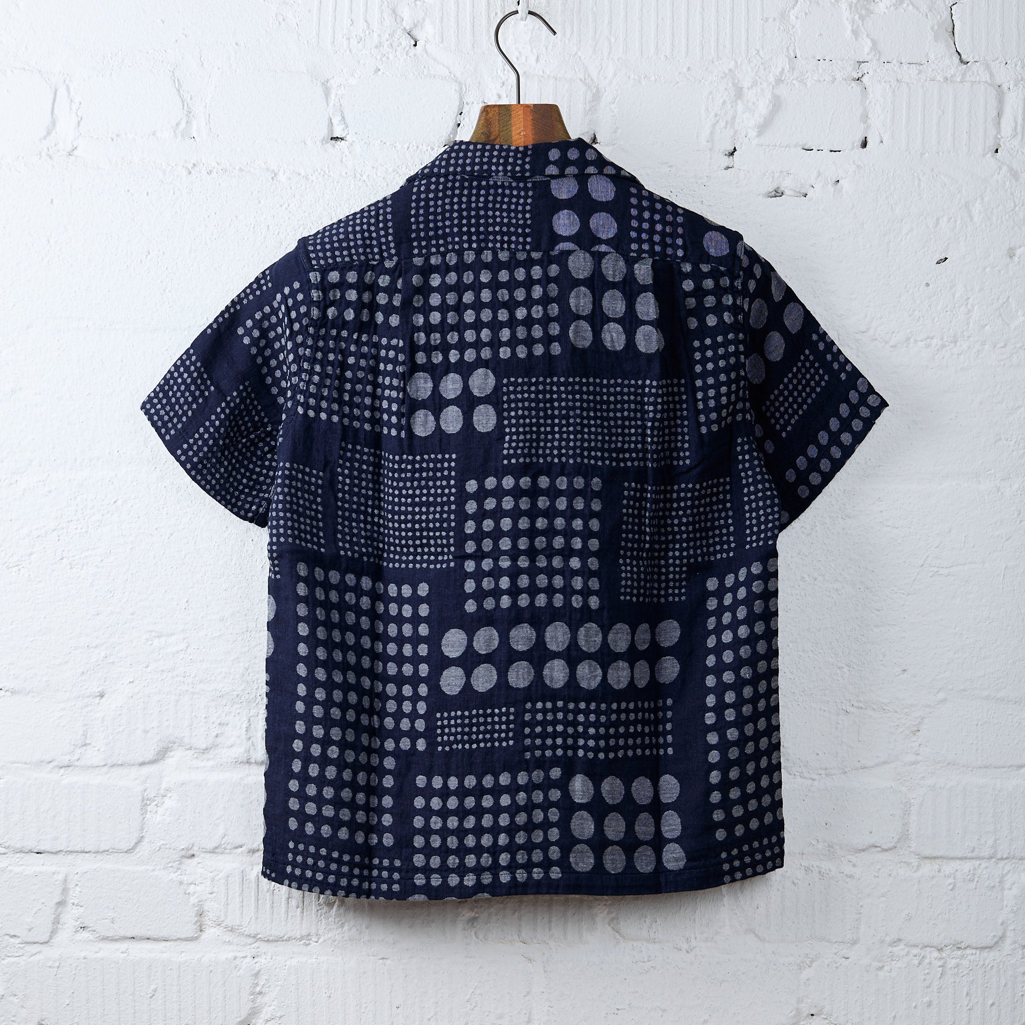 pure blue japan | ss-2232-1 jacquard open collar shirt - random dots