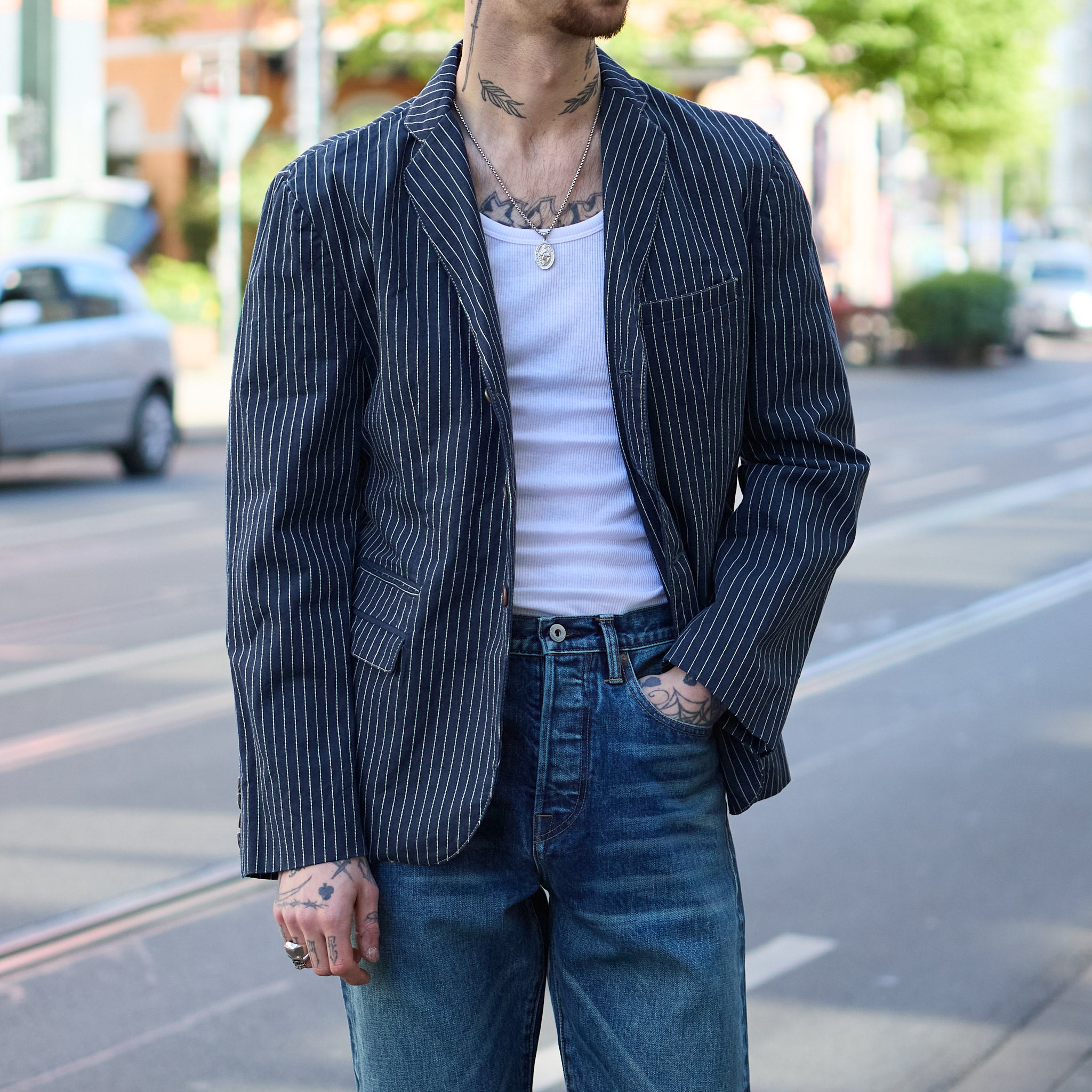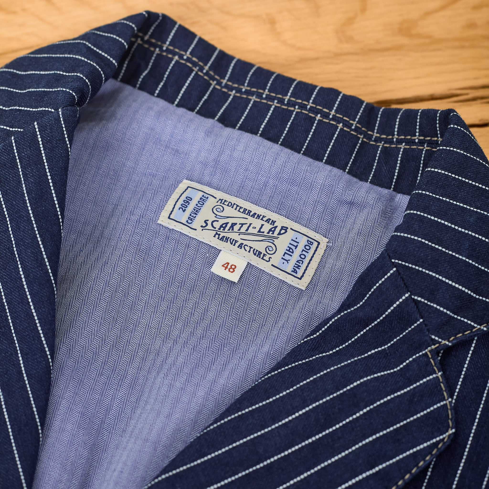 tolles sakko von scarti lab aus italien. die jacke mit fallendem revers ist an der rückenpasse, der brust und an den ärmeln gefüttert, hat manschetten mit vier knöpfen und eine