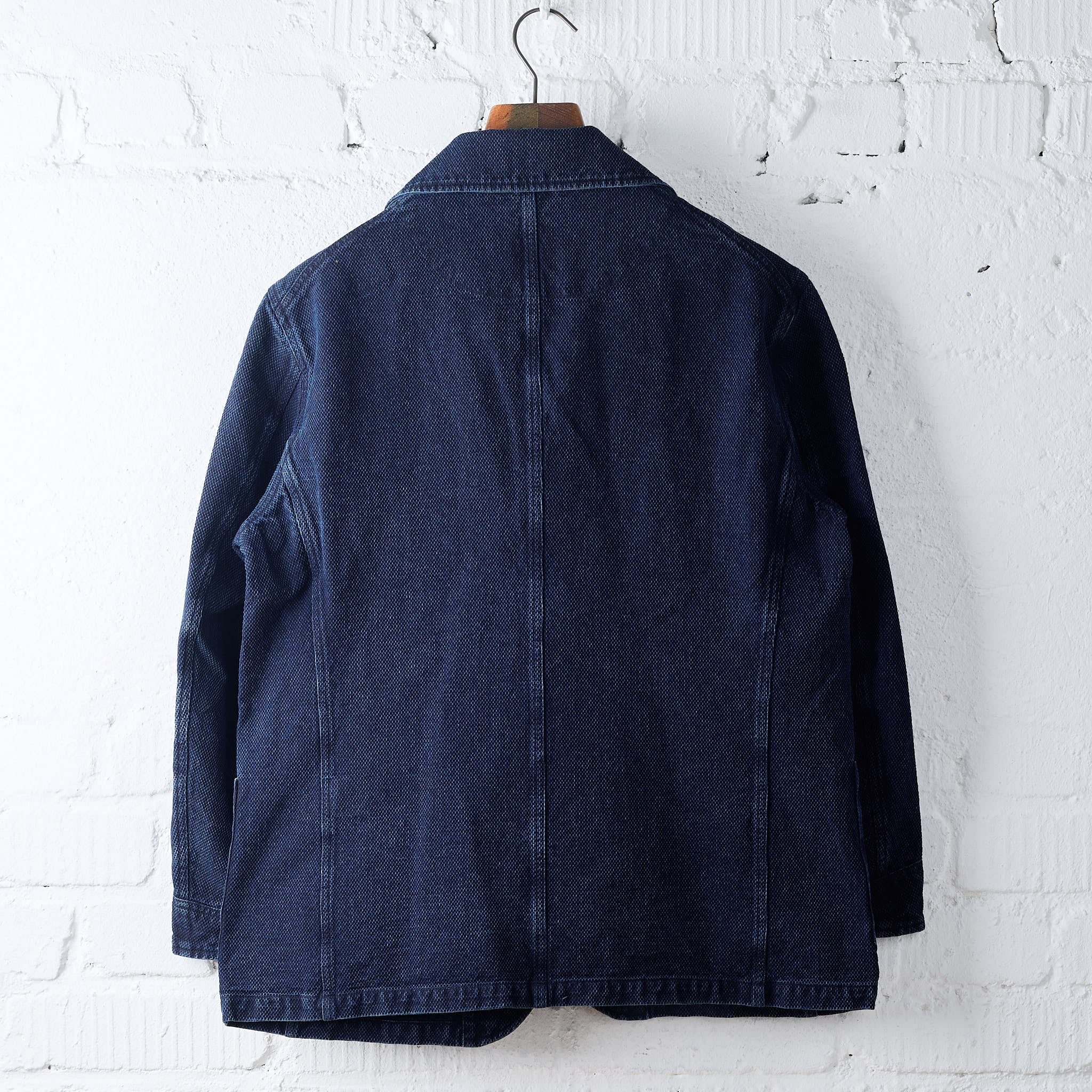 das birmingham jacket ist ein echter soundman-klassiker und kommt in jeder kollektion vor. die jacke basiert auf der arbeitsuniform britischer fabrikarbeiter aus der ersten hälfte des 20. jahrhunderts. die jacke hat zwei große aufgesetzte seitentaschen, eine kleine tasche mit reißverschluss und eine große brusttasche mit stiftfach. diese version des birmingham jackets ist aus einem ausgewaschenen, indigo-gefärbten sashiko-stoff gefertigt und entwickelt mit zunehmender trageauer eine wunderschöne patina.
