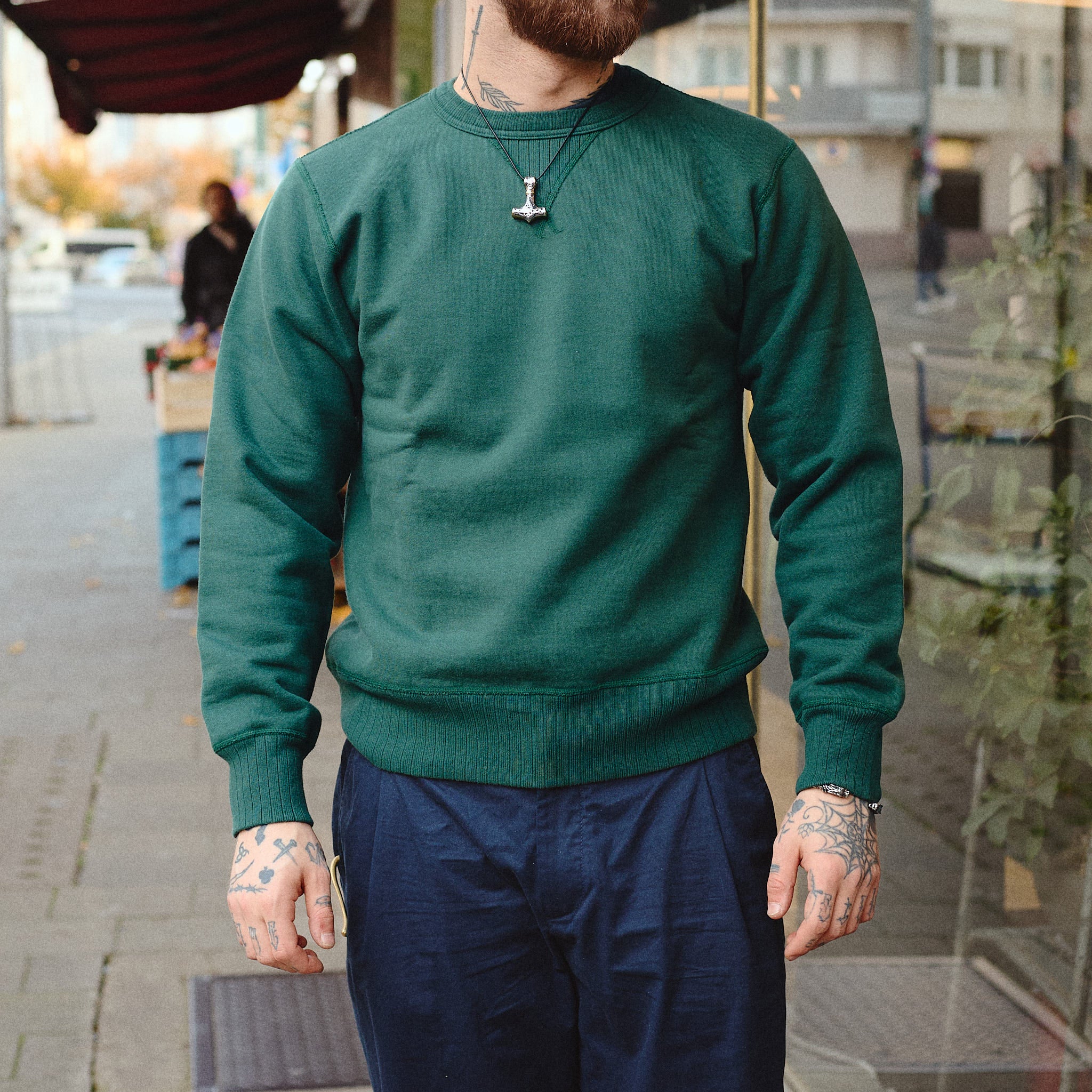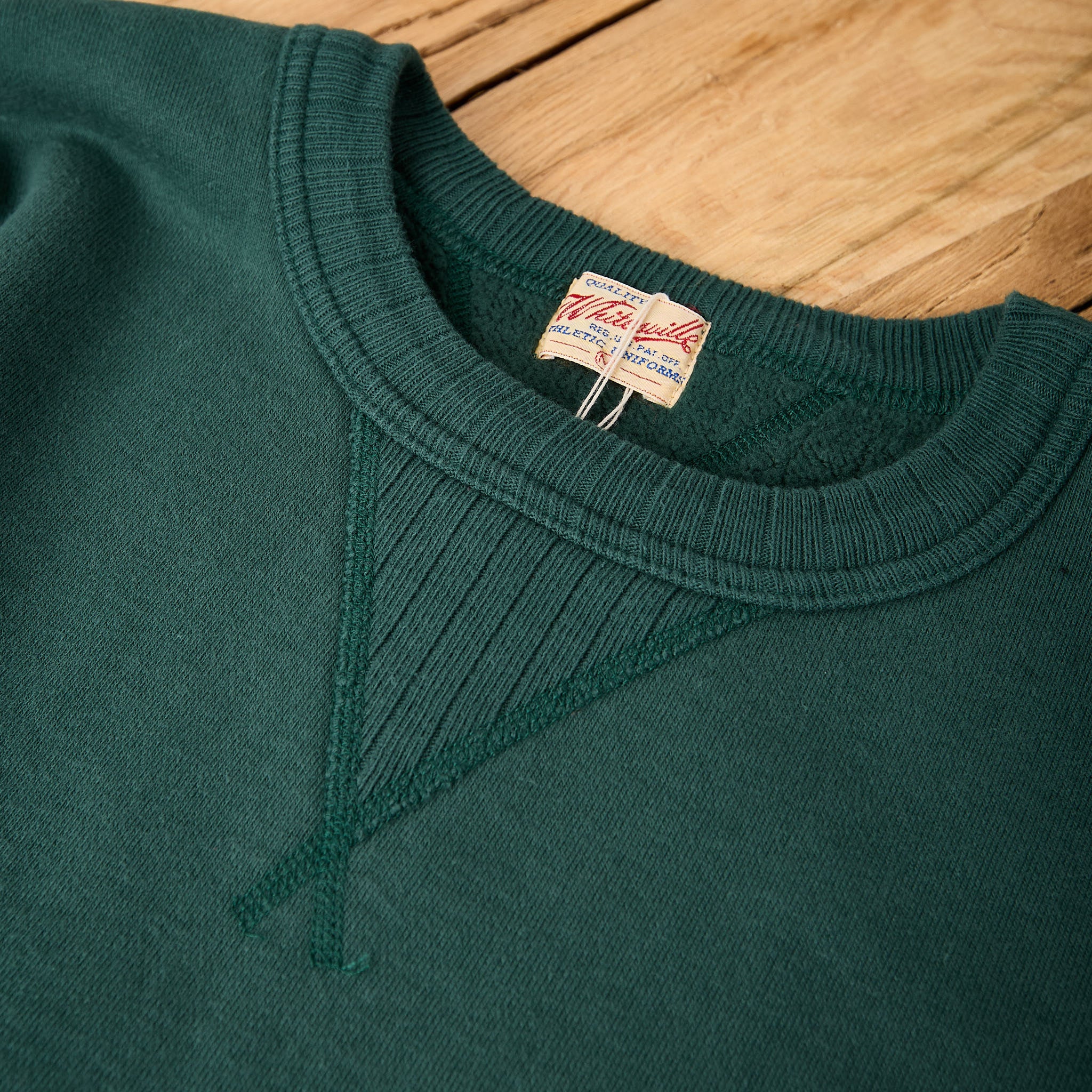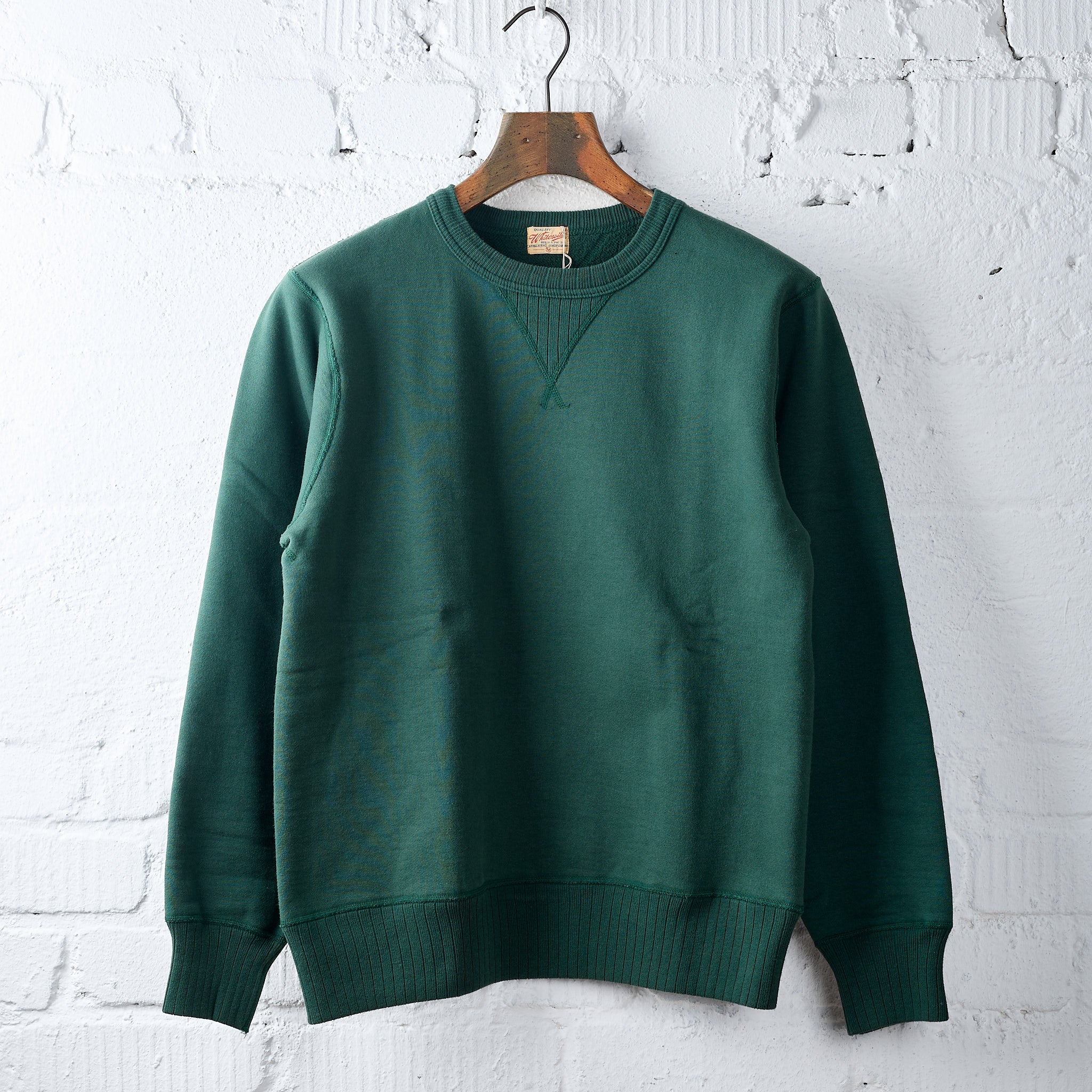 das heavy sweatshirt von whitesville aus schwerem baumwolljersey ist inspiriert von klassischer, amerikanischer sportswear und ist in wakayama auf alten loopwheelern aus den 1920er jahren gefertigt. durch die arbeits- und zeitintensive herstellung - ca. 1 meter pro stunde - entsteht ein einzigartiger stoff, der außergewöhnlich weich, langlebig und formstabil ist. das sweatshirt fällt relativ groß aus. wer es lieber körperbetonter mag, sollte lieber eine nummer kleiner als sonst wählen.