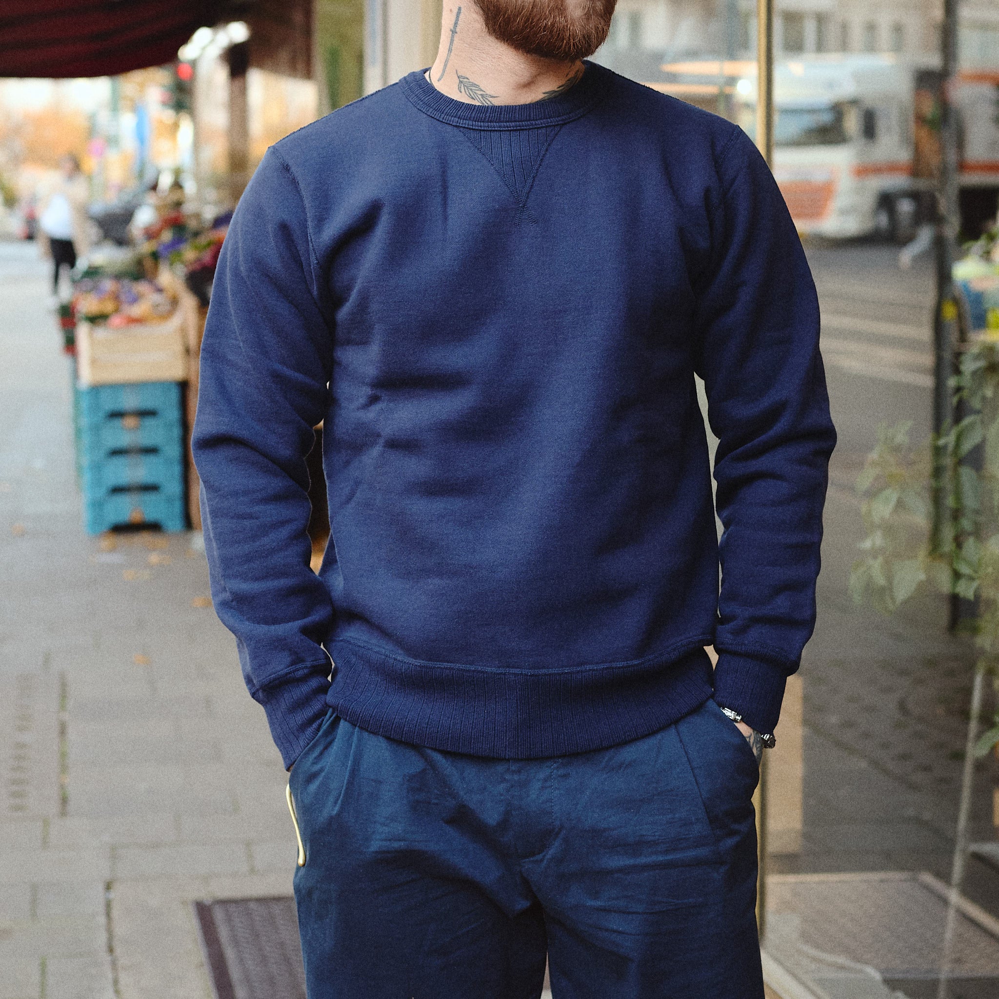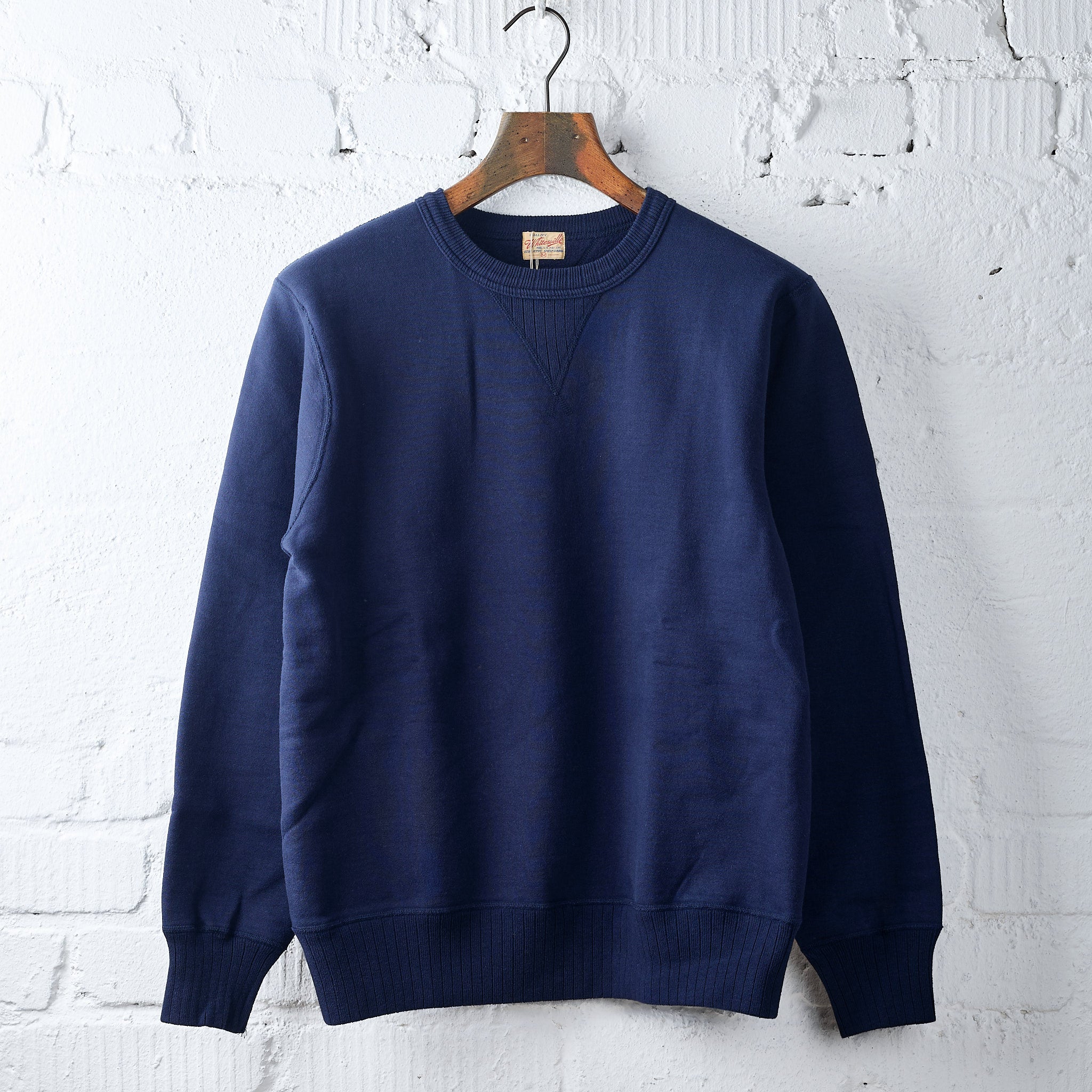 das heavy sweatshirt von whitesville aus schwerem baumwolljersey ist inspiriert von klassischer, amerikanischer sportswear und ist in wakayama auf alten loopwheelern aus den 1920er jahren gefertigt. durch die arbeits- und zeitintensive herstellung - ca. 1 meter pro stunde - entsteht ein einzigartiger stoff, der außergewöhnlich weich, langlebig und formstabil ist. das sweatshirt fällt relativ groß aus. wer es lieber körperbetonter mag, sollte lieber eine nummer kleiner als sonst wählen.