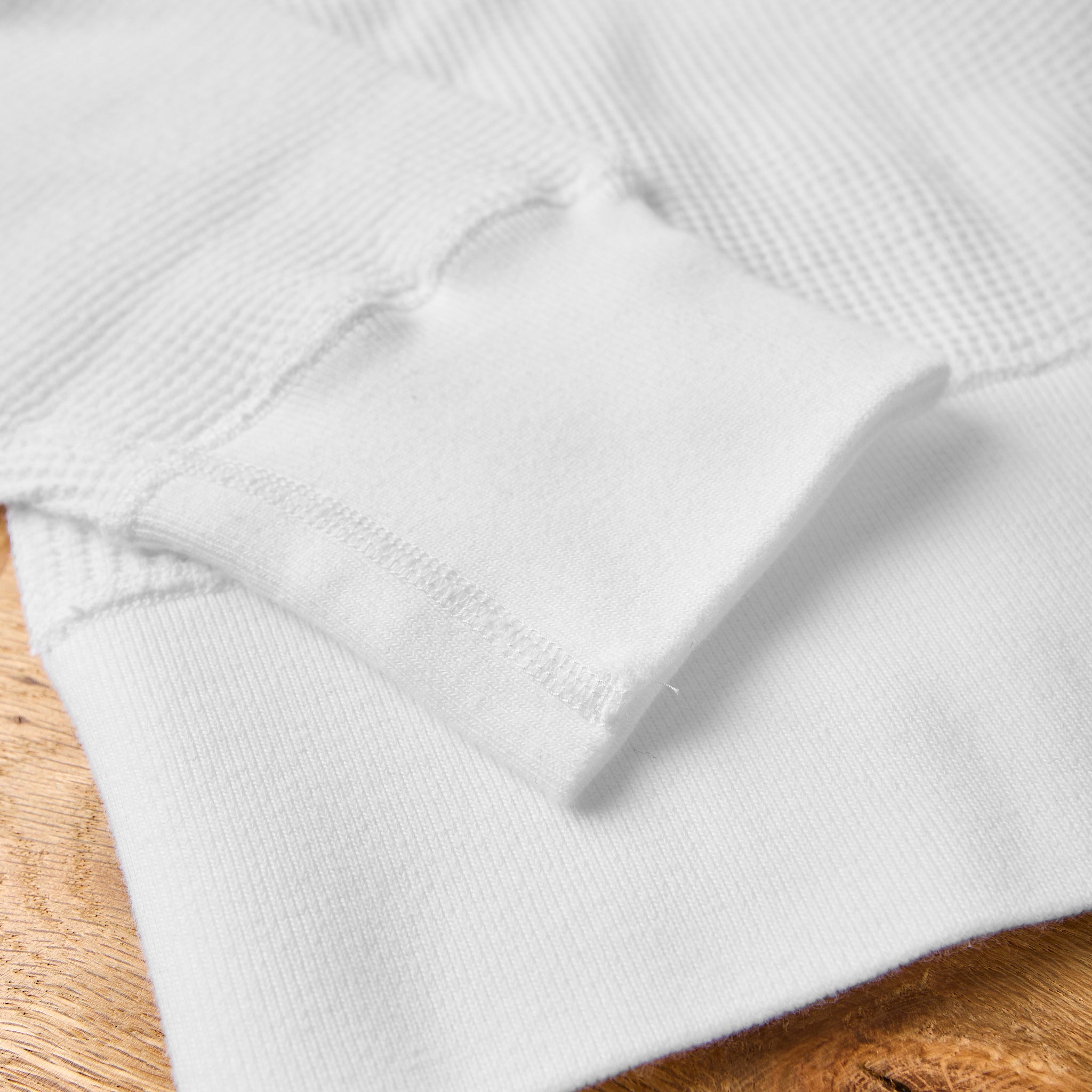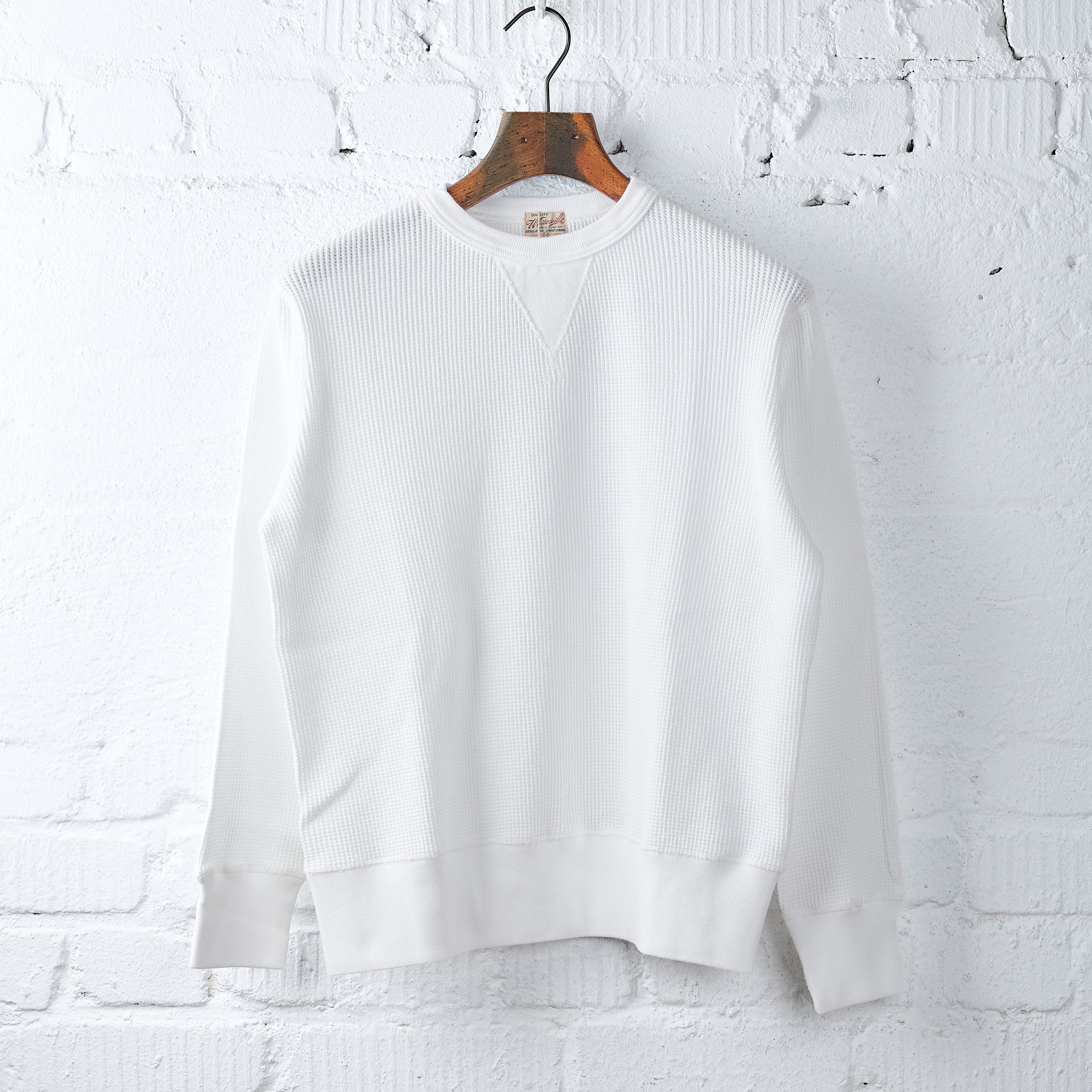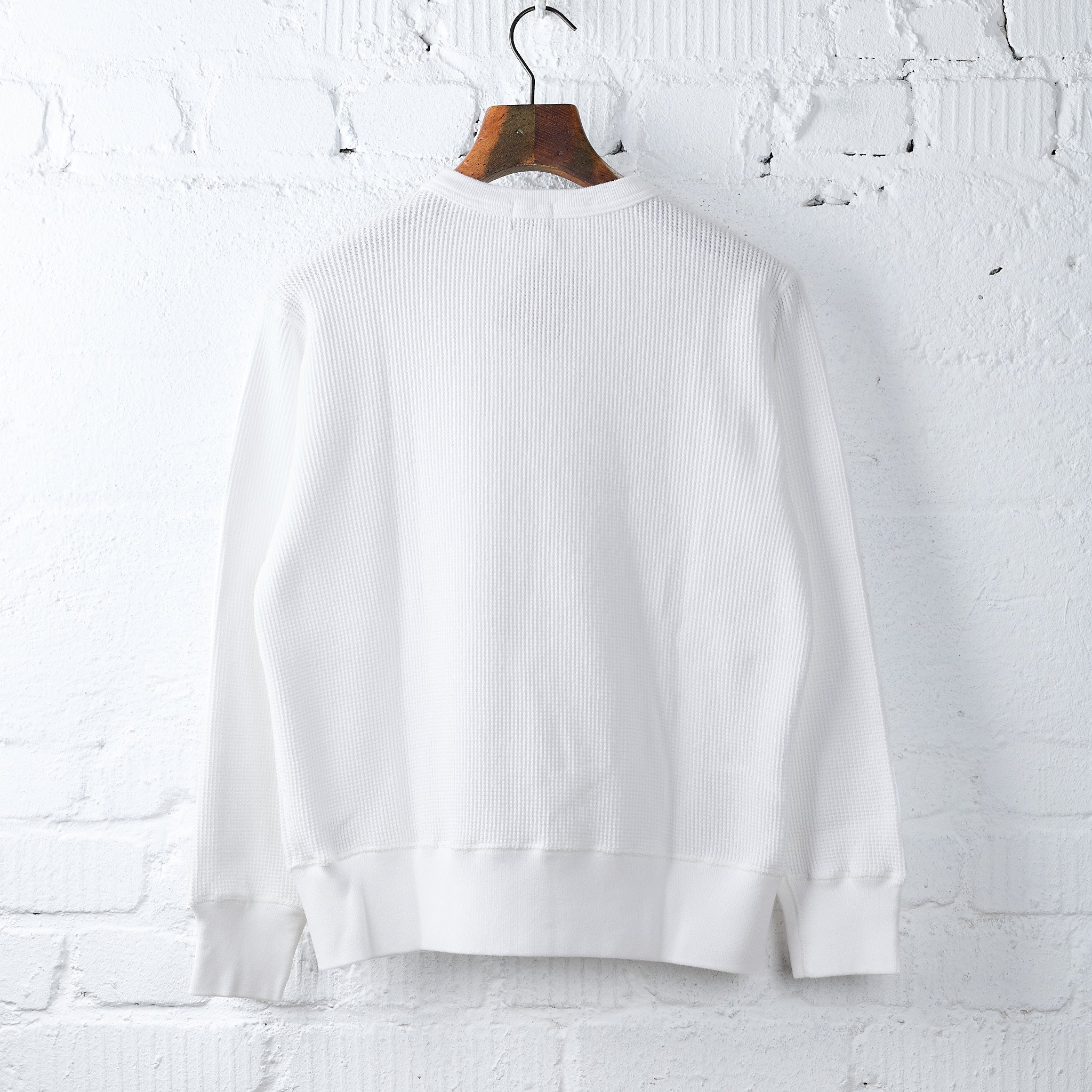 das wv69643 longsleeve thermal shirt von whitesville basiert auf vintage thermo-shirts des us militärs und ist in japan aus 100% baumwoll-waffelstrick gefertigt. das longsleeve ist eher locker geschnitten und lässt sich auch als eigenständiges shirt gut tragen.
