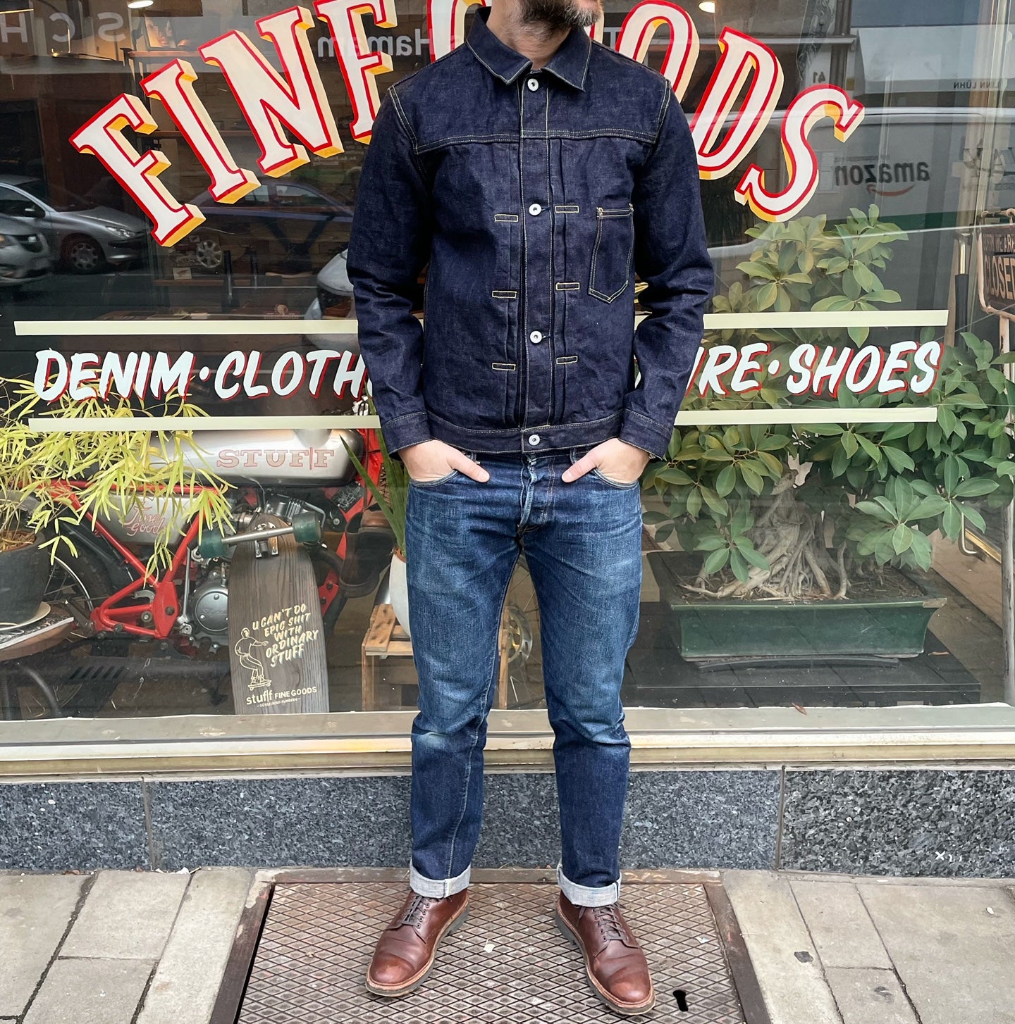 die w900-j ist ues‘ moderne interpretation einer original vintage levi's s501xx (type 1) jacke aus der zeit des zweiten weltkriegs. die schmal geschnittene jacke hat viele tolle originaldetails, ist in japan aus ues‘ exklusivem 14.9oz schwerem selvedge denim gefertigt und entwickelt mit der zeit eine einzigartige patina.