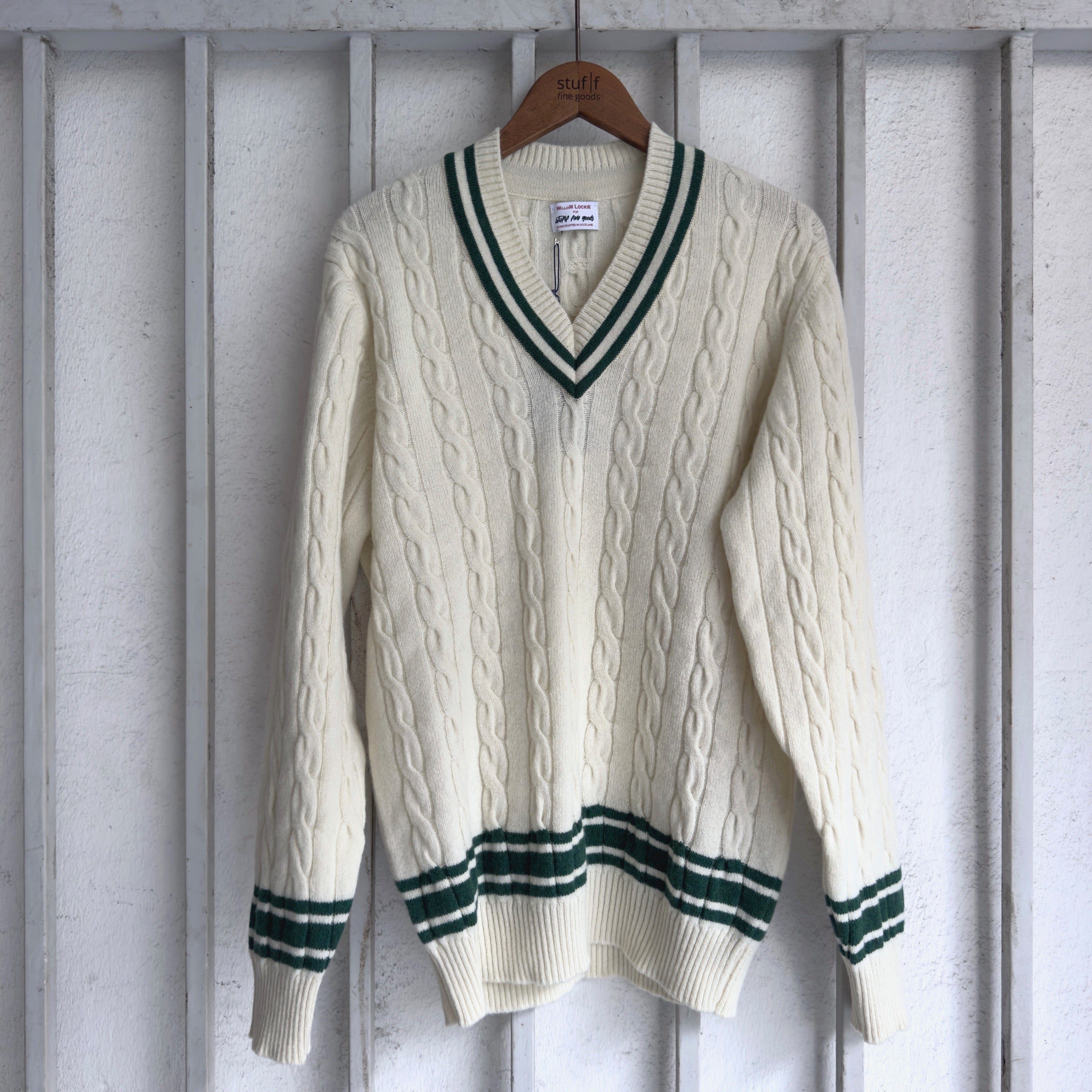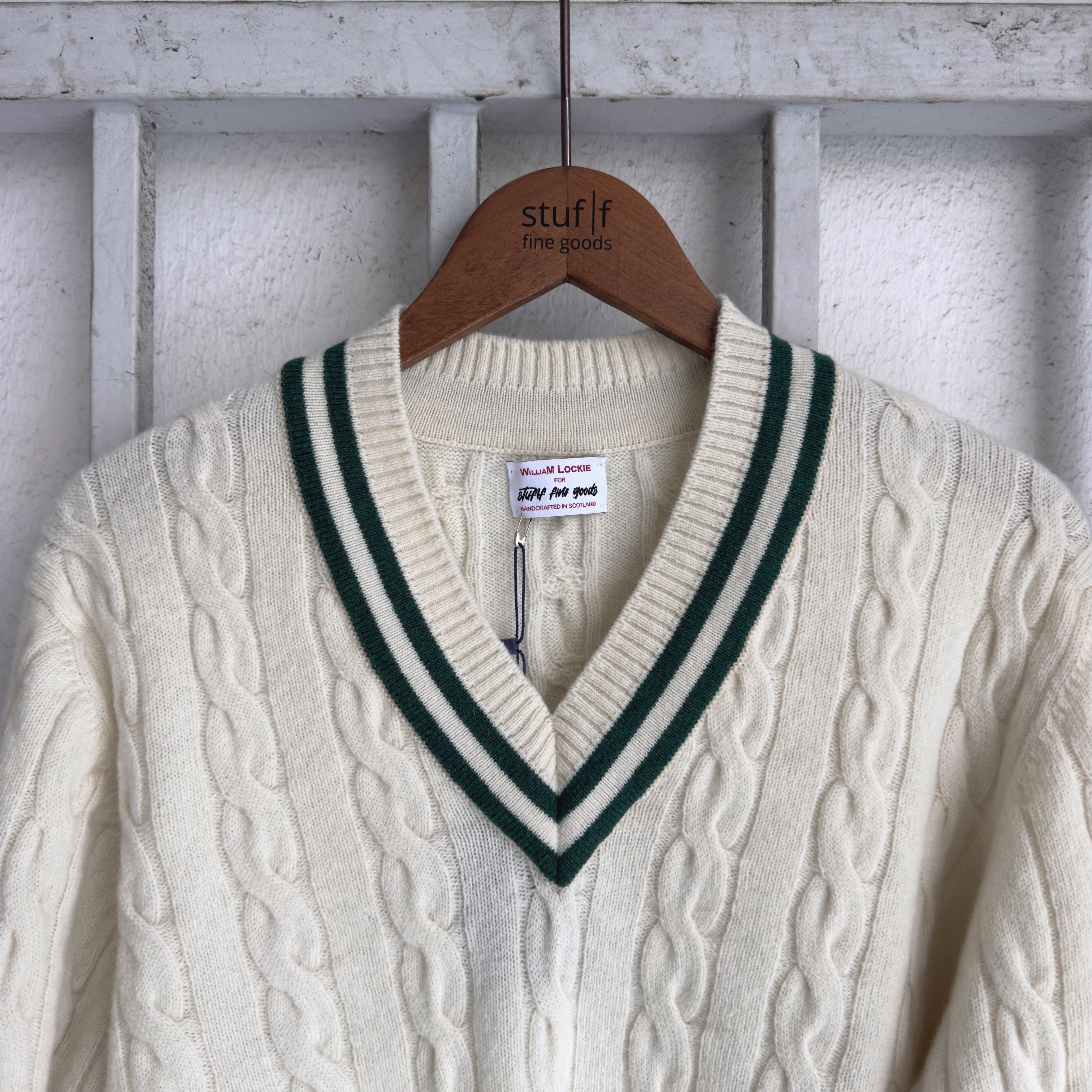 william lockie x stuf|f | super geelong cricket cable knit sweater - ecru/cossack green
