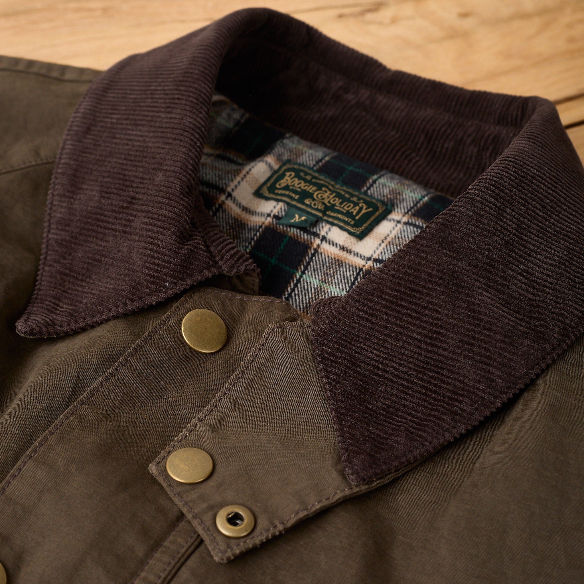 the berkshire field coat by boogie holiday is inspired by classic british outerwear - originally designed for hunting, horse riding, and other outdoor activities. made from a high-quality cotton blend fabric and lined with soft cotton flannel, it offers optimal comfort and pleasant warmth. an internal drawstring allows for versatile styling, making it a refined option that pairs seamlessly with both casual and formal wear.