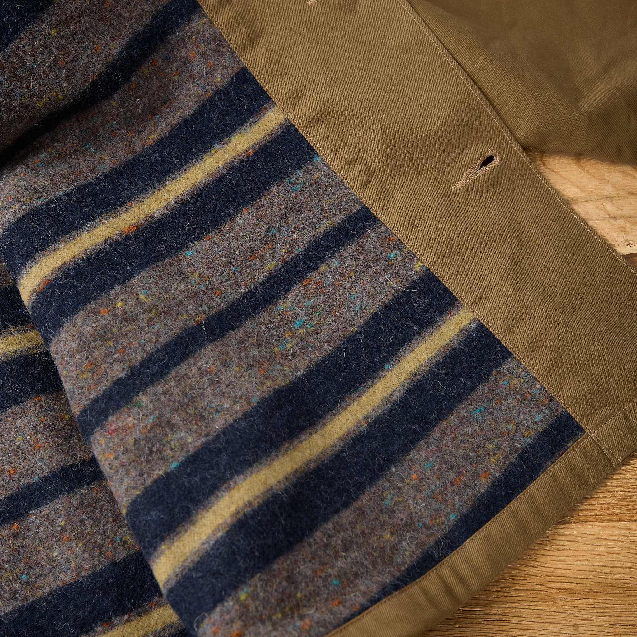 the br15770 by buzz rickson's is based on the denim worker jacket used by the u.s. army from 1910 to 1940. the jacket was manufactured in japan from an extremely robust west point twill and impresses with its simple yet timeless design. in addition, the jacket is lined with a vintage troy blanket, which not only keeps you warm but also gives the jacket a special character. a timeless jacket that becomes more beautiful with every wear.