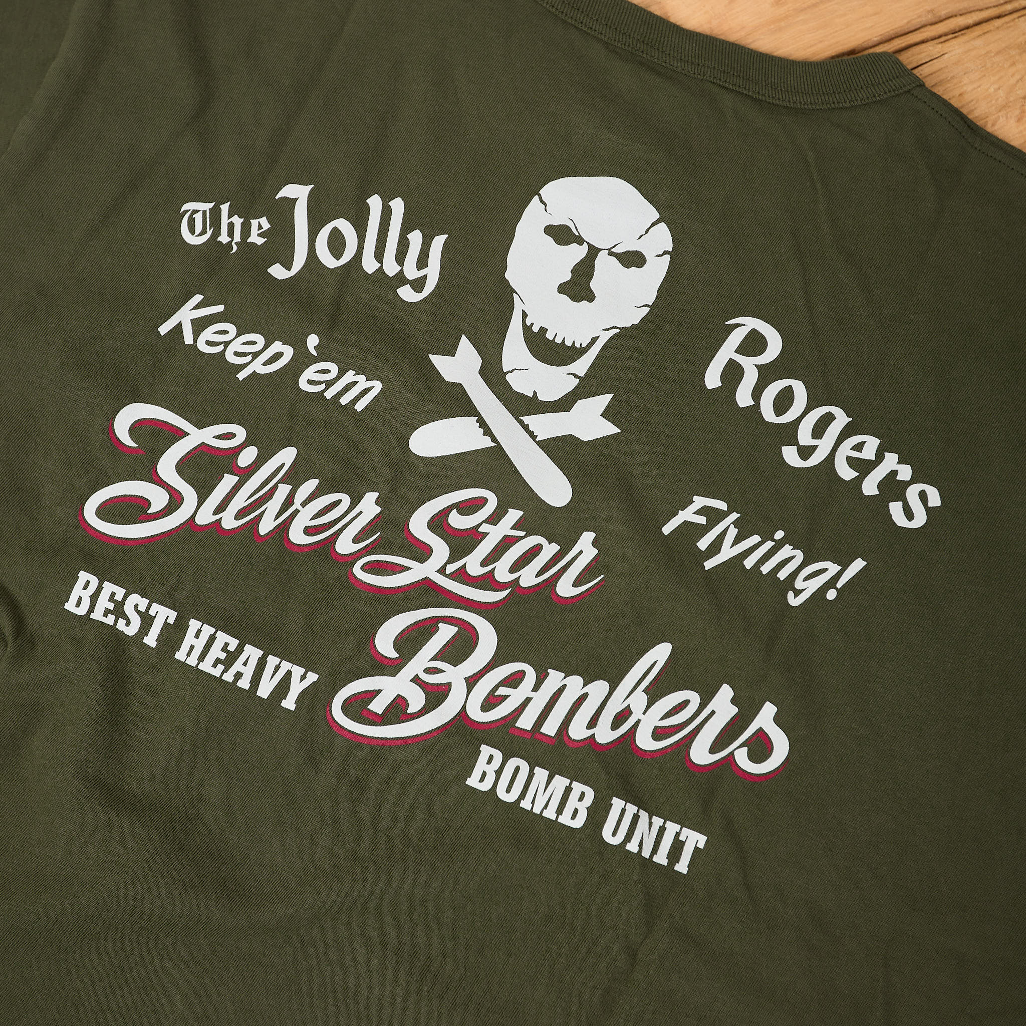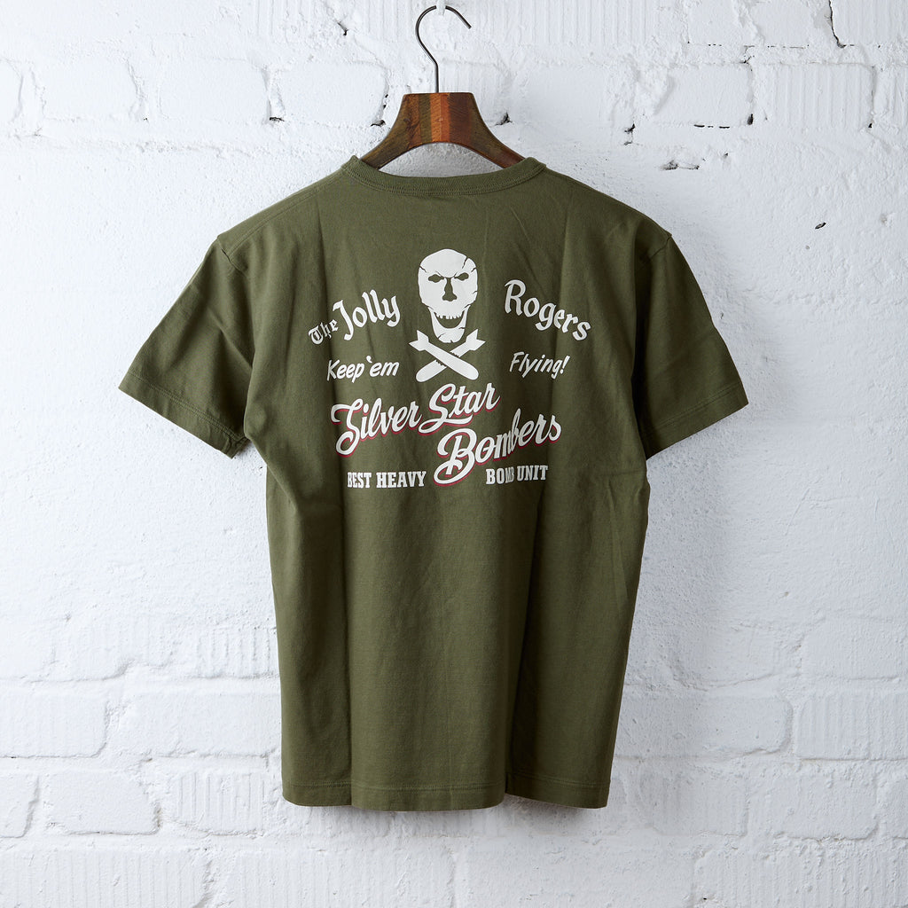 buzz rickson's | br79577 government issue t-shirt 90th bomb. group jolly rogers - olive
