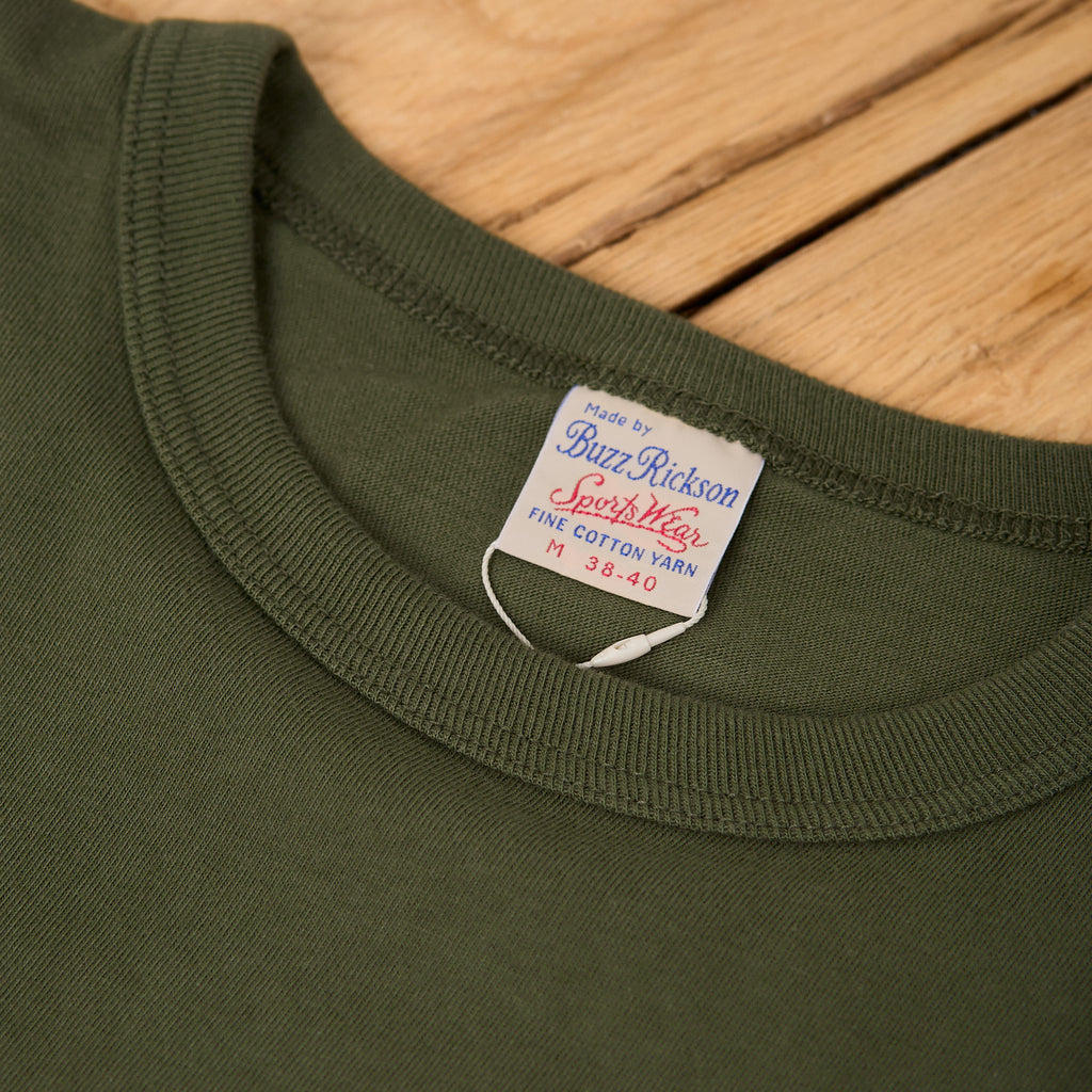the vintage-inspired tee with military print by buzz rickson's is made in japan from a soft medium-weight cotton jersey. compared to the previous models made in the usa, the t-shirt is slightly larger / true to size.