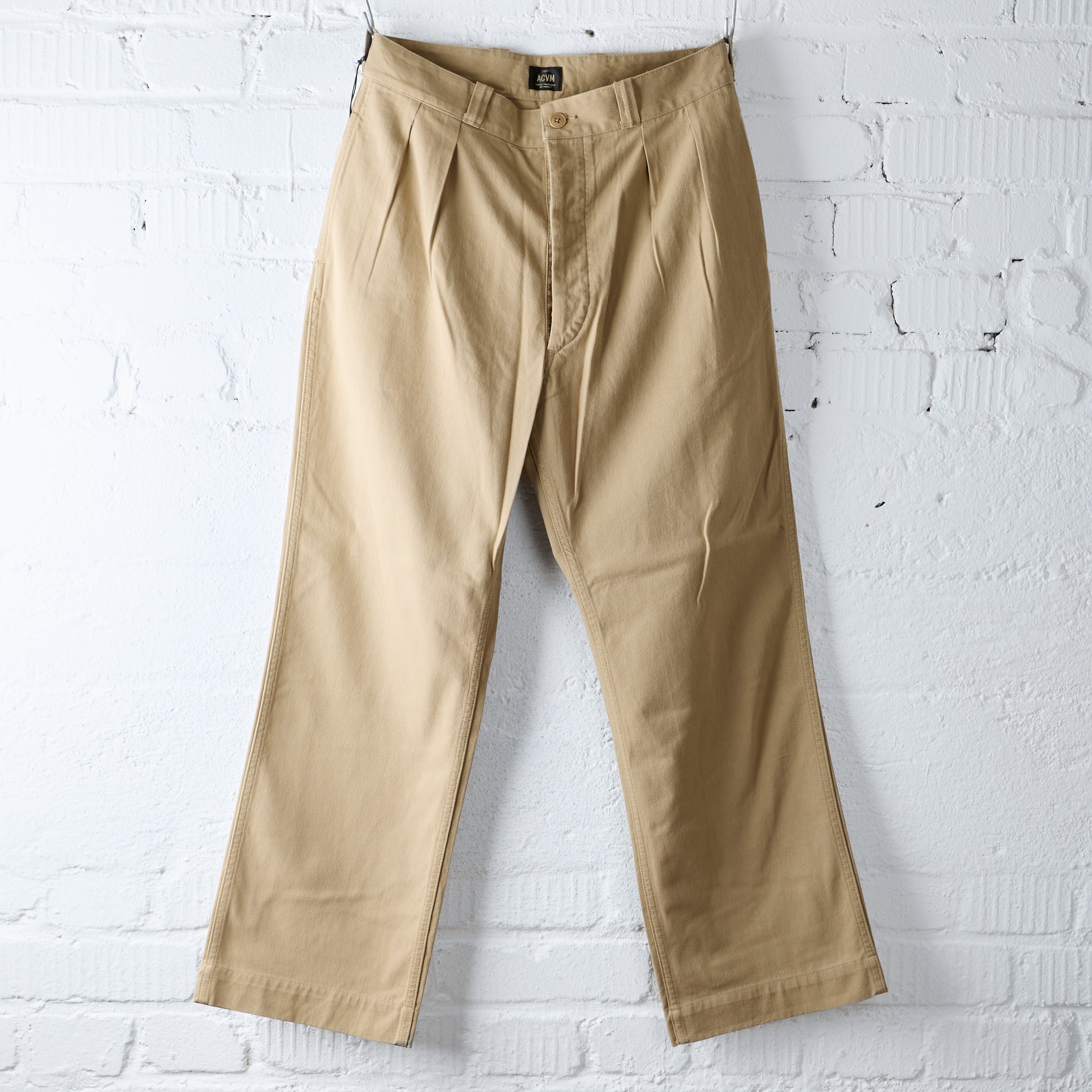 addict clothes | acv-tr04stc double-pleated cotton army wide trousers - beige