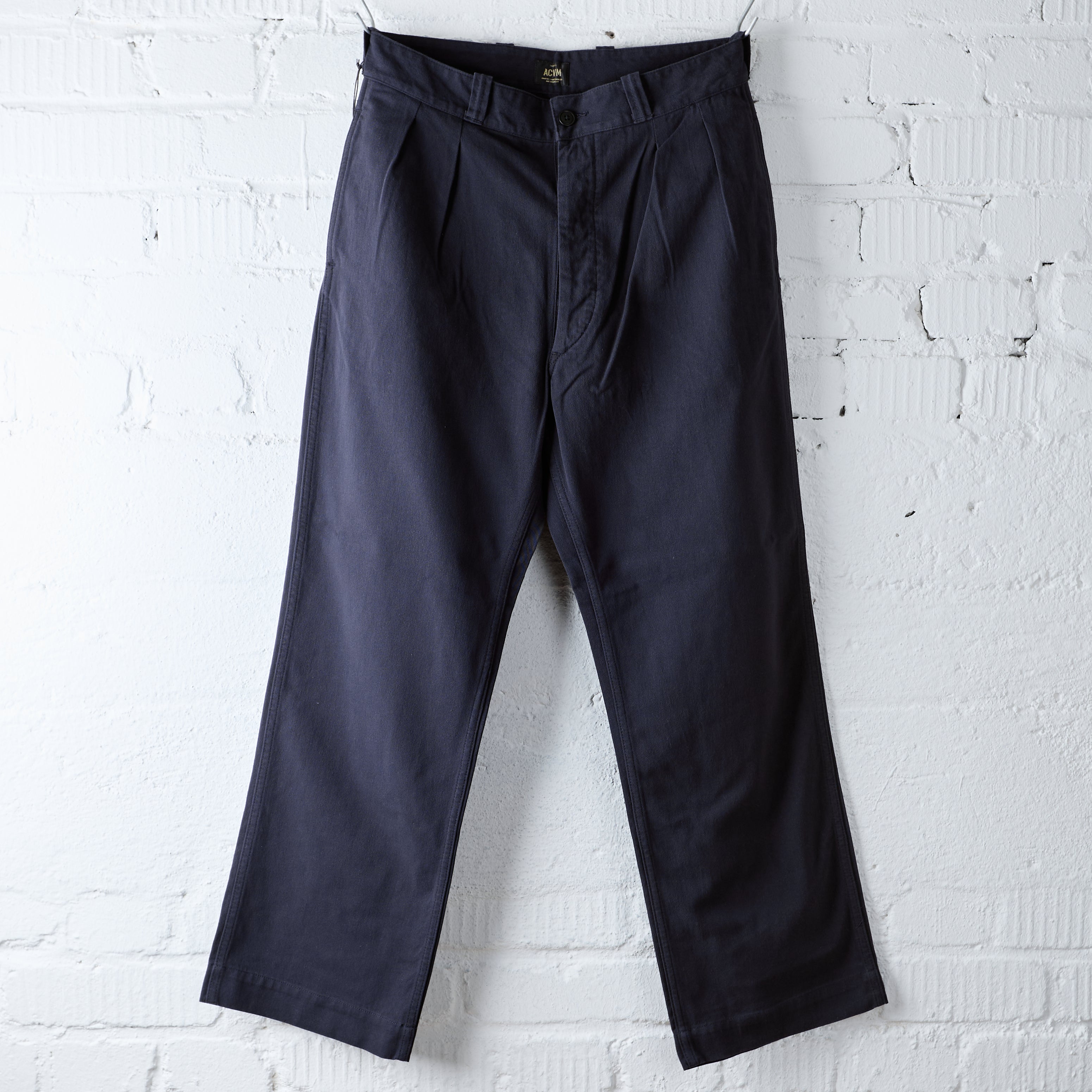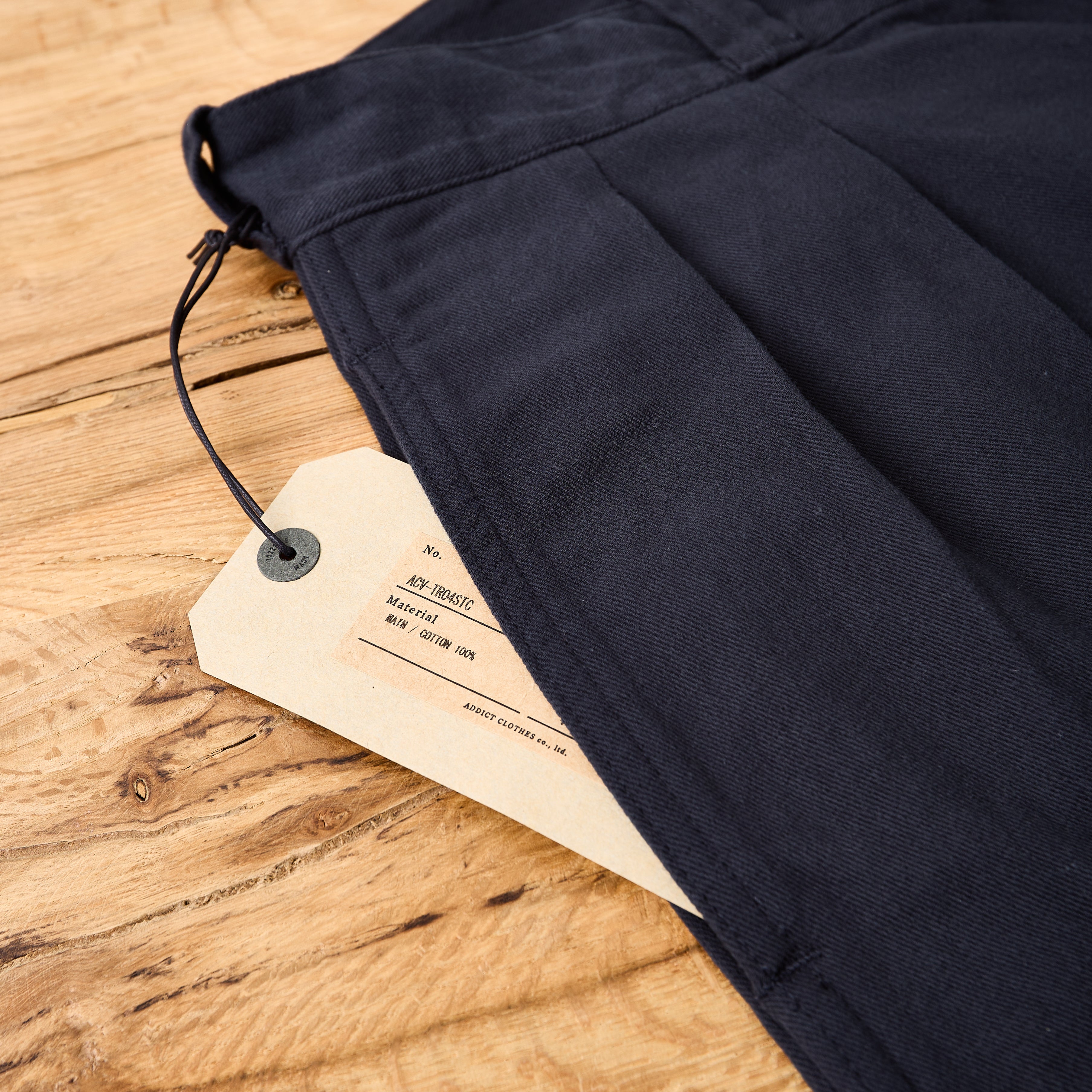addict clothes | acv-tr04stc double-pleated cotton army wide trousers - navy