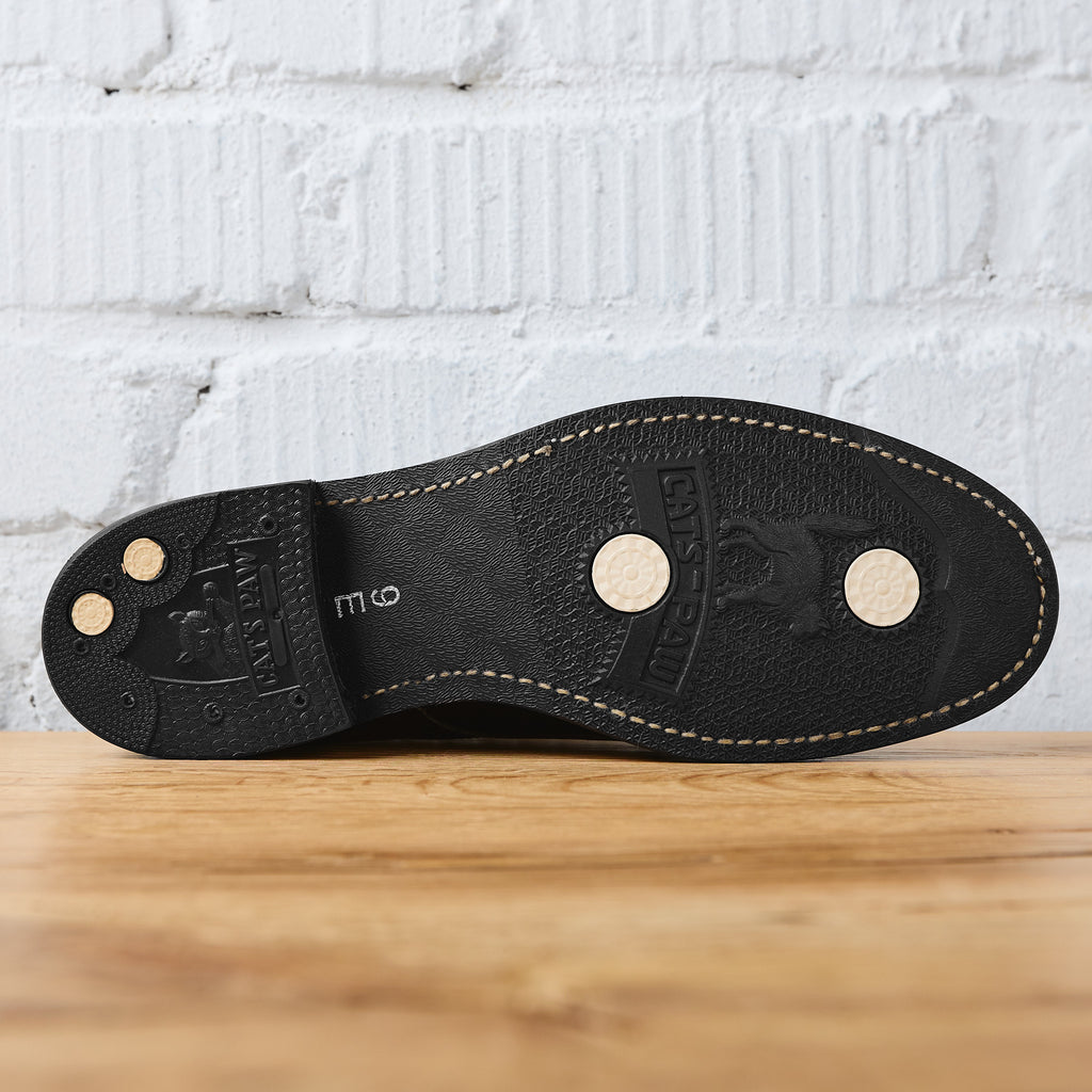 the br02857 from buzz rickson's is based on an army last as used in us army service shoes in the 1940s. made from fine calfskin with an even grain, the shoe impresses with its high-quality look and pleasantly supple feel. the reinforced heel cap in the typical “dog tail” design protects particularly stressed areas from cracking and ensures long-term stability.