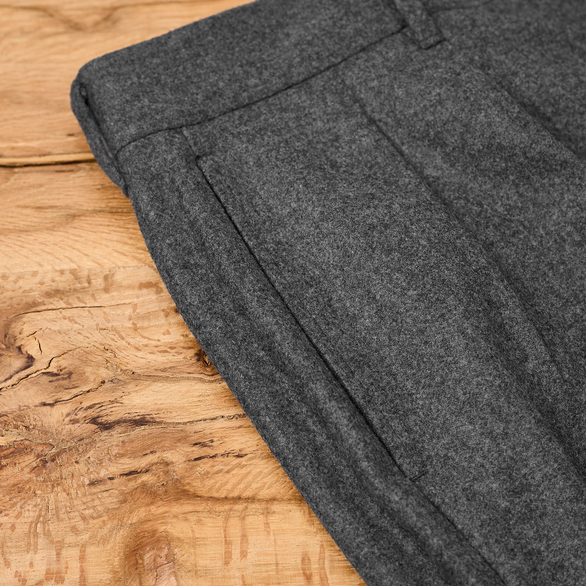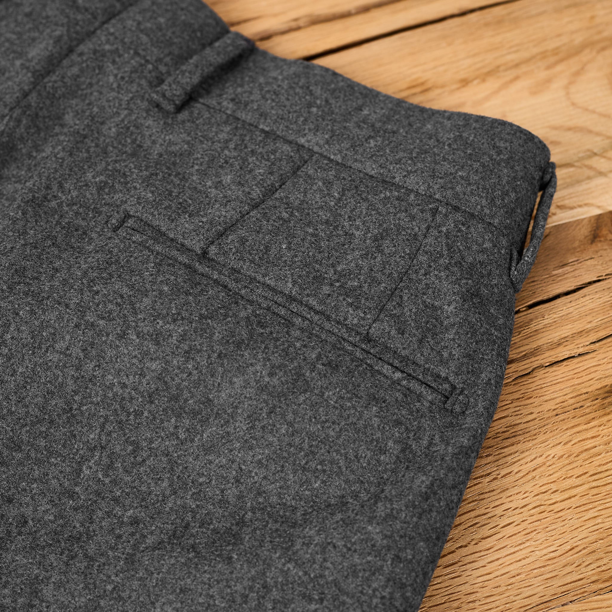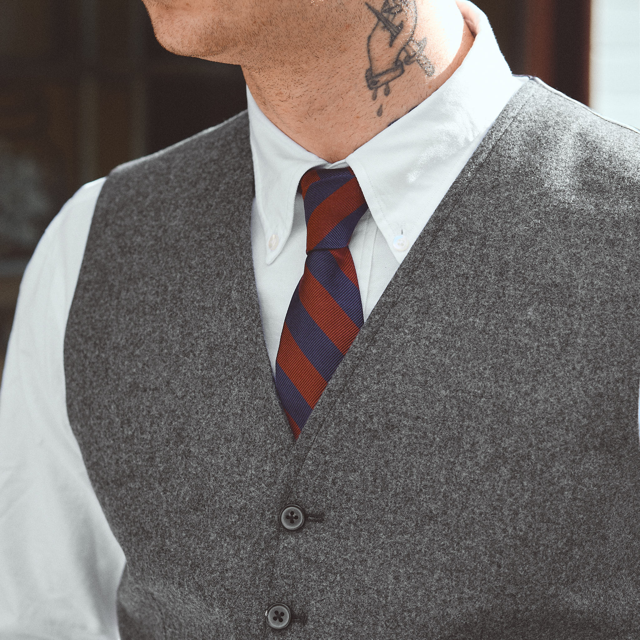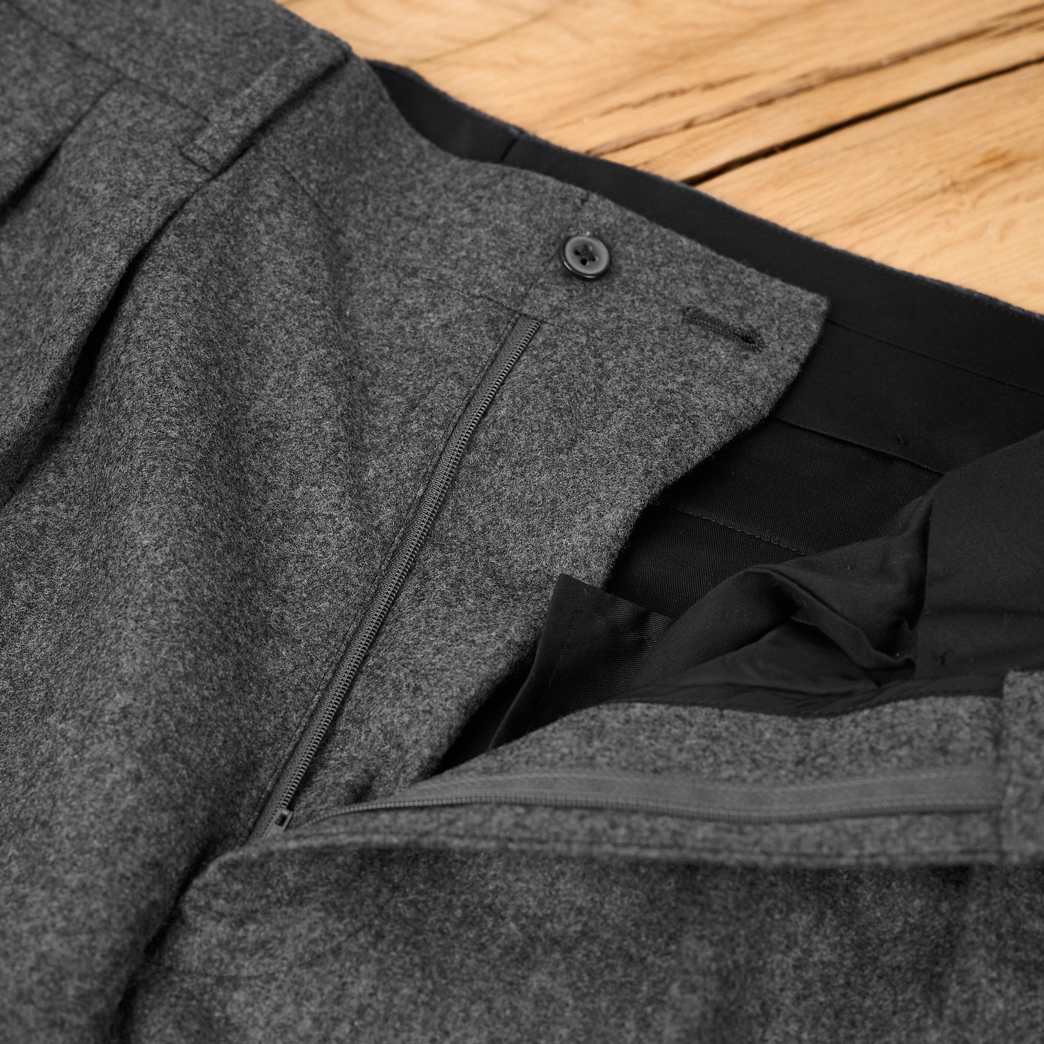great three-piece flannel suit in gray melange by d.c. white from japan. the ivy league-style suit is made in japan from a beautiful 100% wool fabric from the italian mill vitale barberis canonico and is the perfect choice for any occasion, from chic to casual. the jacket has an elegant silhouette with slightly wider lapels and offers enough space for the vest underneath. The classic trousers with two front pleats feature a slightly higher rise and a relaxed leg. a true tailoring masterpiece with a modern twist.