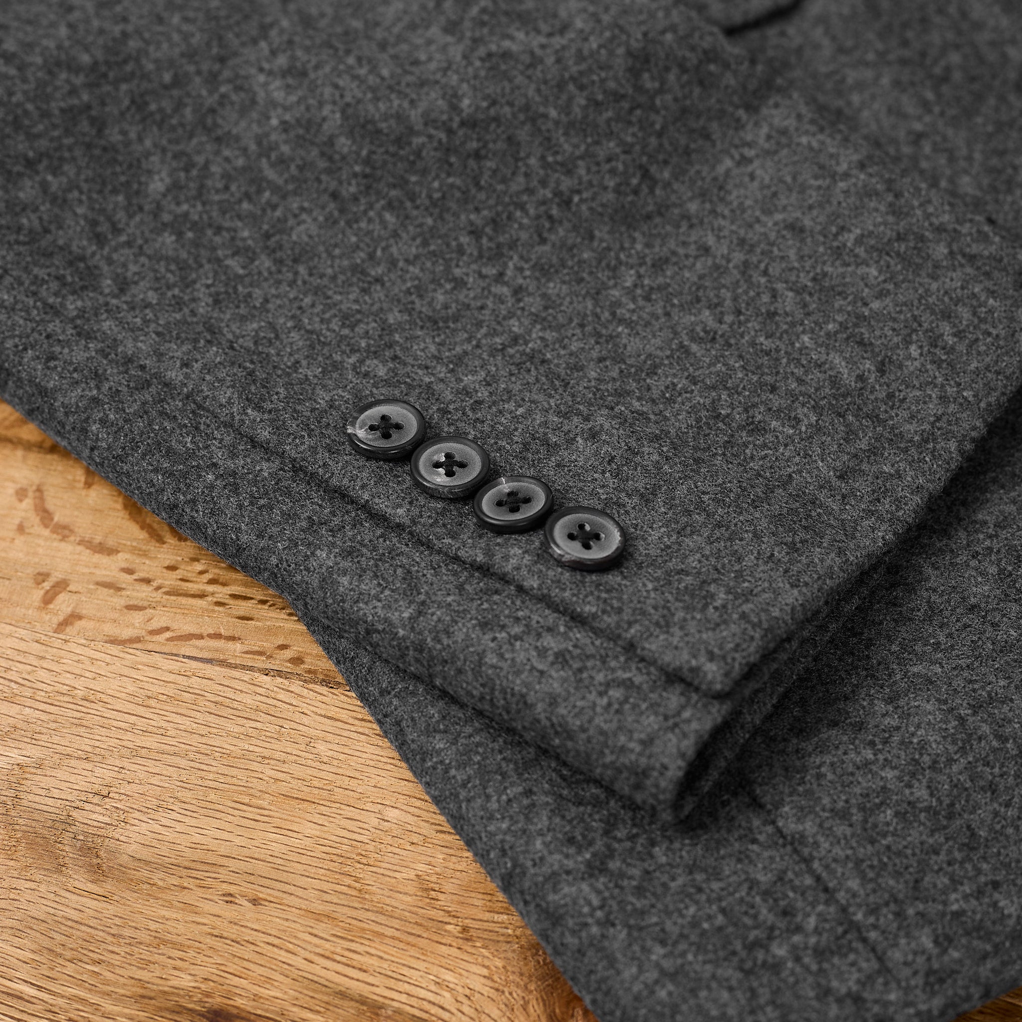 - jacket: slightly wider lapels, buttonhole on the left lapel, three-button silhouette, cuffs with four decorative buttons, welt pocket on the left chest, two flap pockets at the waist, two inside chest pockets, one slit, half-lined with stitched inserts, full lining