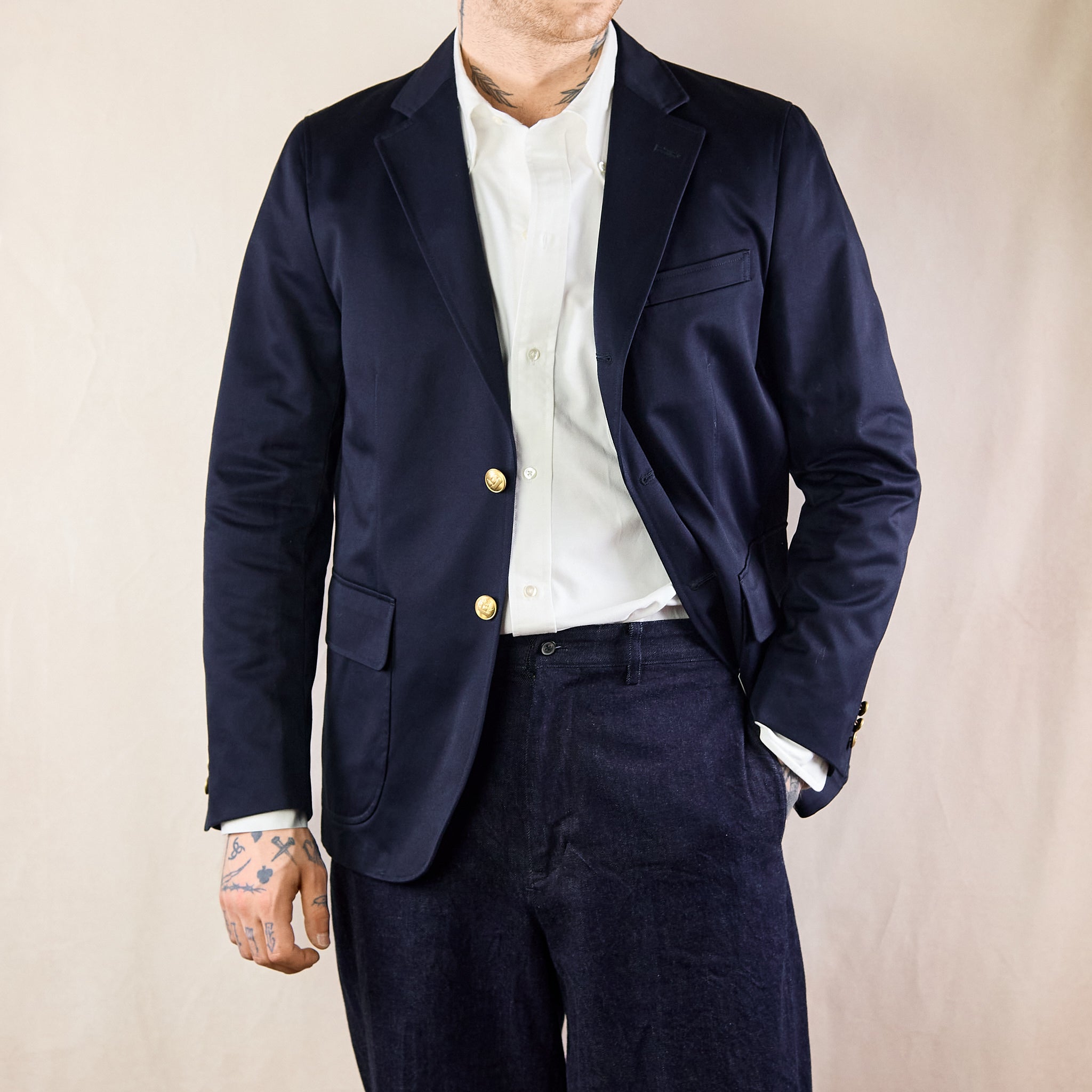 the west point blazer is d.c. white's take on the classic navy blazer and the brand's signature product. instead of wool, the jacket is made from durable west point twill that gets softer over time with wear and washing and that ages as beautifully and uniquely as a pair of jeans.