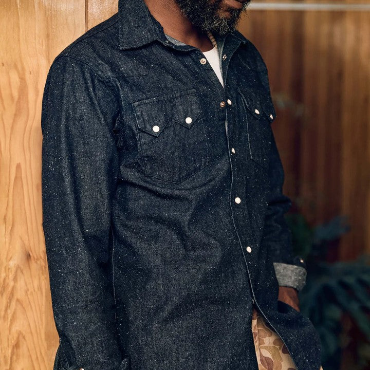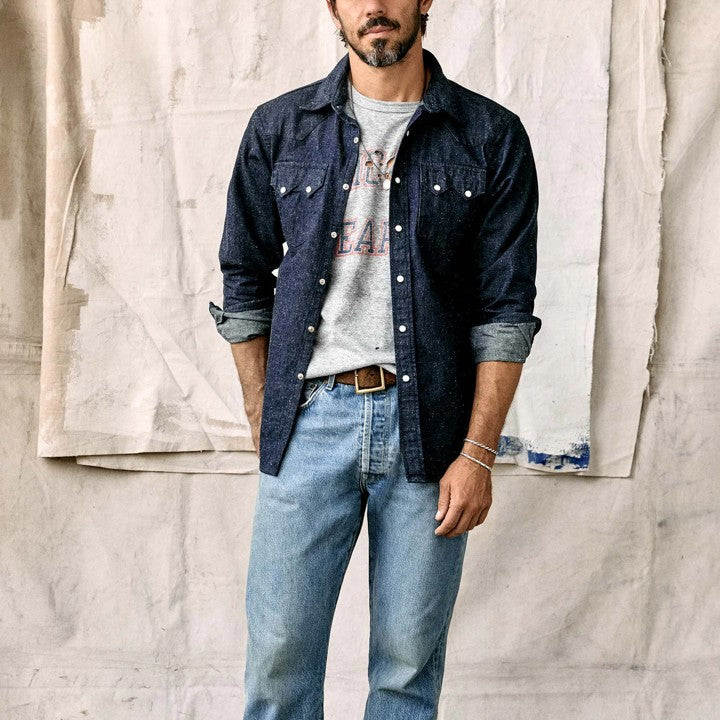 based on a vintage model from the imogene +willie archive, the sawtooth shirt reinterprets the classic pearl snap look in a contemporary way. authentic details are combined with a modern fit. the shirt is sewn in the usa from a 100% cotton japanese nep denim, we rinsed this shirt down to unlock the depth and character of the fabric, increasing wearability right from the get-go.