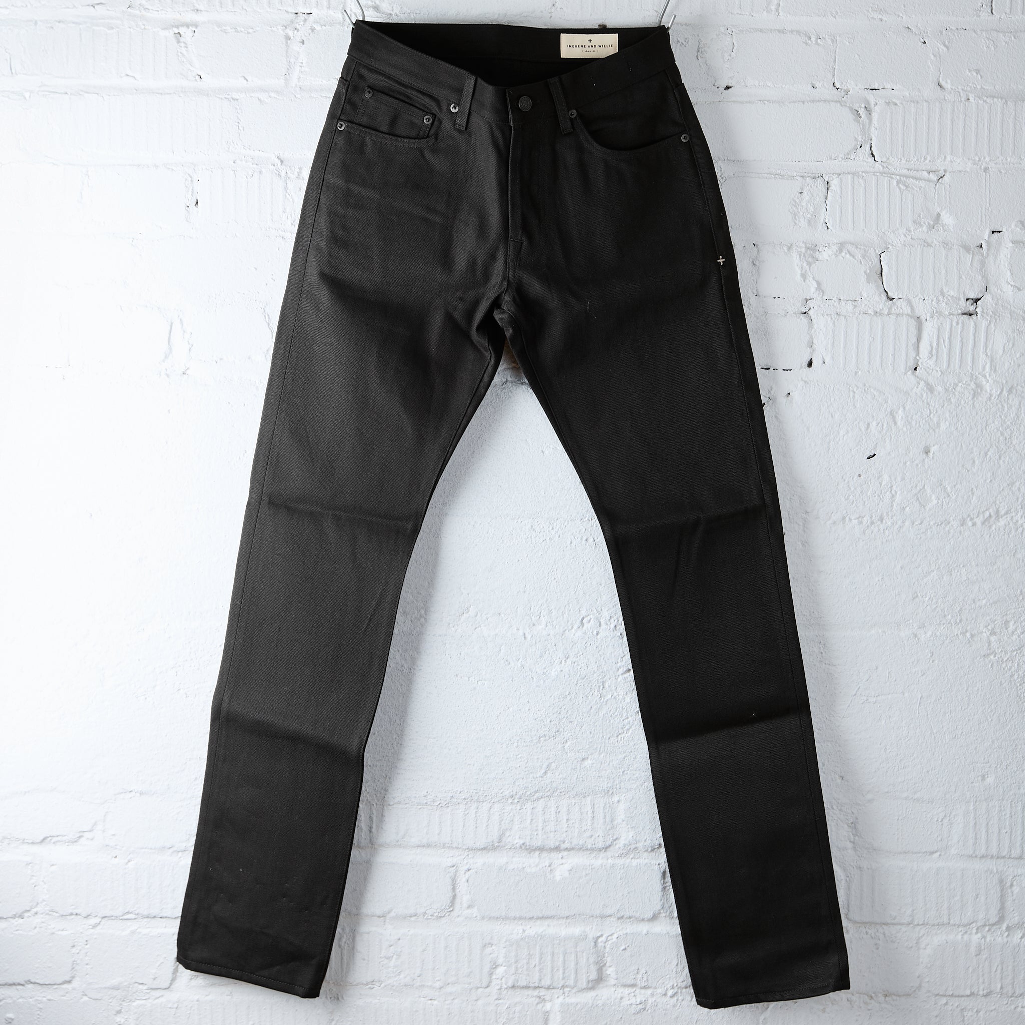 2010 the barton black was thomas' very first jean from imogene + willie. barton sits right on the hips and is slim through the thigh and knee. this black version is made in usa from a 13oz black selvedge denim sourced from the legendary kuroki mills in okayama, japan. this fabric is substantial enough to to take a beating, but light enough to be comfortable as you begin the journey with a new pair of rigid denim.
