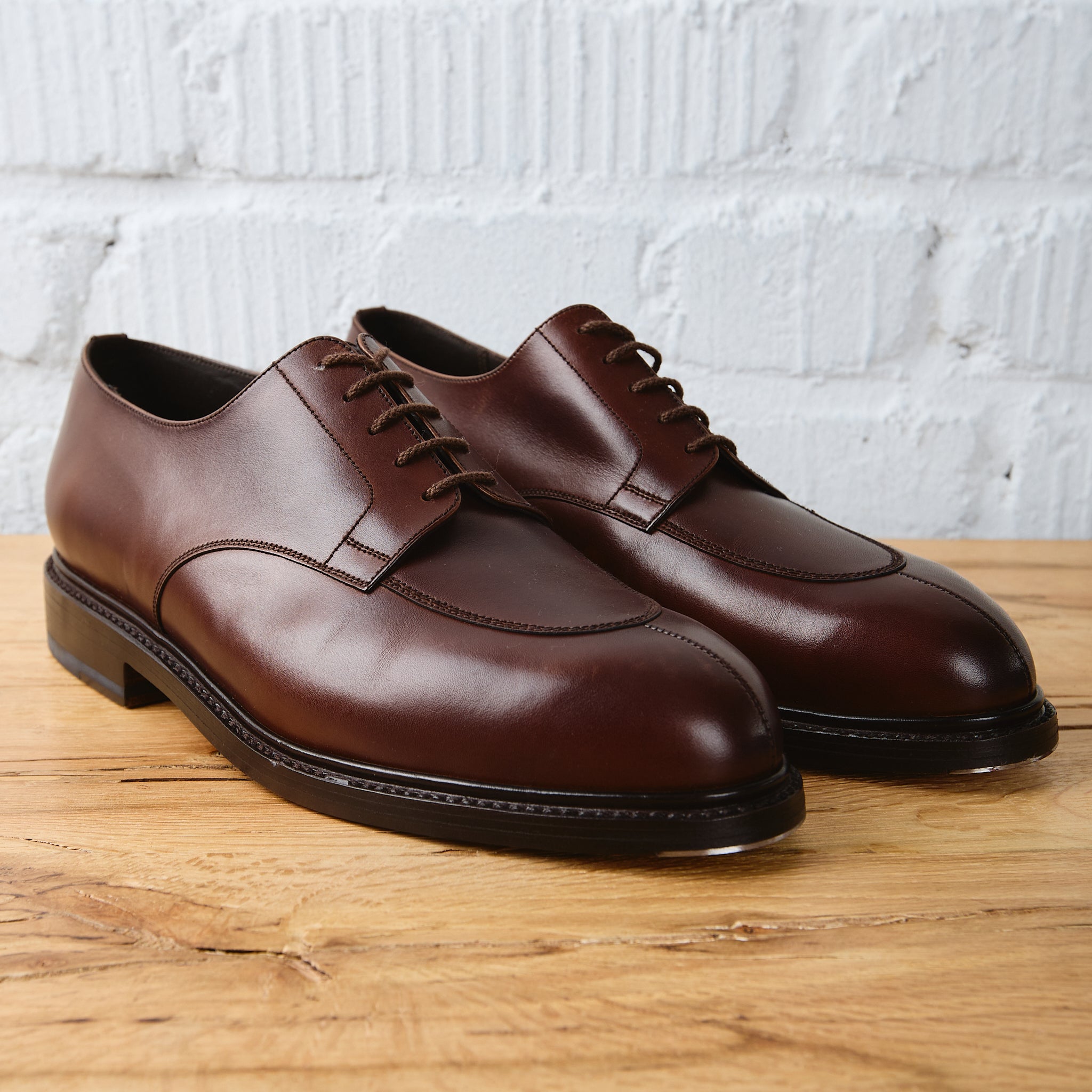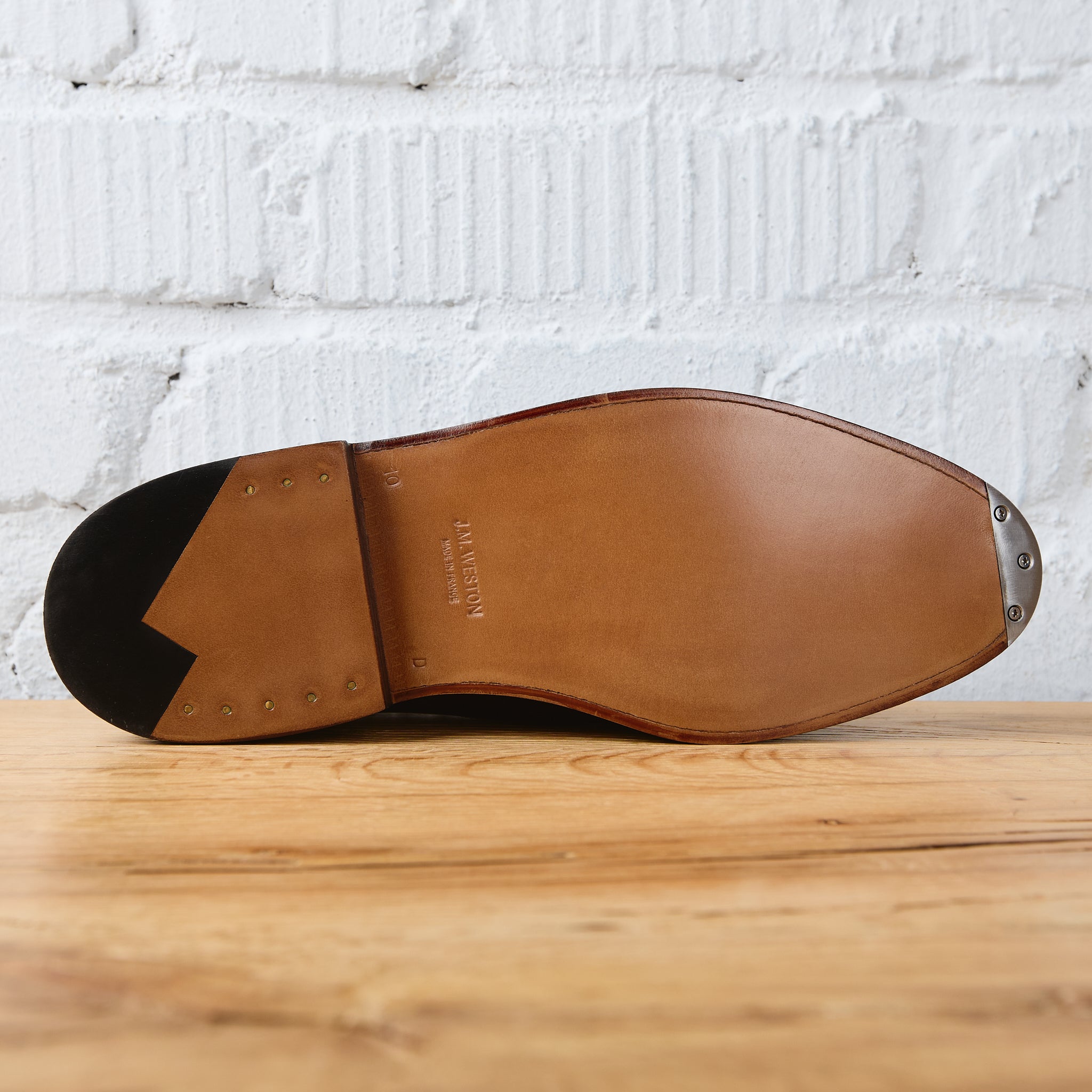 the half hunt derby is a true j.m. weston classic and is made from start to finish at the limoges factory using artisanal production methods. it stands out for its unique shape and apron seam, which give it a timeless style.