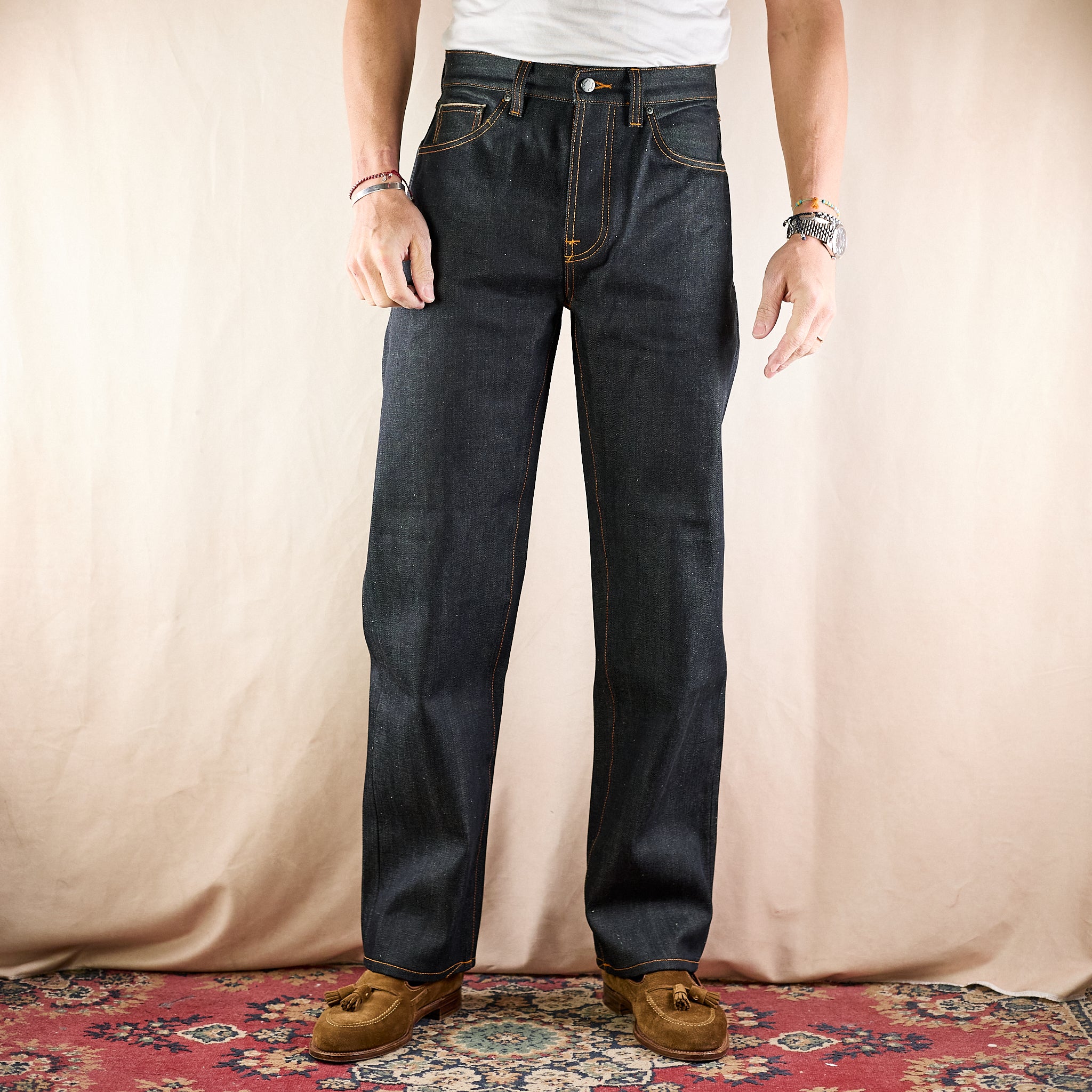 the tuff tony by nudie jeans is a perfected loose straight fit jean. with its high waist and loose straight leg, it is as modern as it is traditional, capturing the ideal balance of loose jeans ease and denim style. the jean is made in italy from nudie's famous 13.75oz kihara dry selvage. this tightly woven, crisp denim fabric with the characteristic orange selvedge id has been part of the nudie range since 2001 and has incredible fading potential. nudie recommends 6 months of hard, every day, wear before the first wash, if not longer. the result will be worth it. but of course, this is only a recommendation, and ultimately, you alone decide how the story of your jeans should unfold.