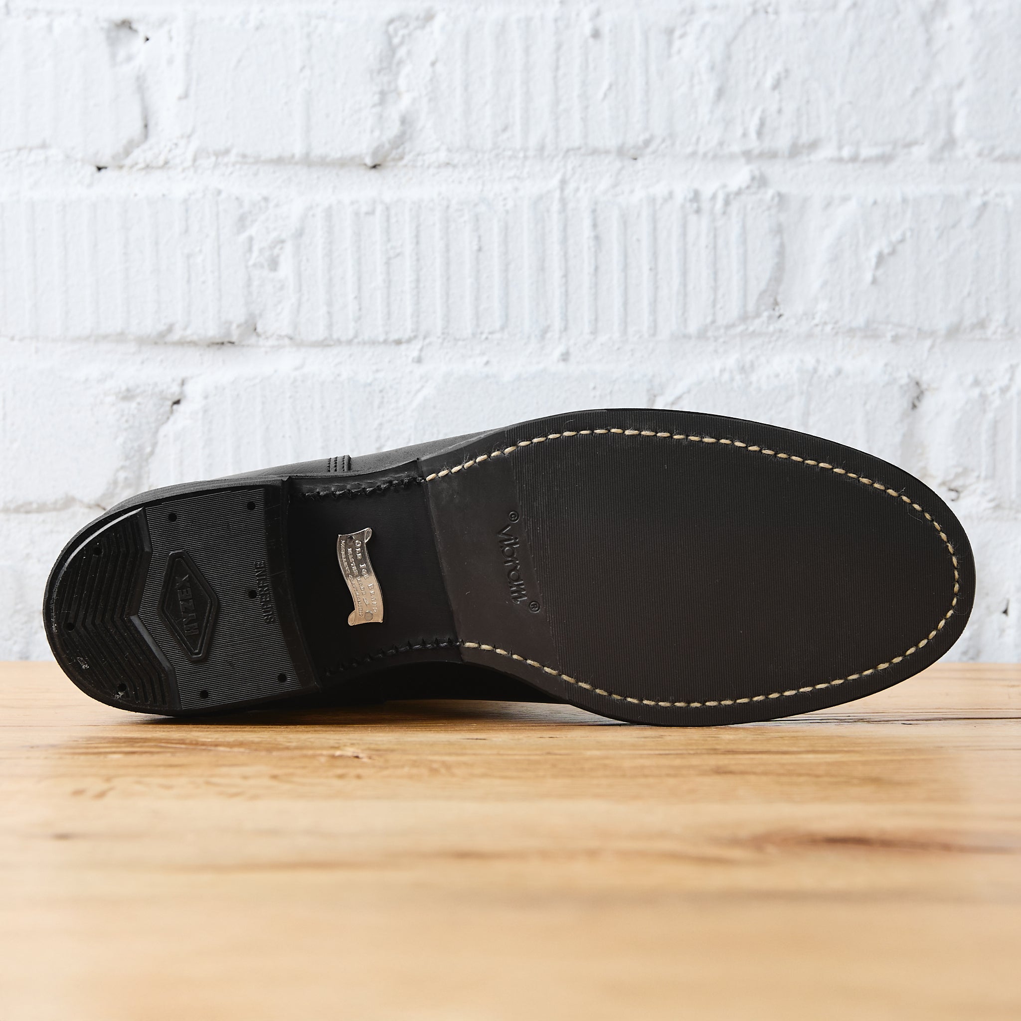 - leather sole with vibram rubber half sole