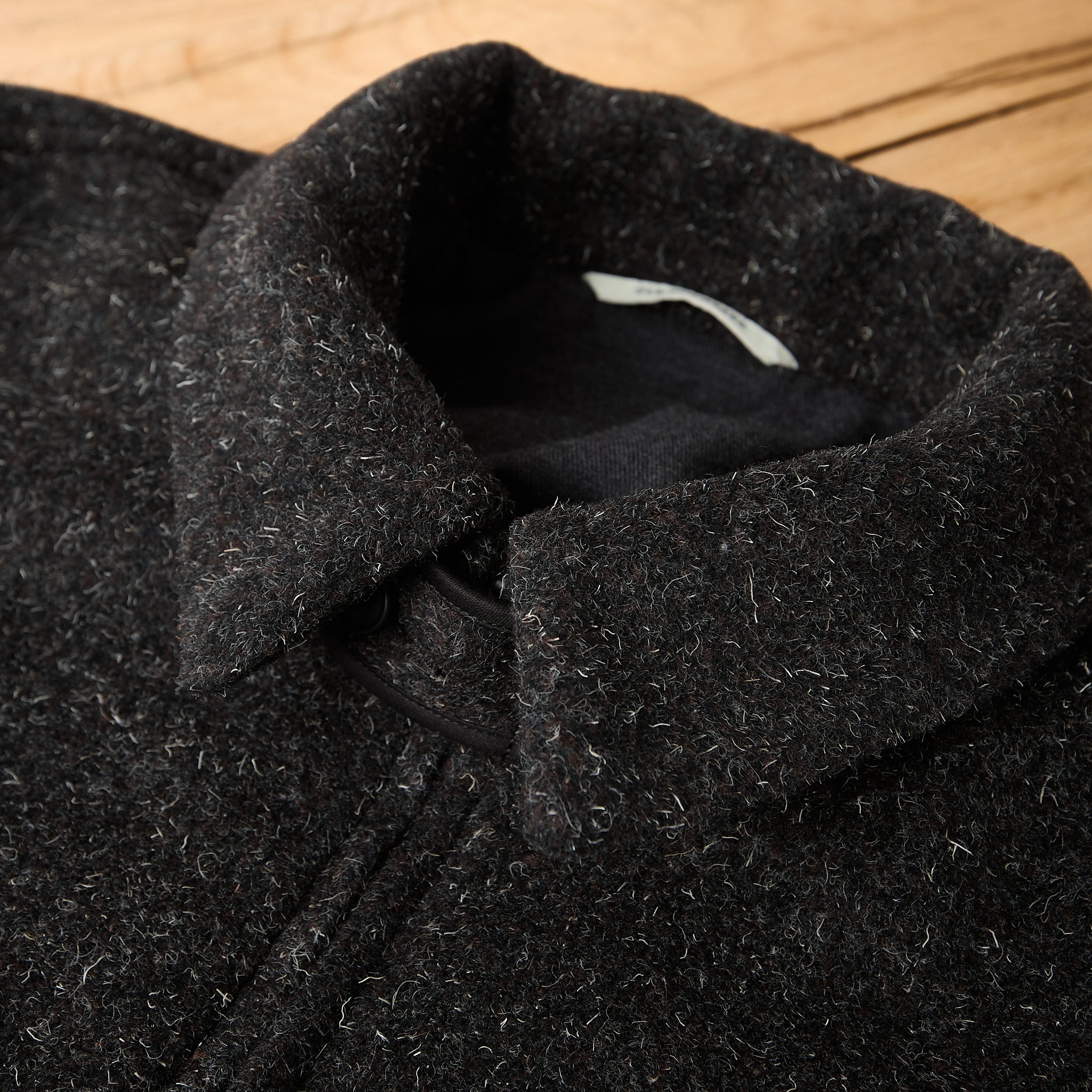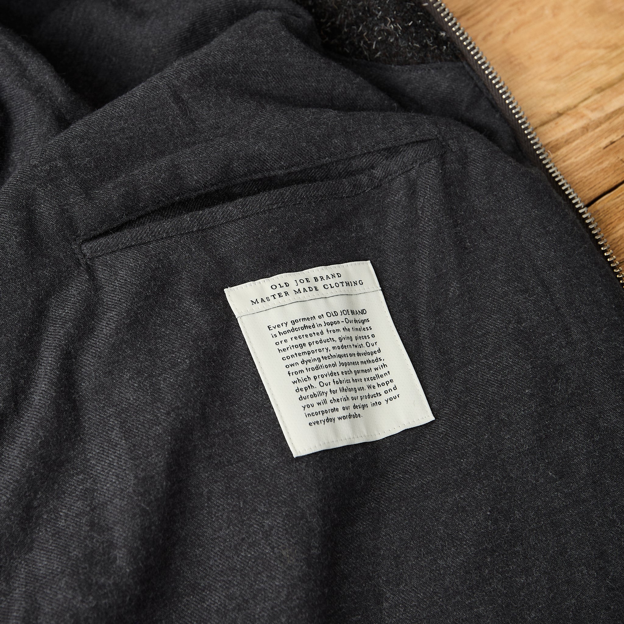 the puristic, short jacket by old joe is based on a vintage work jacket from the 1930s and has many great, authentic but subtle details. it is made in japan from beautifully hairy wool fabric, lined with wonderfully soft cotton flannel (body) and a pleasantly light cupra rayon blend (sleeves).