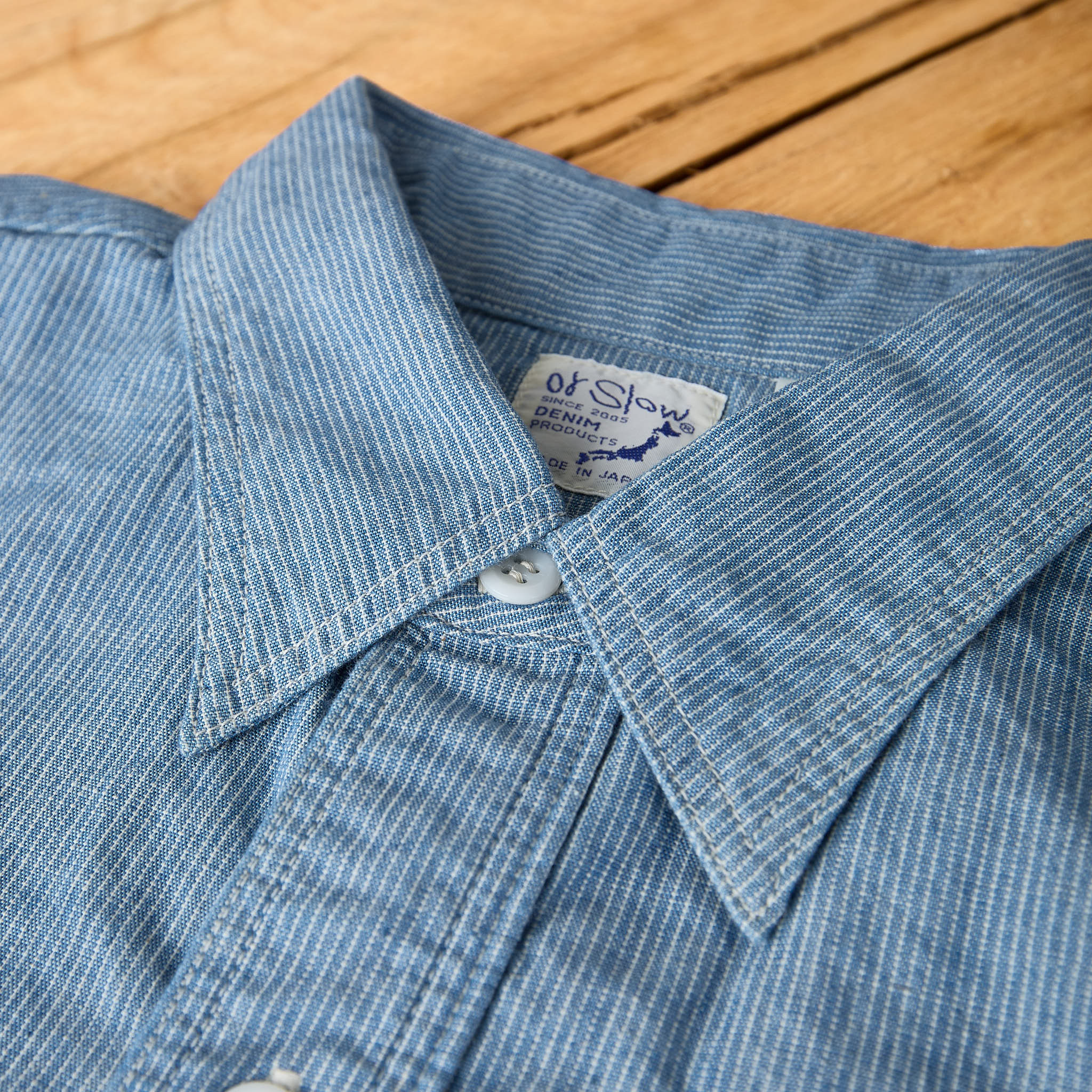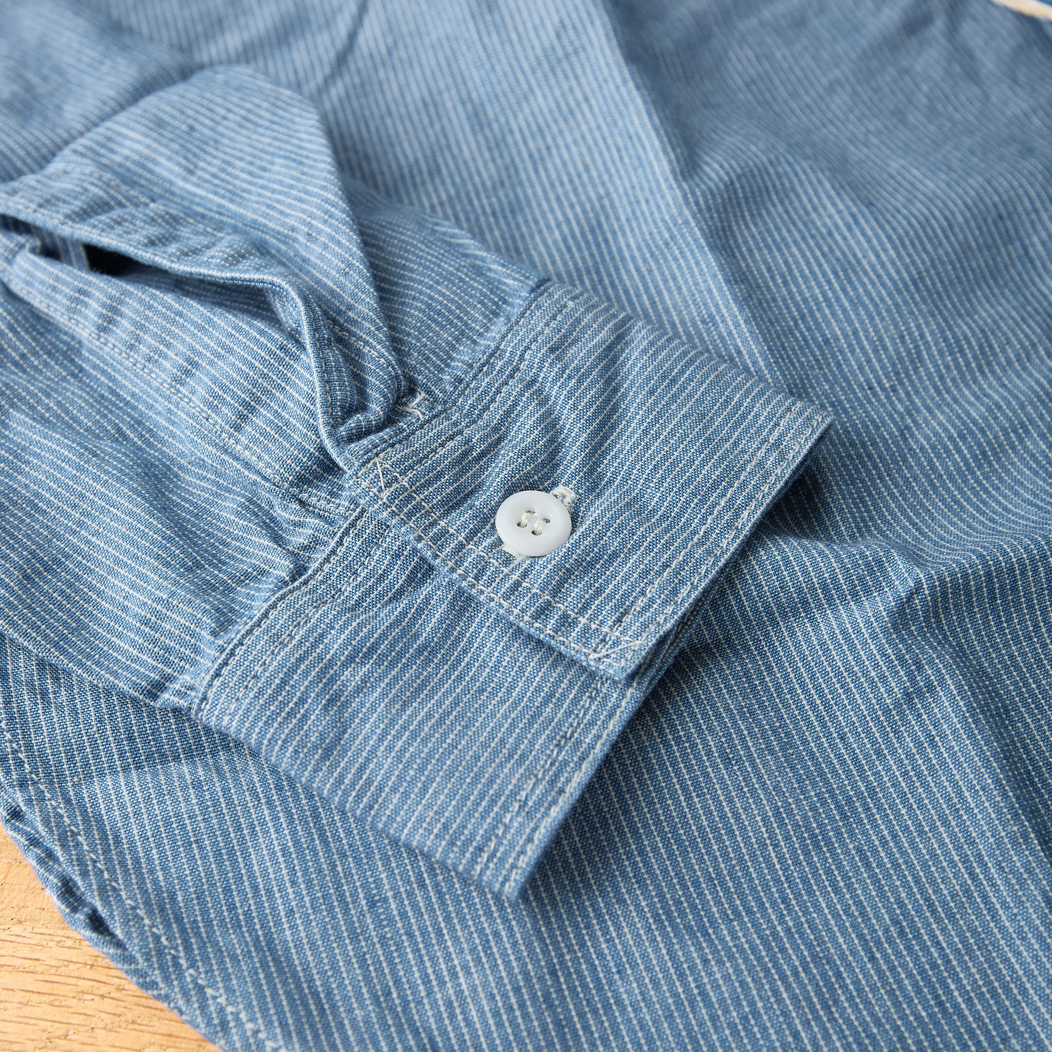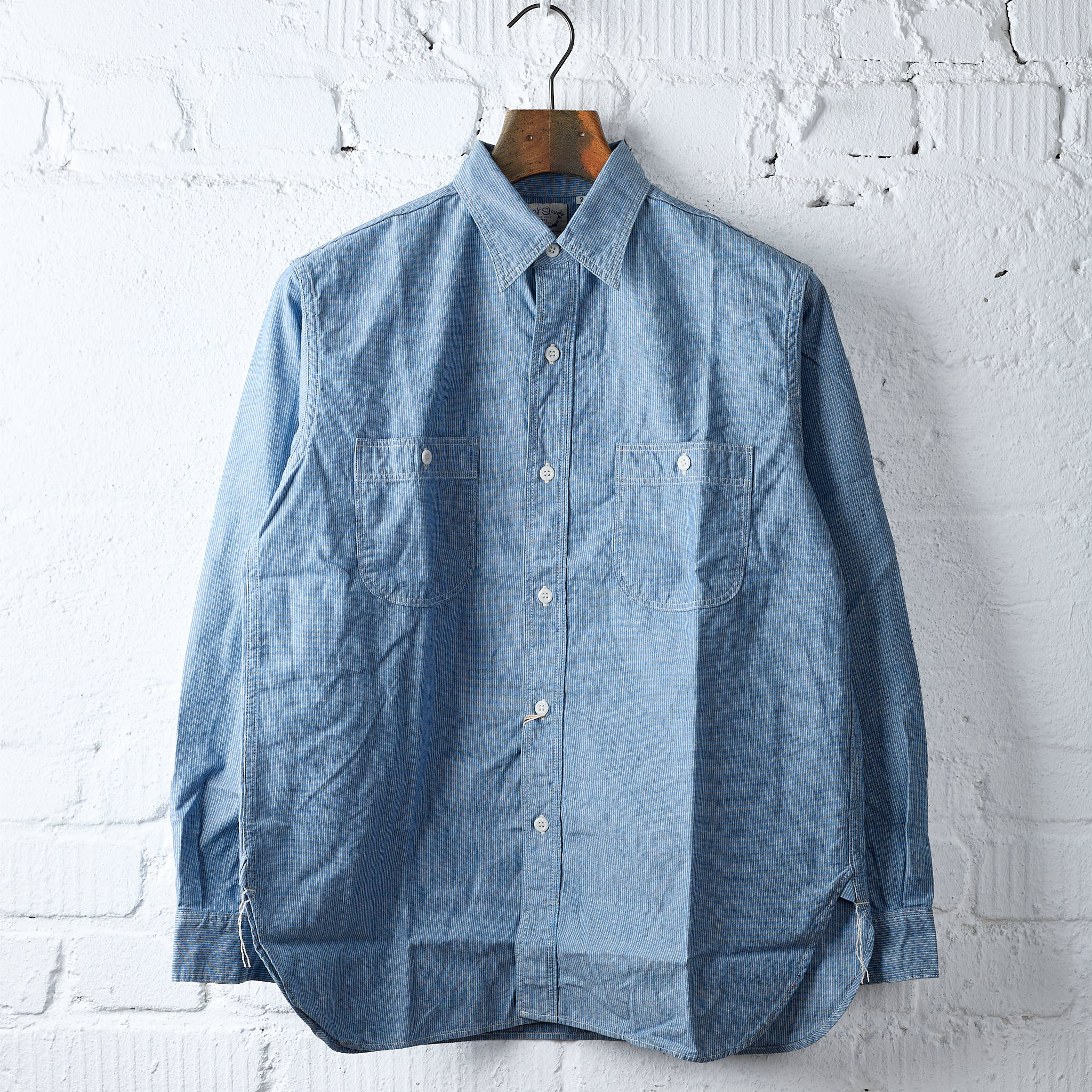 orslow has slightly reworked the silhouette of its classic chambray work shirt. the shirt features now a more relaxed fit and is made in japan using the best japanese 4.5oz chambray fabric. this must have in every man’s wardrobe can be worn almost all year round, buttoned up on chinos or jeans or open like a jacket on a white tee.