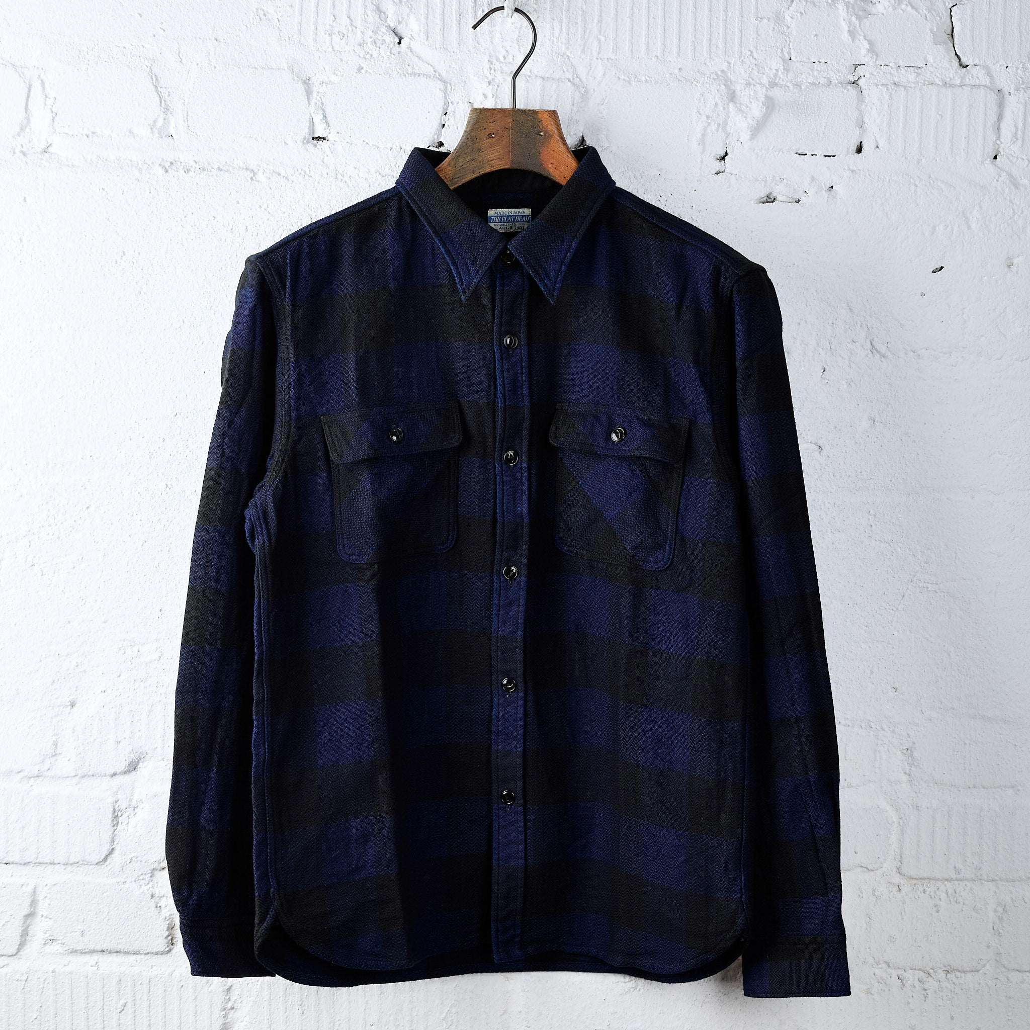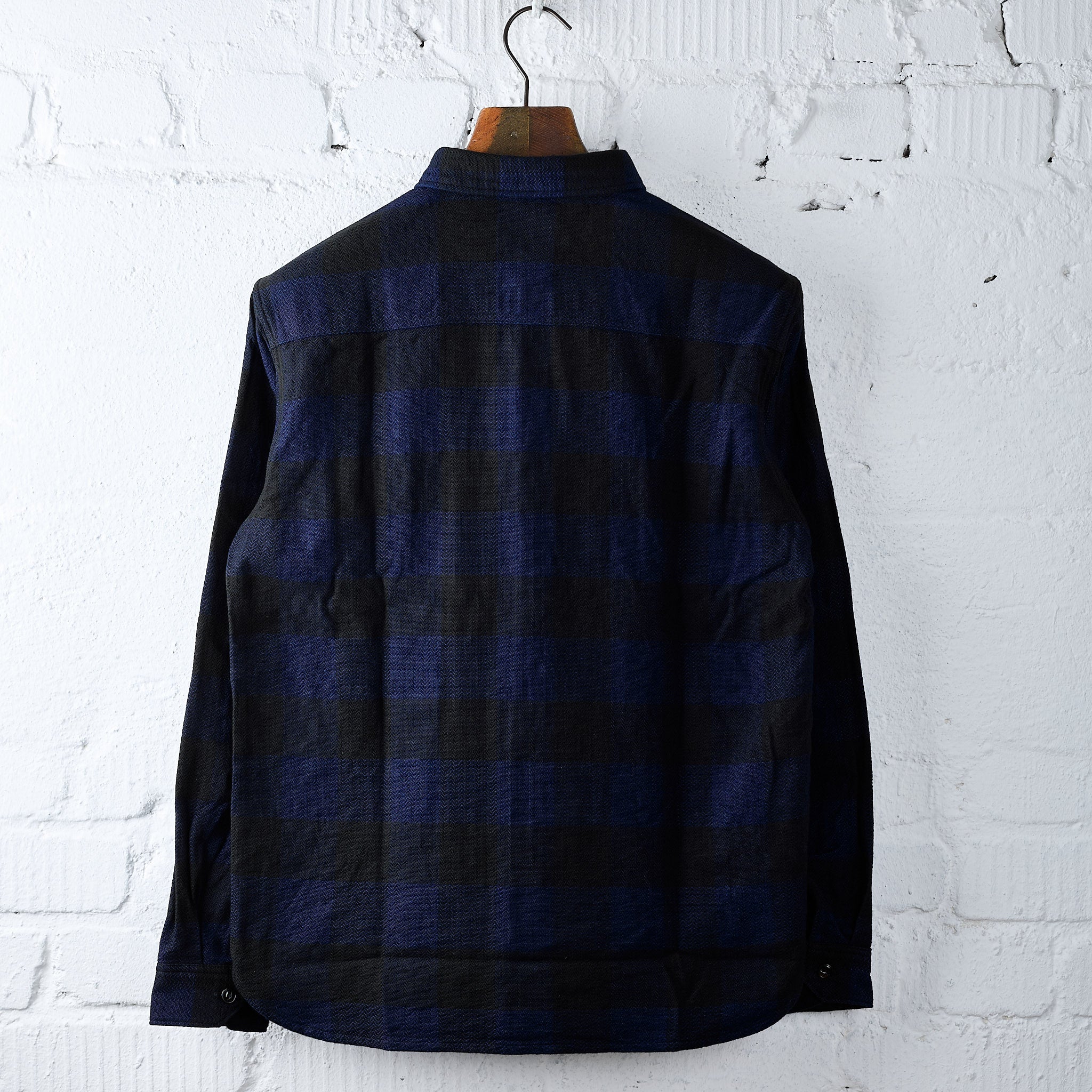 the flat head | fn-snr-101lsp indigo block check flannel work shirt